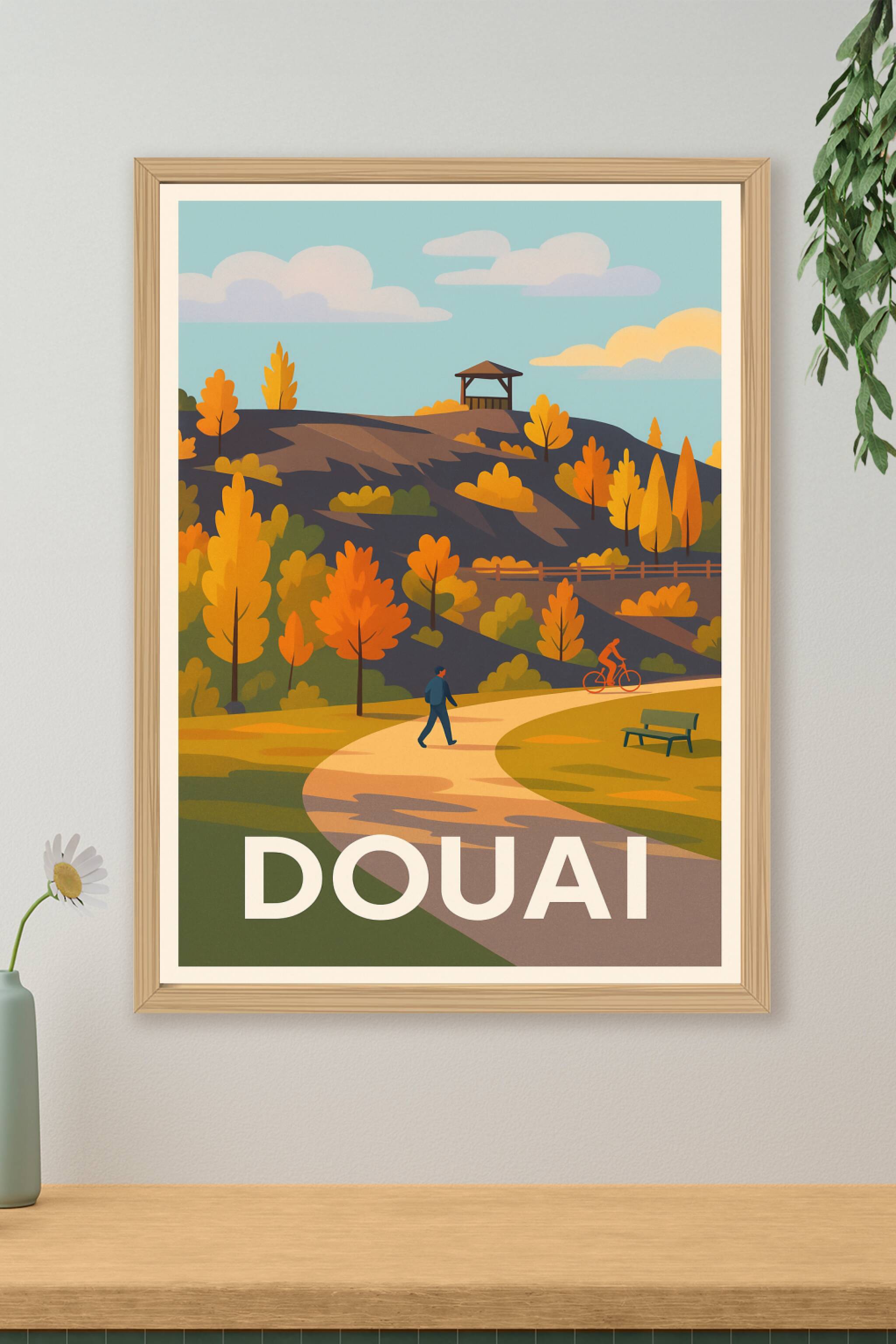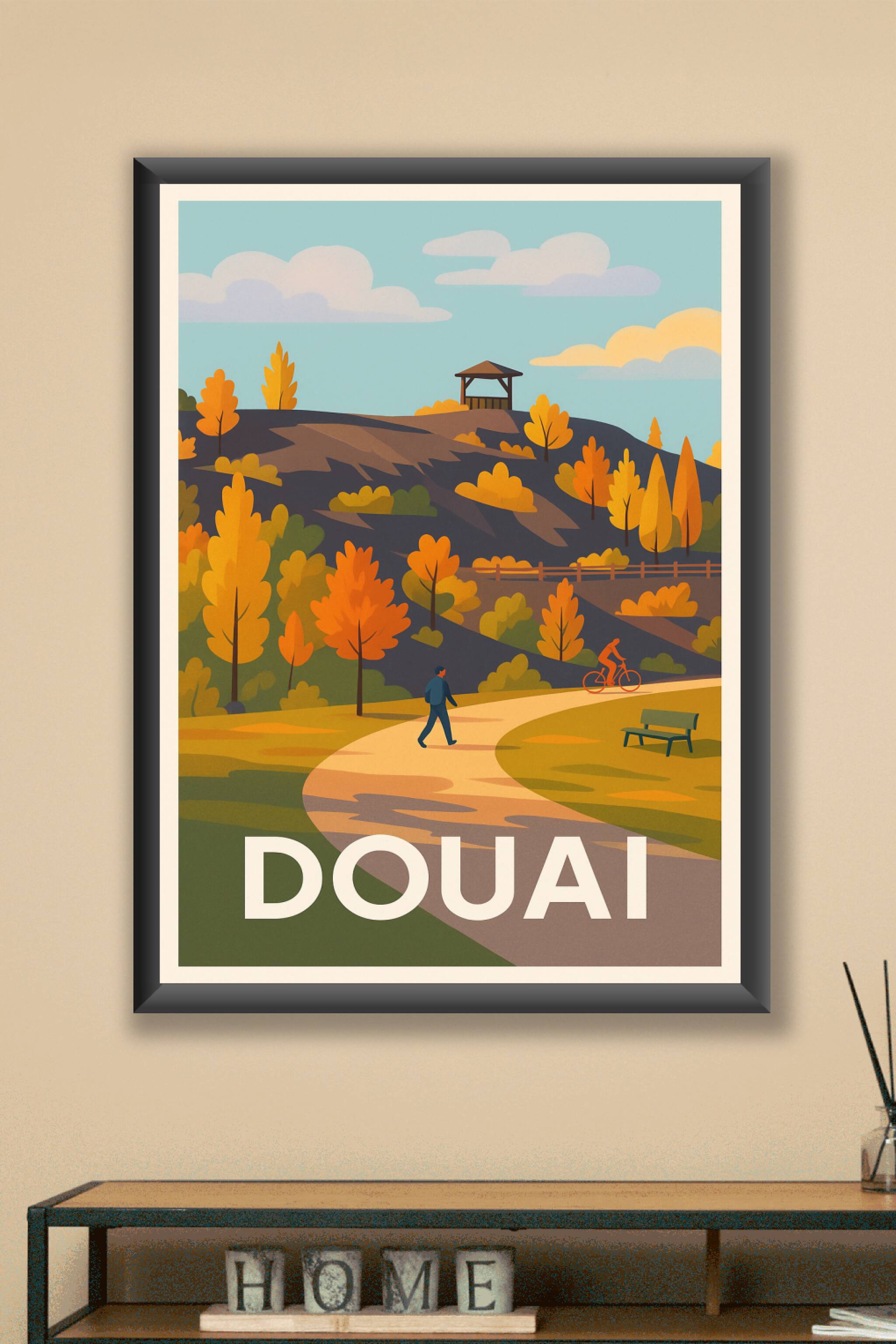 Découvrez la douceur des paysages automnaux de Douai à travers cette affiche au style graphique et chaleureux. Les couleurs chatoyantes des arbres ...