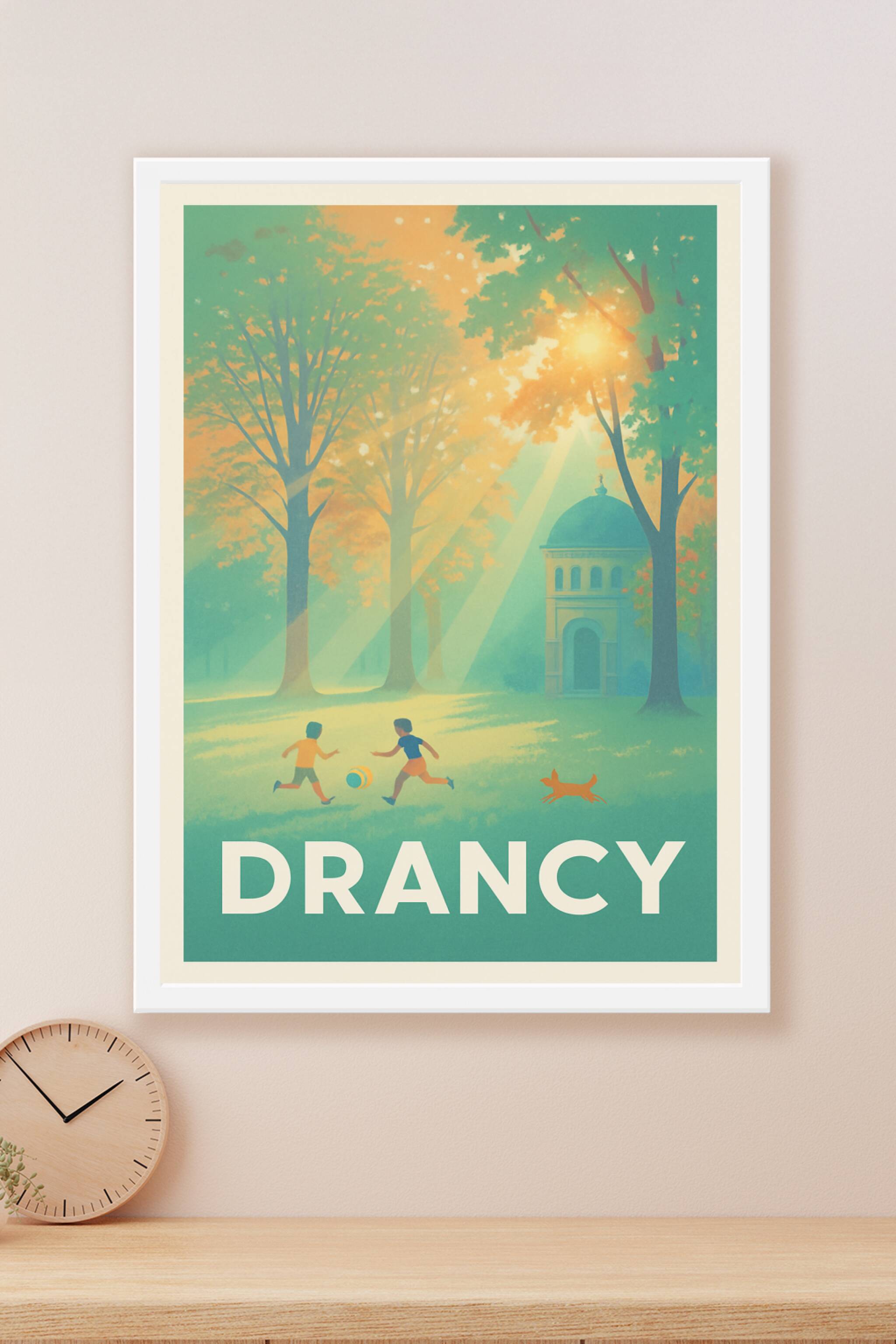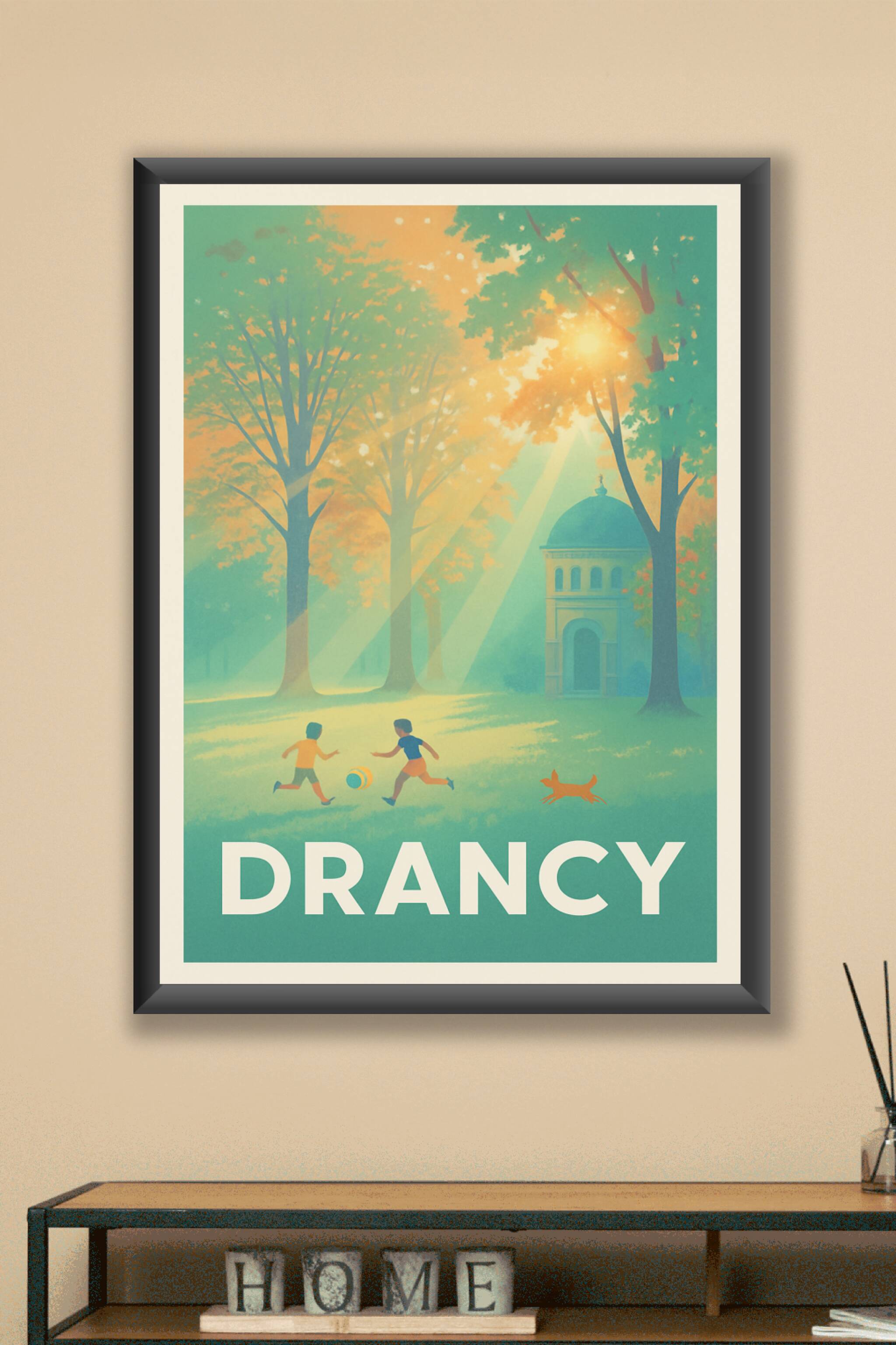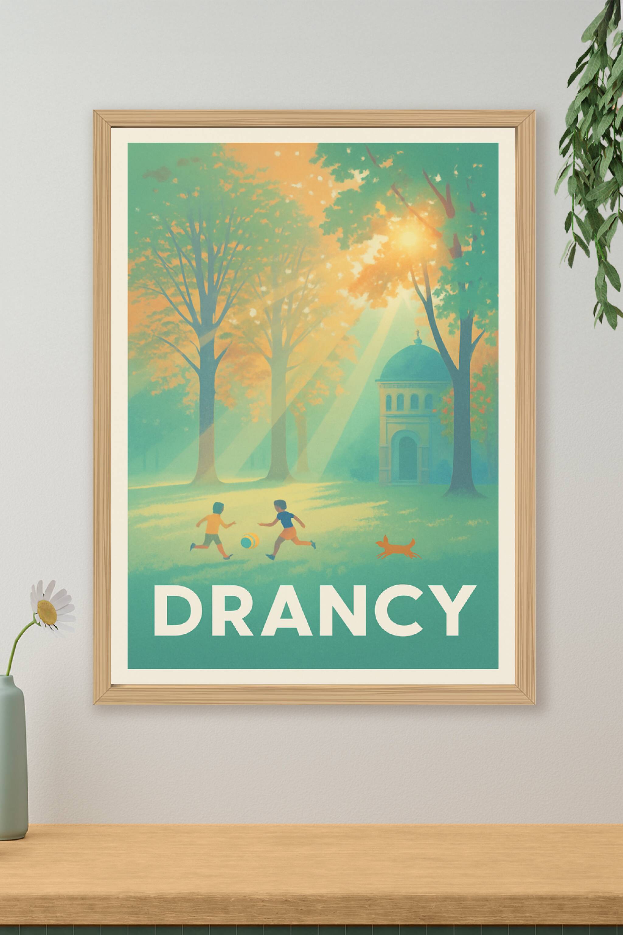 Découvrez cette affiche poétique capturant la douceur d'un après-midi d'automne à Drancy, où deux enfants s'amusent dans un parc baigné de lumière dorée. Le charme intemporel de la ville se dévoile à travers ce poster illustré, mettant en scène un magnifique jeu de lumière filtrant entre les arbres et un petit bâtiment historique en arrière-plan. Disponible en tirages "Fine Art" sur papier 305g coton, garantissant une qualité d'impression exceptionnelle et des couleurs intenses. Choisissez votre affiche en formats A1 à A4, avec ou sans cadre, pour sublimer votre intérieur ou offrir un souvenir unique de Drancy, alliant élégance et authenticité.