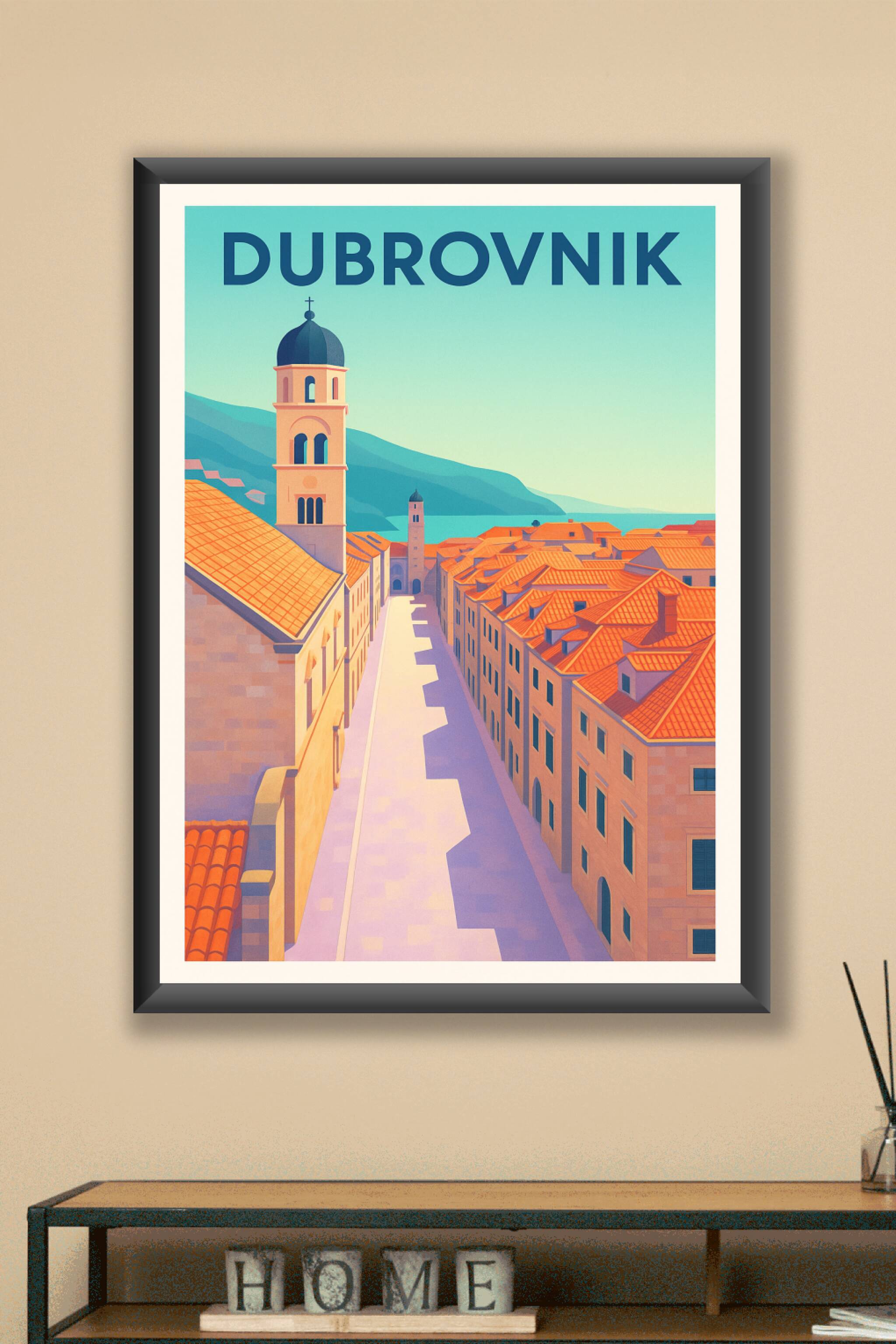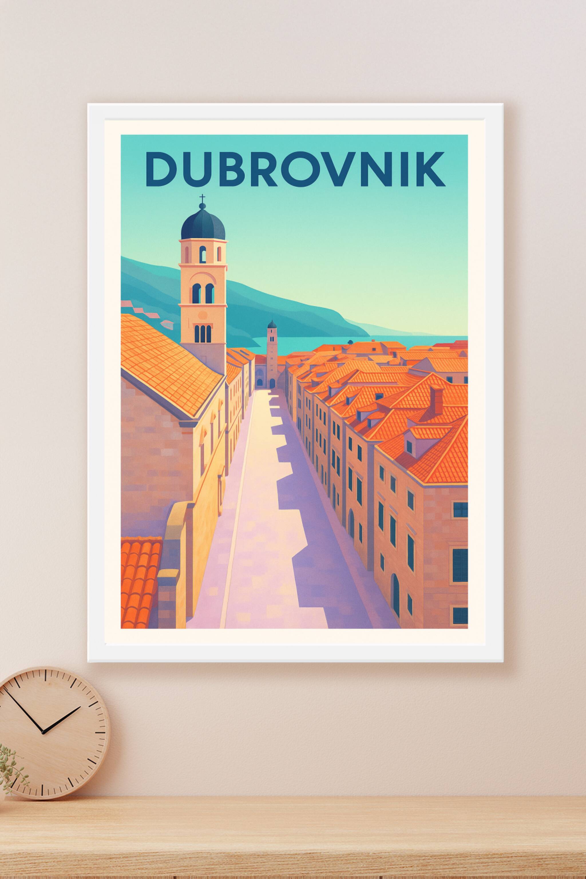 Découvrez l'élégance méditerranéenne de Dubrovnik avec cette affiche artistique qui met en lumière ses célèbres toits rouges et ses ruelles baignée...