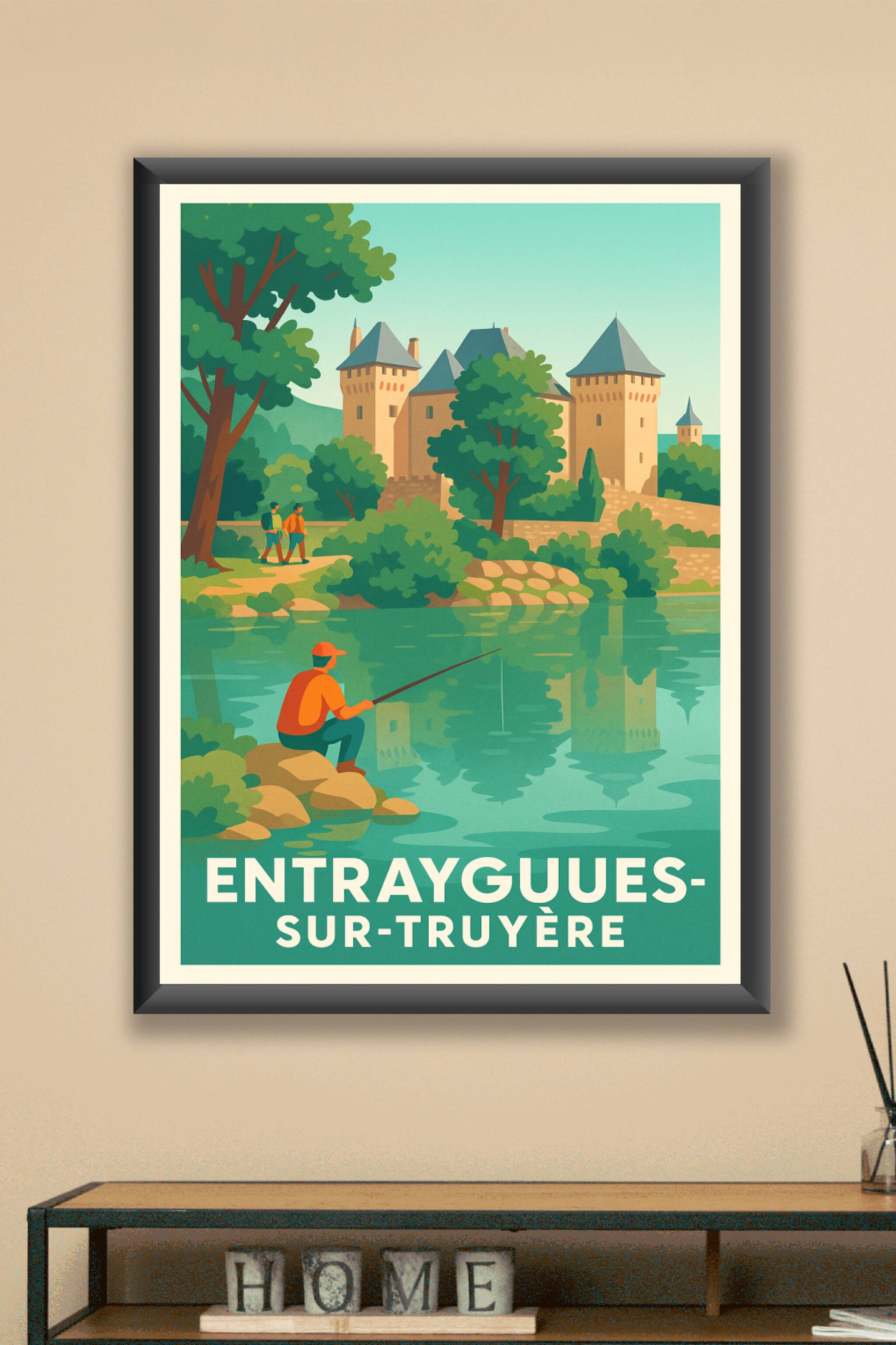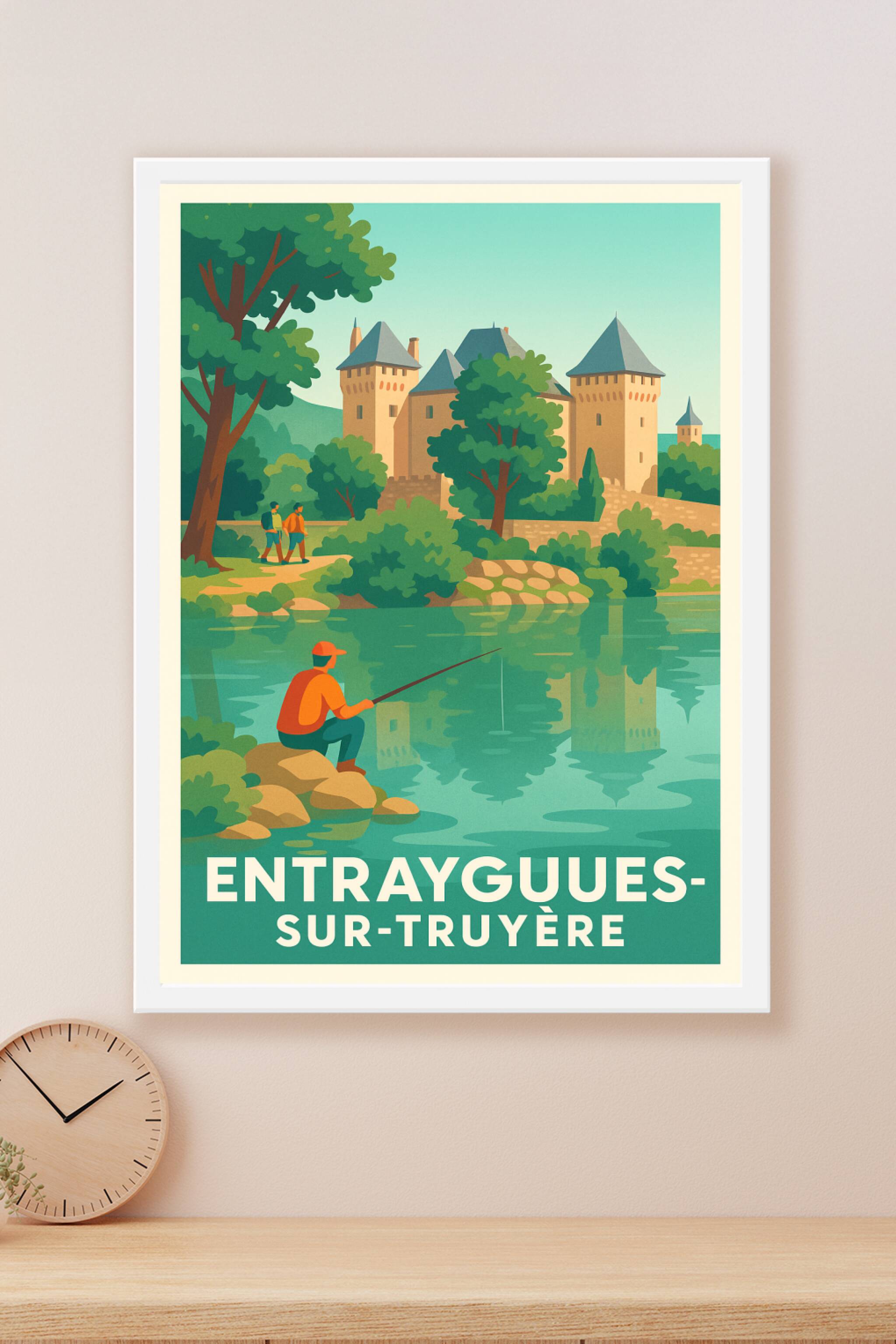 Découvrez la sérénité et le charme du village d'Entraygues-sur-Truyère avec cette affiche illustrée aux couleurs douces et apaisantes. Ce poster év...