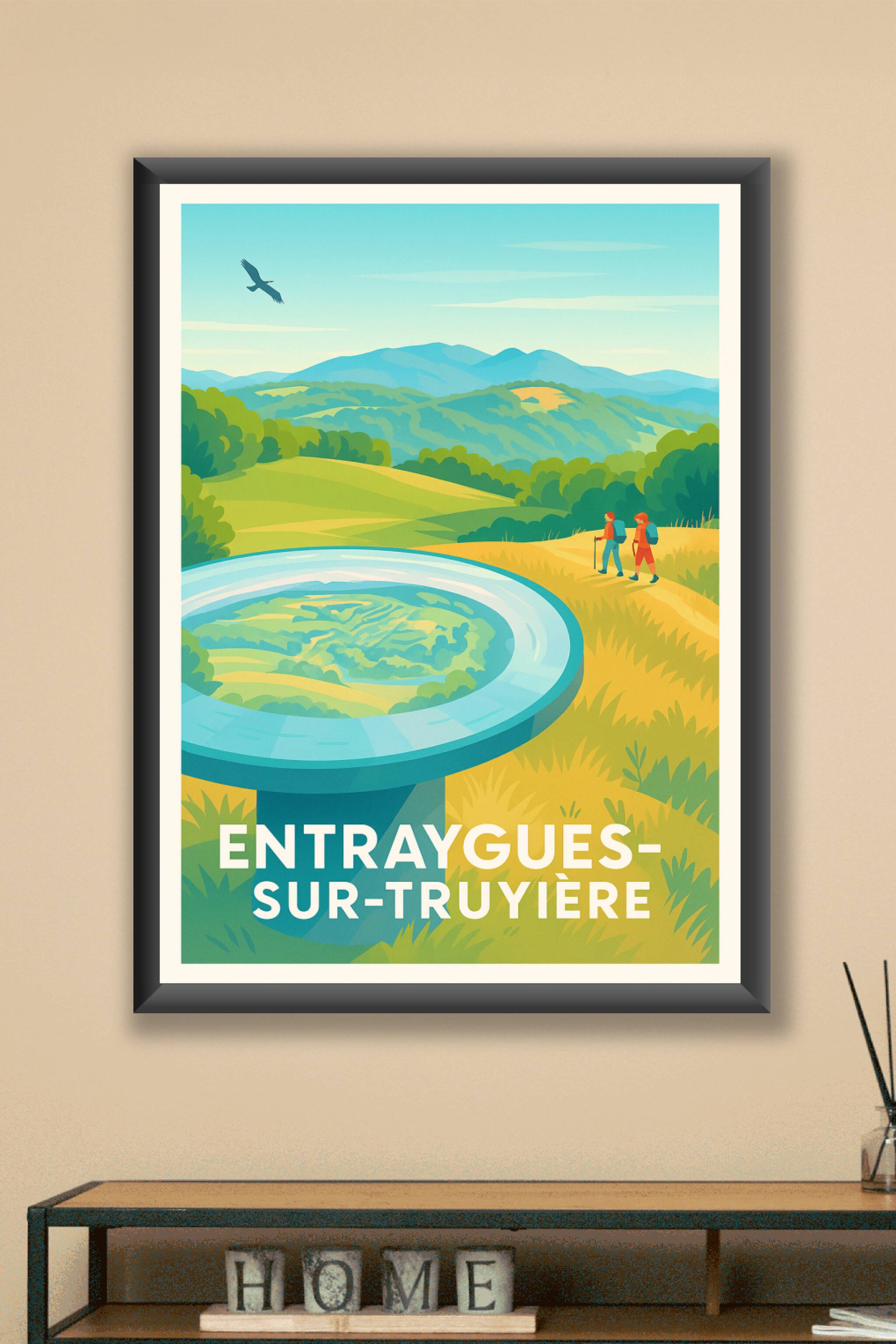 Découvrez l'ambiance paisible et verdoyante d'Entraygues-sur-Truyère à travers cette affiche au style rétro moderne. La vue panoramique sur les collines et montagnes, ainsi que les randonneurs en pleine escapade, capturent l'essence d'une nature préservée et authentique.Ce poster est imprimé en tirage "Fine Art" sur papier 305g coton, garantissant une qualité d'impression exceptionnelle et des couleurs éclatantes. Disponible en plusieurs dimensions, du format A4 au A1, avec ou sans cadre, cette affiche sublime votre intérieur en apportant une touche d'évasion et de sérénité.Offrez-vous ou offrez à un proche ce souvenir unique et premium, 100% fabriqué en France, pour embellir vos murs avec élégance et poésie.
