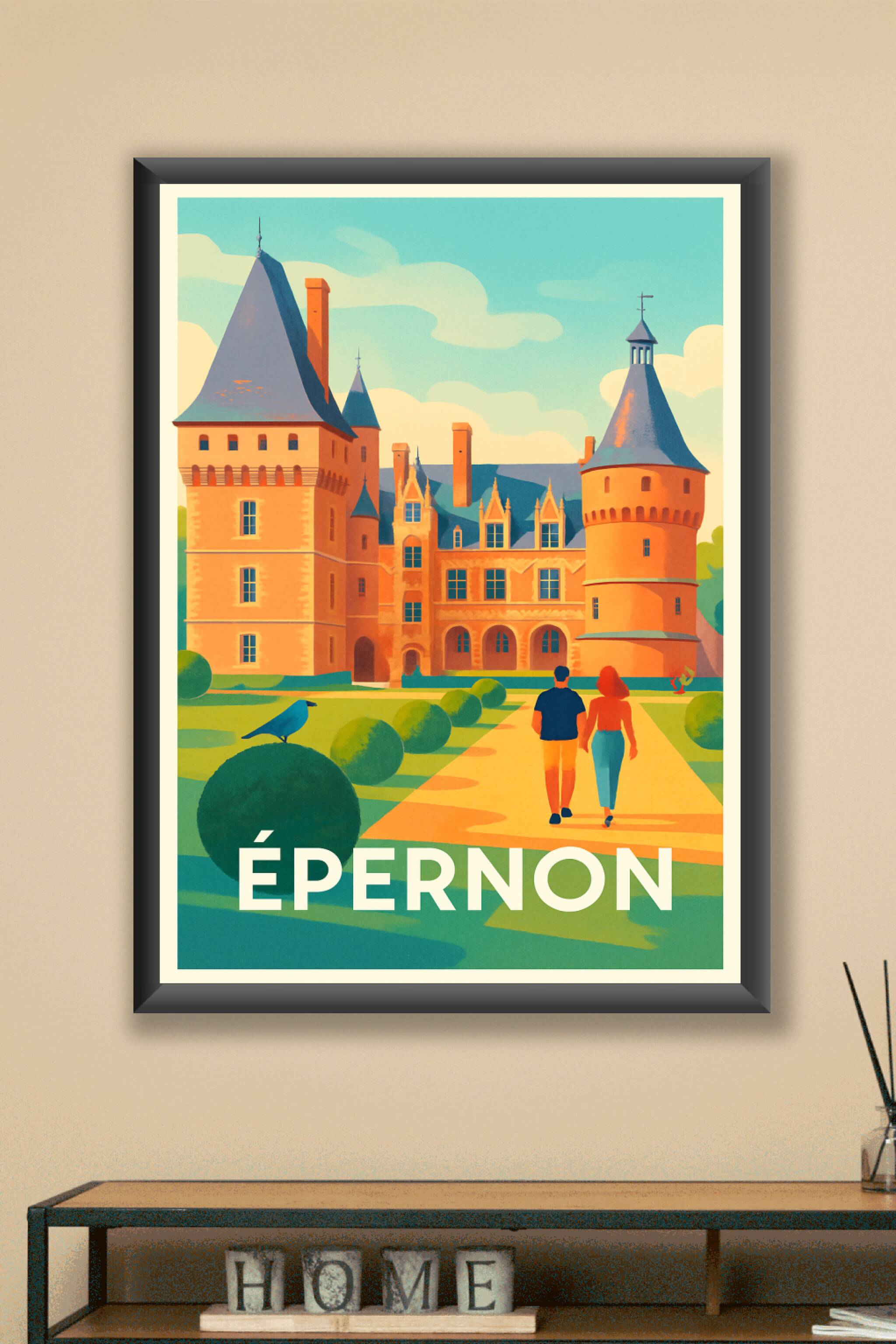 Découvrez le charme intemporel d'Épernon avec cette affiche illustrée mettant en scène le magnifique château de la ville dans une ambiance lumineuse et accueillante. Ce poster au style rétro et coloré capture l'élégance architecturale et invite à la promenade au cœur de ce lieu historique.Sublimée par un tirage "Fine Art" sur papier 305g coton, cette affiche offre une qualité d'impression exceptionnelle, qui respecte fidèlement les teintes chaudes et les détails graphiques. Disponible aux formats A1, A2, A3 et A4, avec ou sans cadre, elle s'adapte parfaitement à toutes vos attentes déco.Que vous souhaitiez embellir votre intérieur ou offrir un souvenir authentique d'Épernon, ce poster sera un choix élégant et durable, imprimé en France avec soin pour une finition premium.