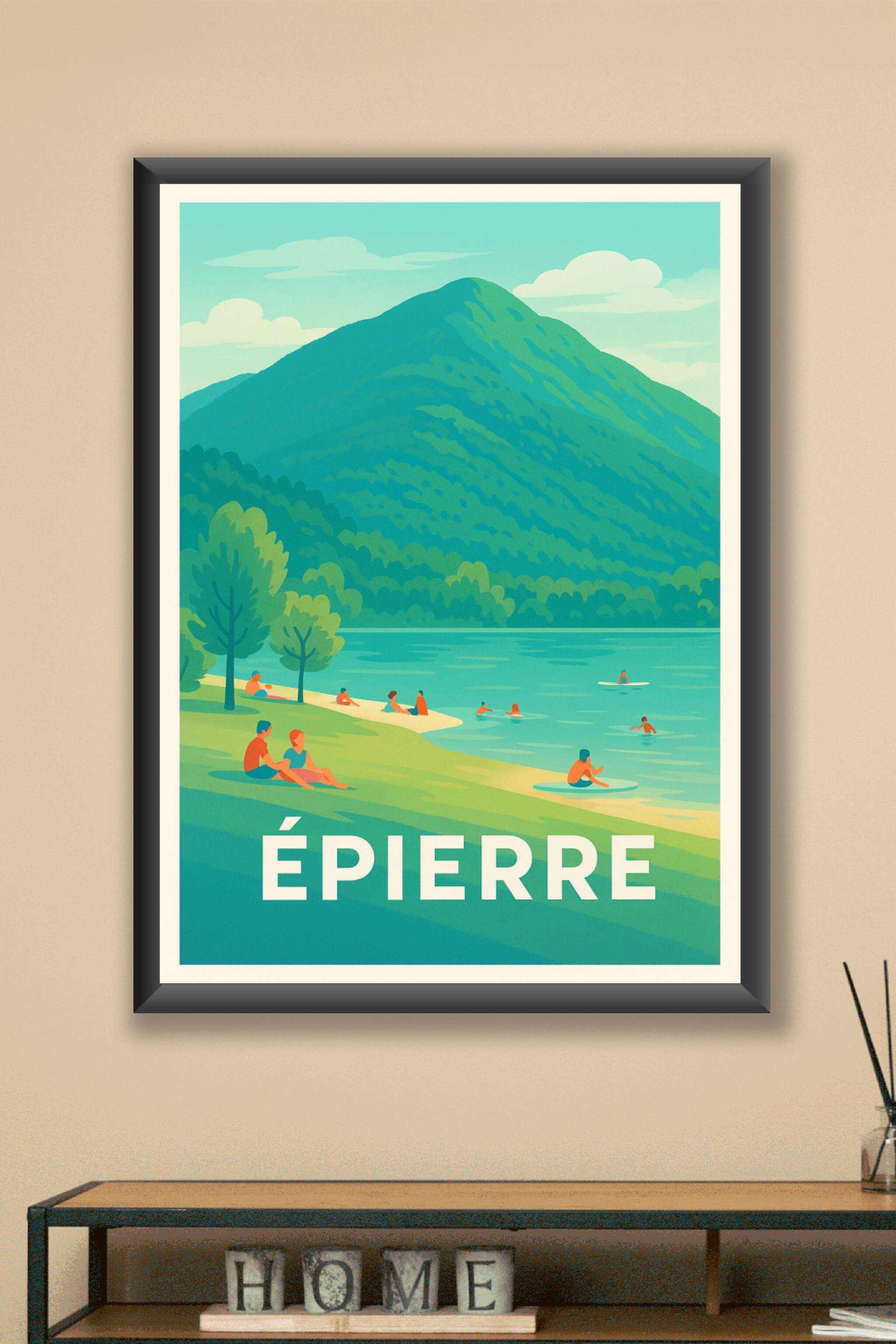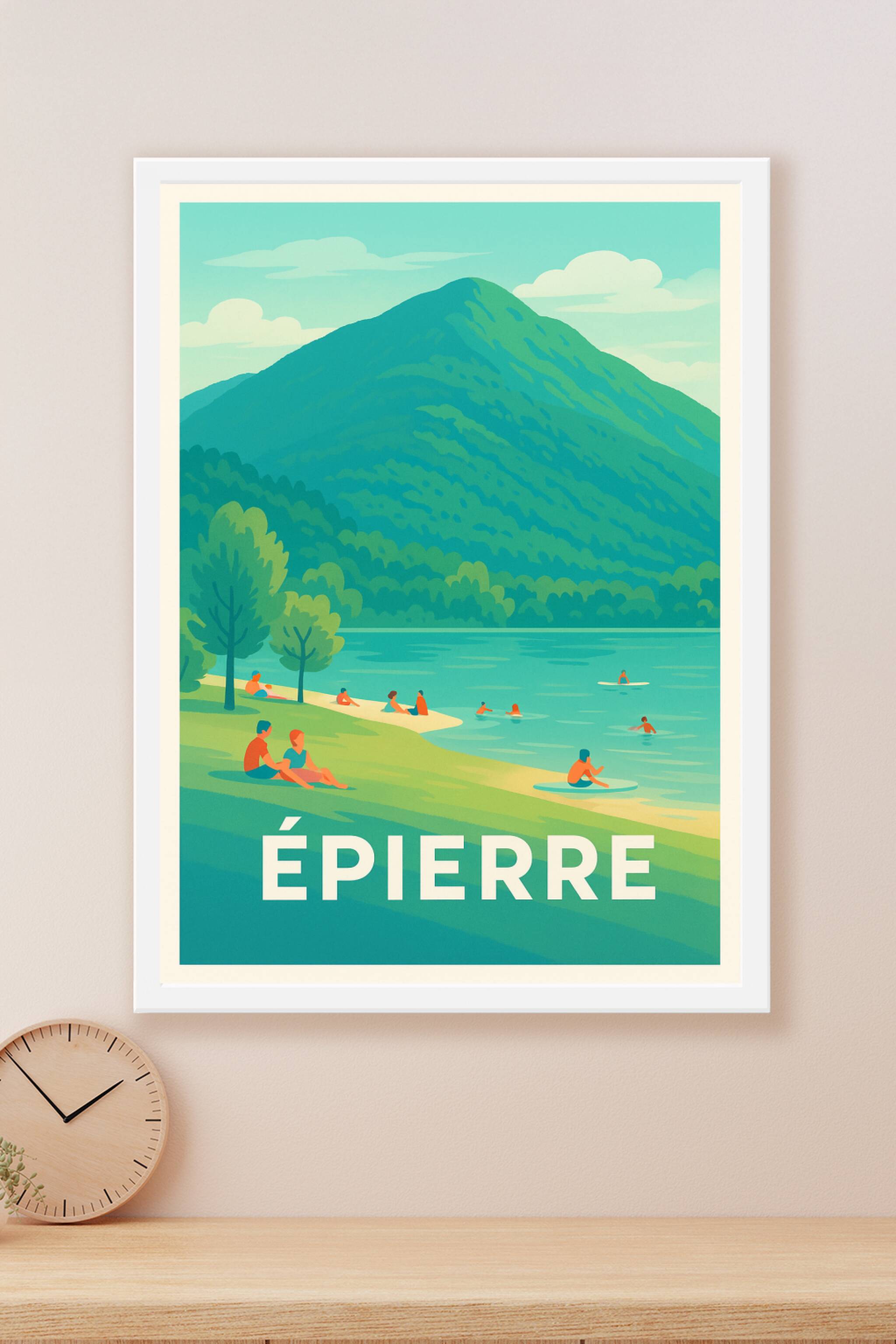 Découvrez l'affiche intemporelle d'Épierre, qui capture à merveille la sérénité d'un paysage montagneux accompagné de ses eaux paisibles. Ce poster illustre une scène où nature et loisirs se mêlent, avec des baigneurs profitant d'un cadre apaisant et verdoyant. Imprimée en tirage Fine Art sur papier 305g coton, cette affiche vous garantit une qualité d'impression supérieure, éclatante et résistante dans le temps. Disponible en formats A1 à A4, avec ou sans cadre, ce poster est parfait pour embellir votre intérieur ou offrir un souvenir d'évasion et de bien-être. Profitez d'une production 100% française qui sublime les moindres détails de ce paysage d'exception.