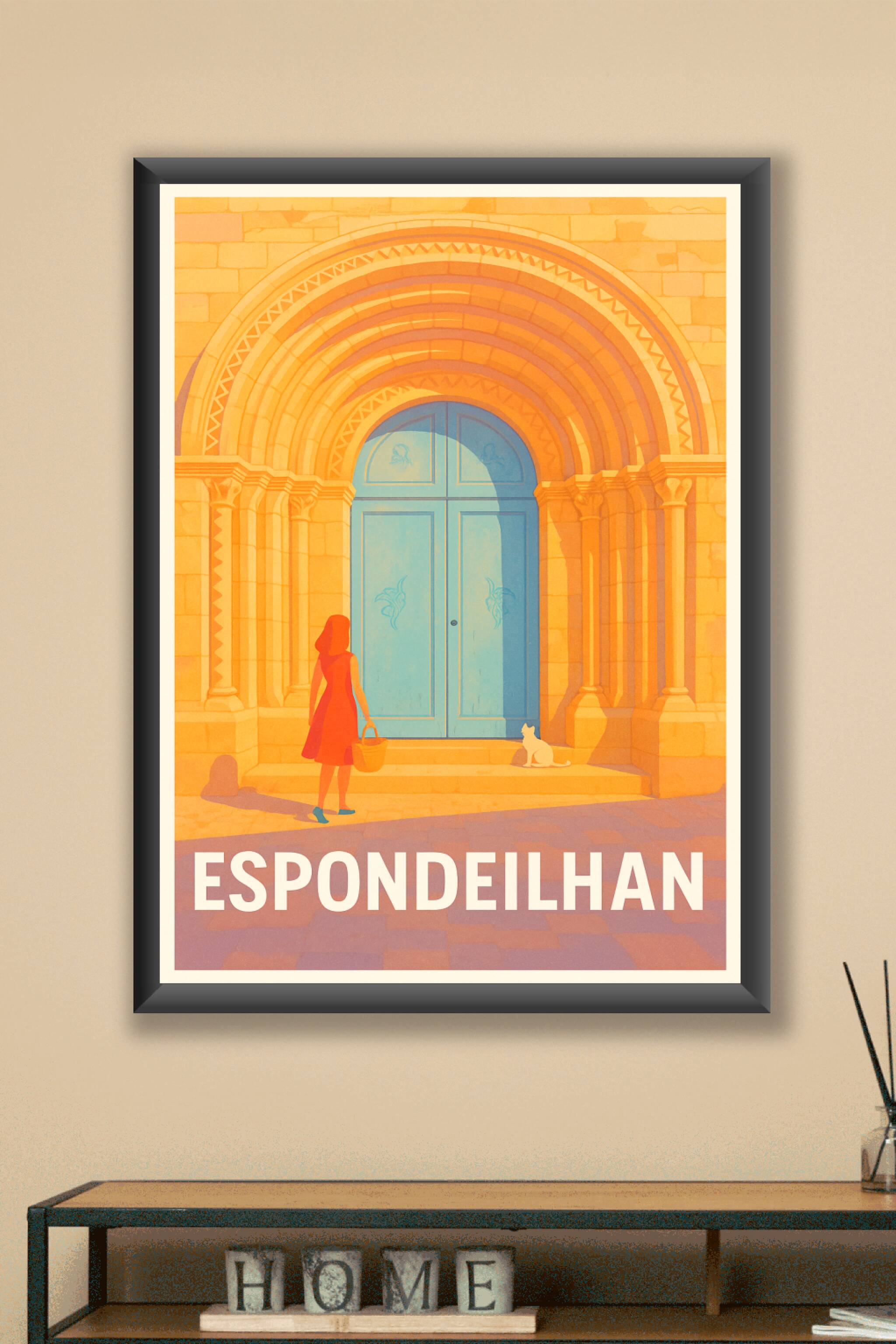 Découvrez toute la douceur d'Espondeilhan à travers cette affiche illustrée mettant en scène une porte bleue remarquable encadrée par une architecture en pierre dorée, baignée par la lumière chaleureuse du soleil. La scène dévoile une ambiance paisible avec une femme vêtue de rouge et un chat posé sur les marches, une invitation à la sérénité et au charme de ce village. Ce poster est imprimé en tirage "Fine Art" sur papier 305g coton, garantissant une qualité et une précision d'impression exceptionnelles. Disponible en formats A1 à A4, avec ou sans cadre selon vos préférences, il sera un élément parfait pour sublimer votre décoration intérieure ou offrir un cadeau unique. Profitez d'une impression haut de gamme 100% fabriquée en France pour un rendu éclatant et durable.