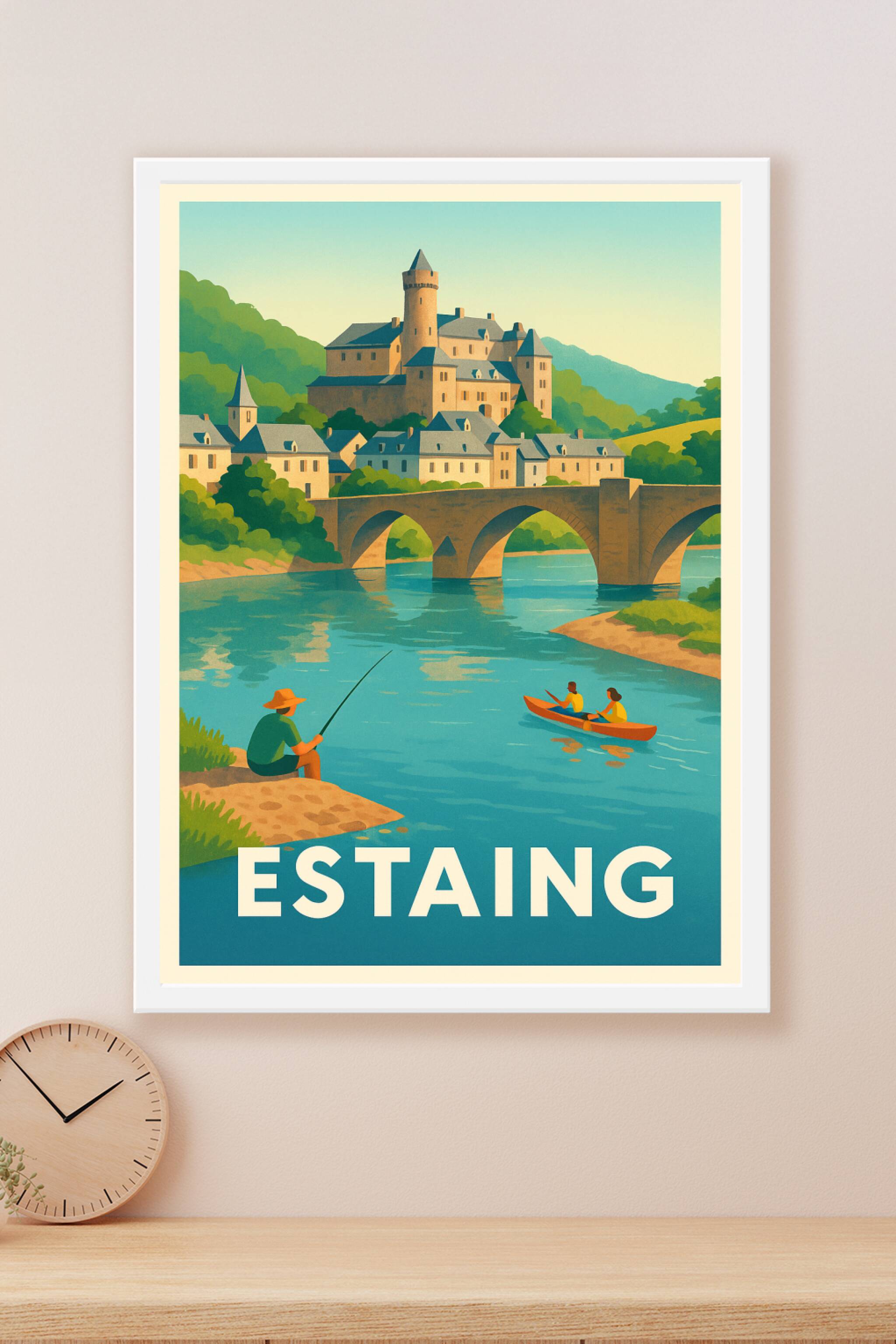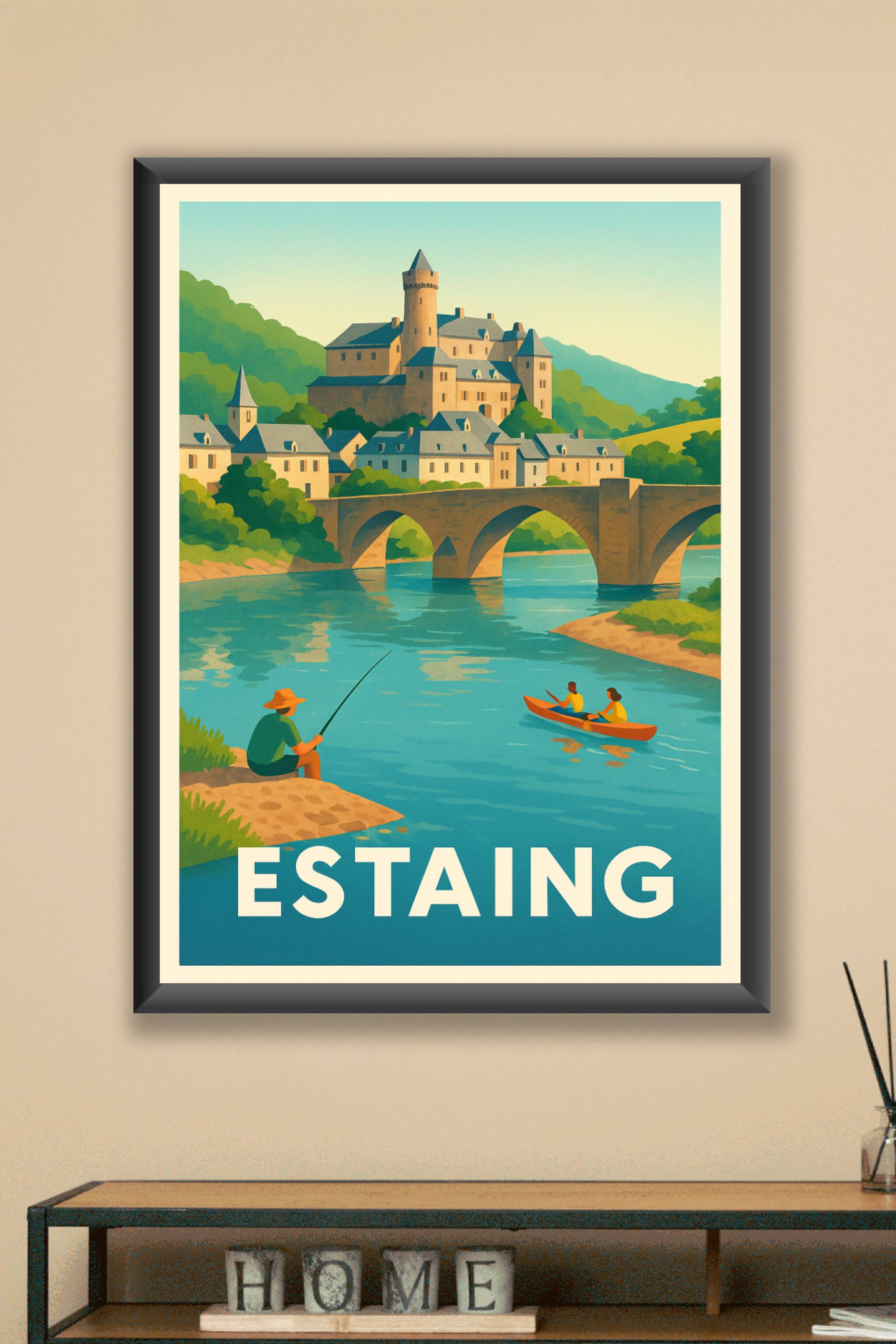 Découvrez la douceur de vivre d'Estaing avec cette magnifique affiche illustrée qui capture l'essence tranquille du village au bord de l'eau. Entre...