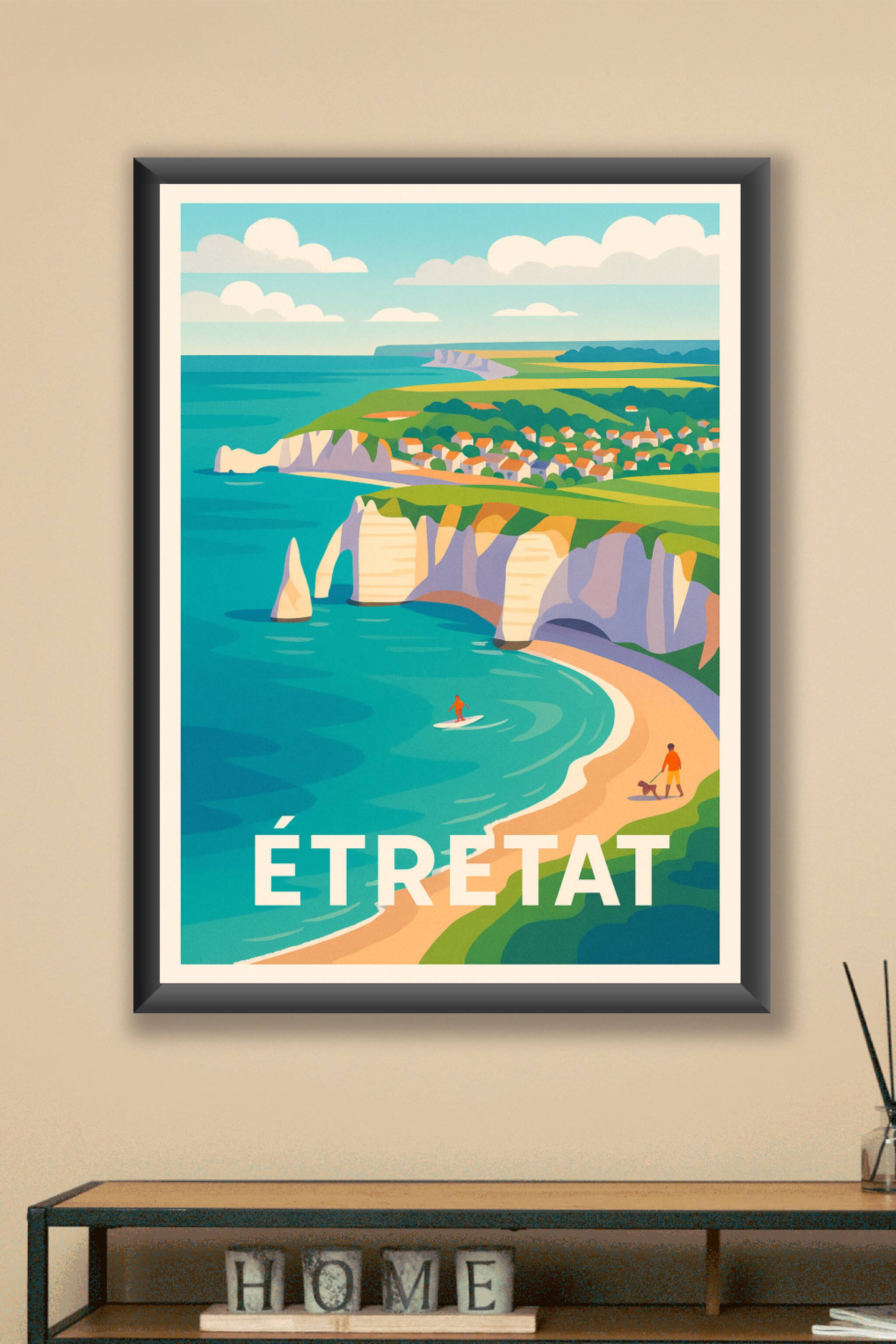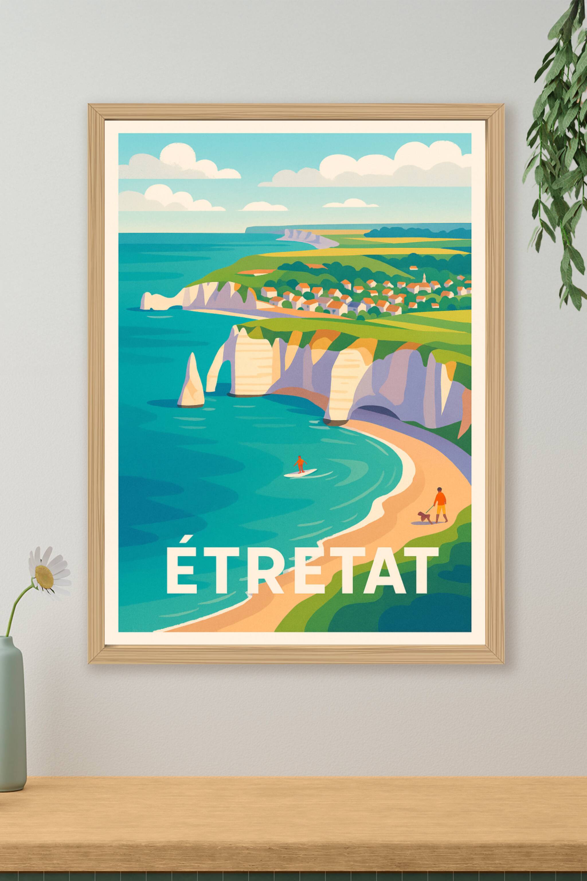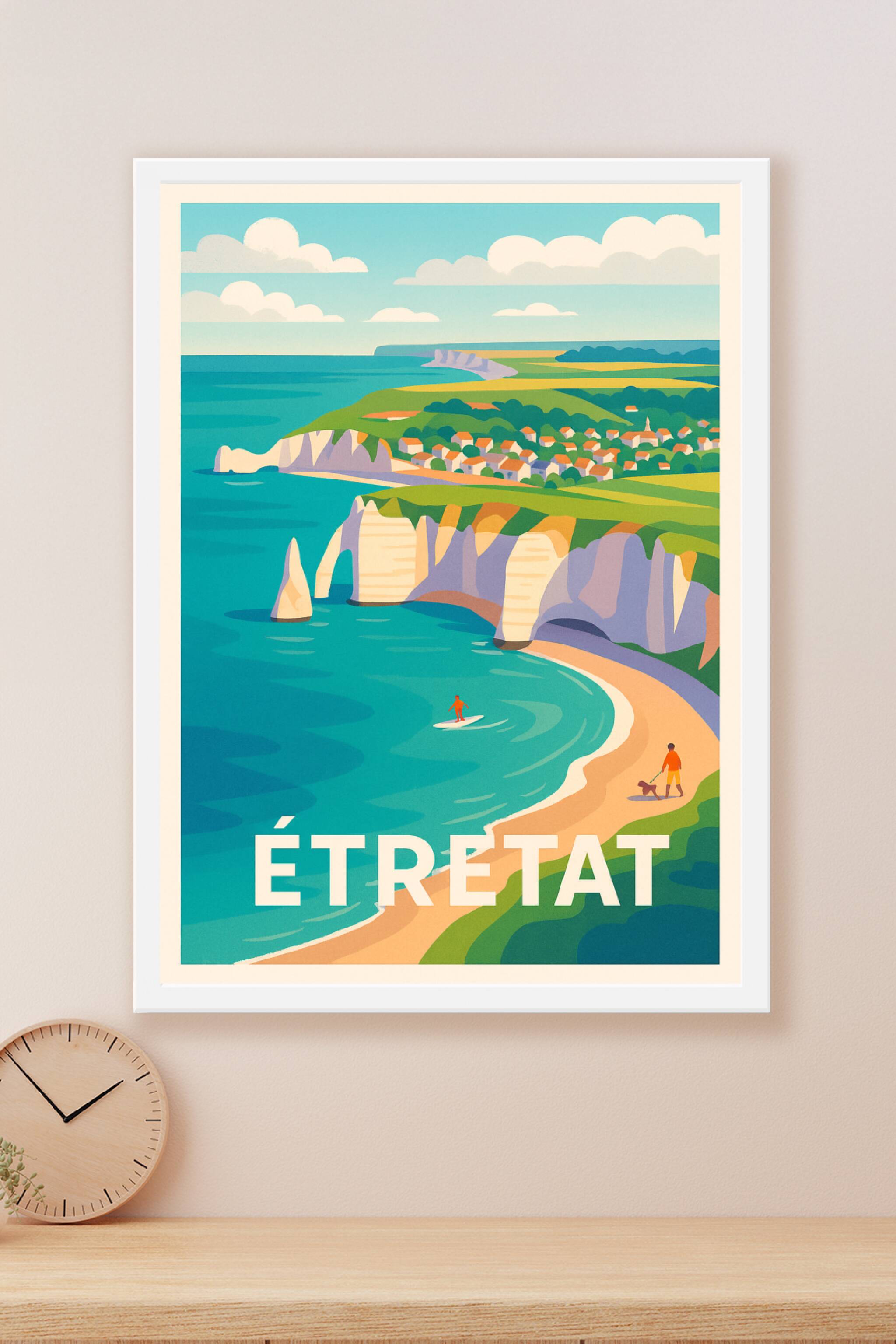 Découvrez la beauté exceptionnelle de la côte normande avec cette affiche représentant les célèbres falaises d'Étretat, un site naturel iconique mê...