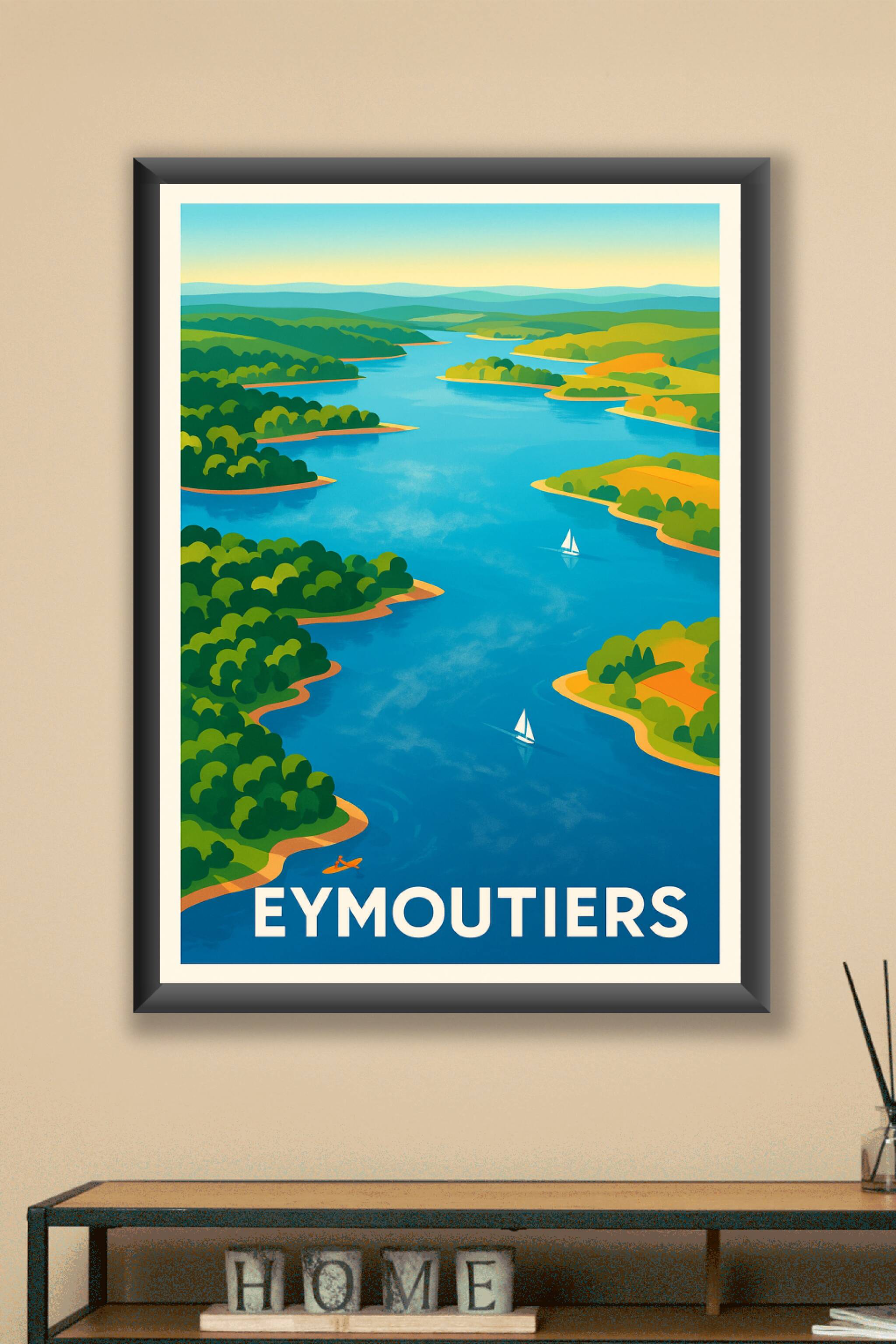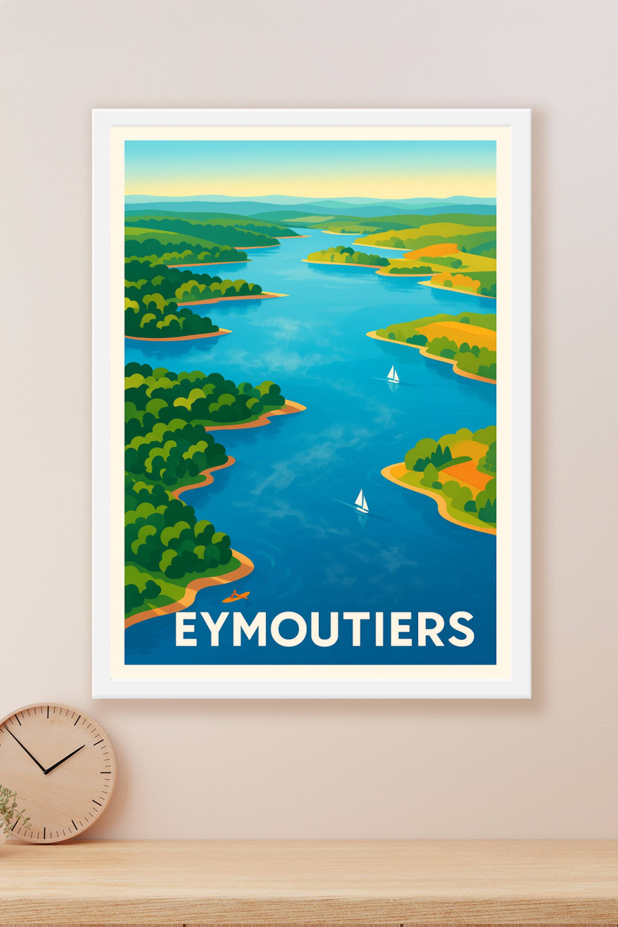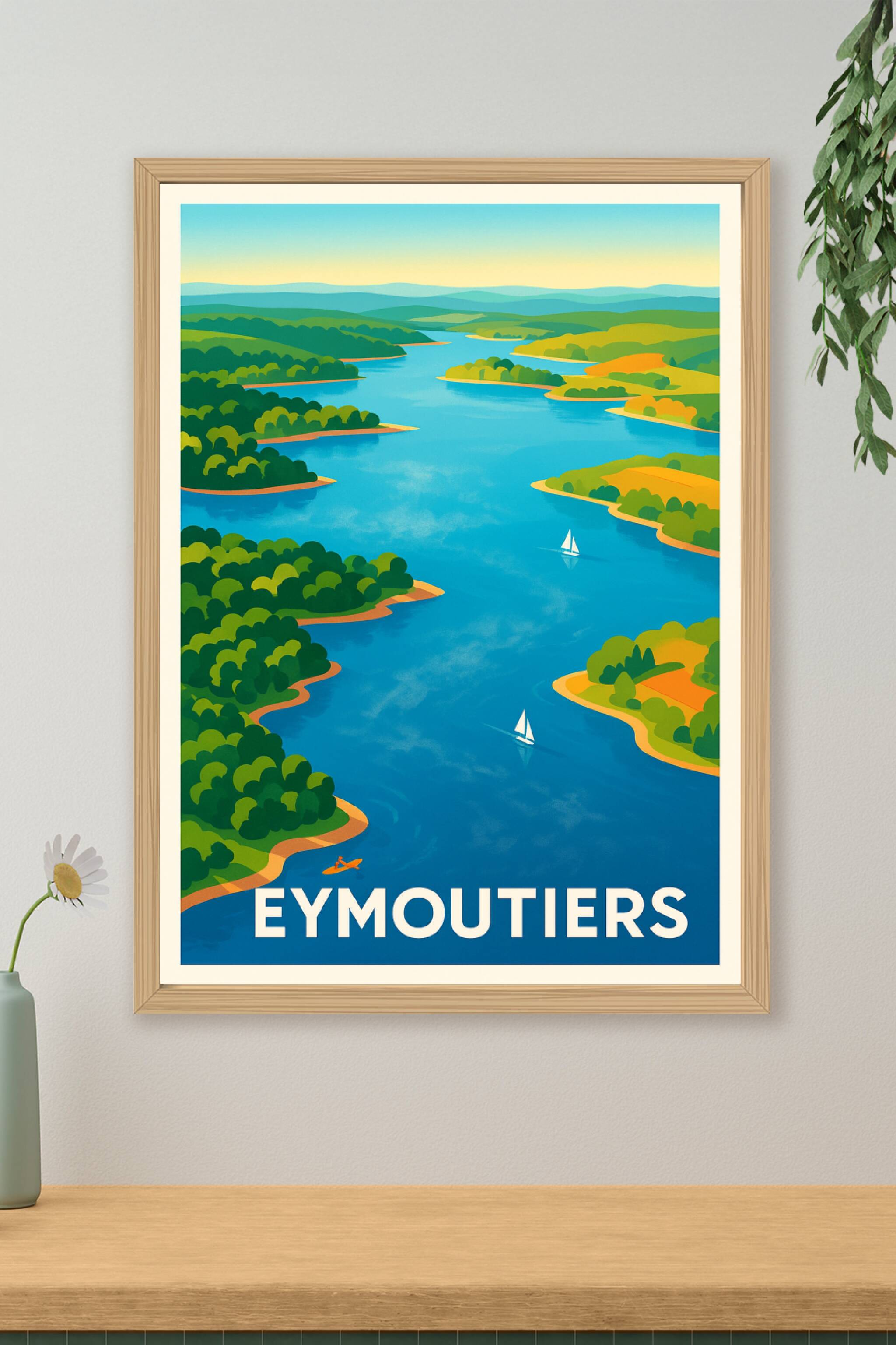 Découvrez la beauté naturelle d'Eymoutiers à travers cette affiche illustrée aux couleurs vives et apaisantes qui mettent en valeur ses cours d'eau...