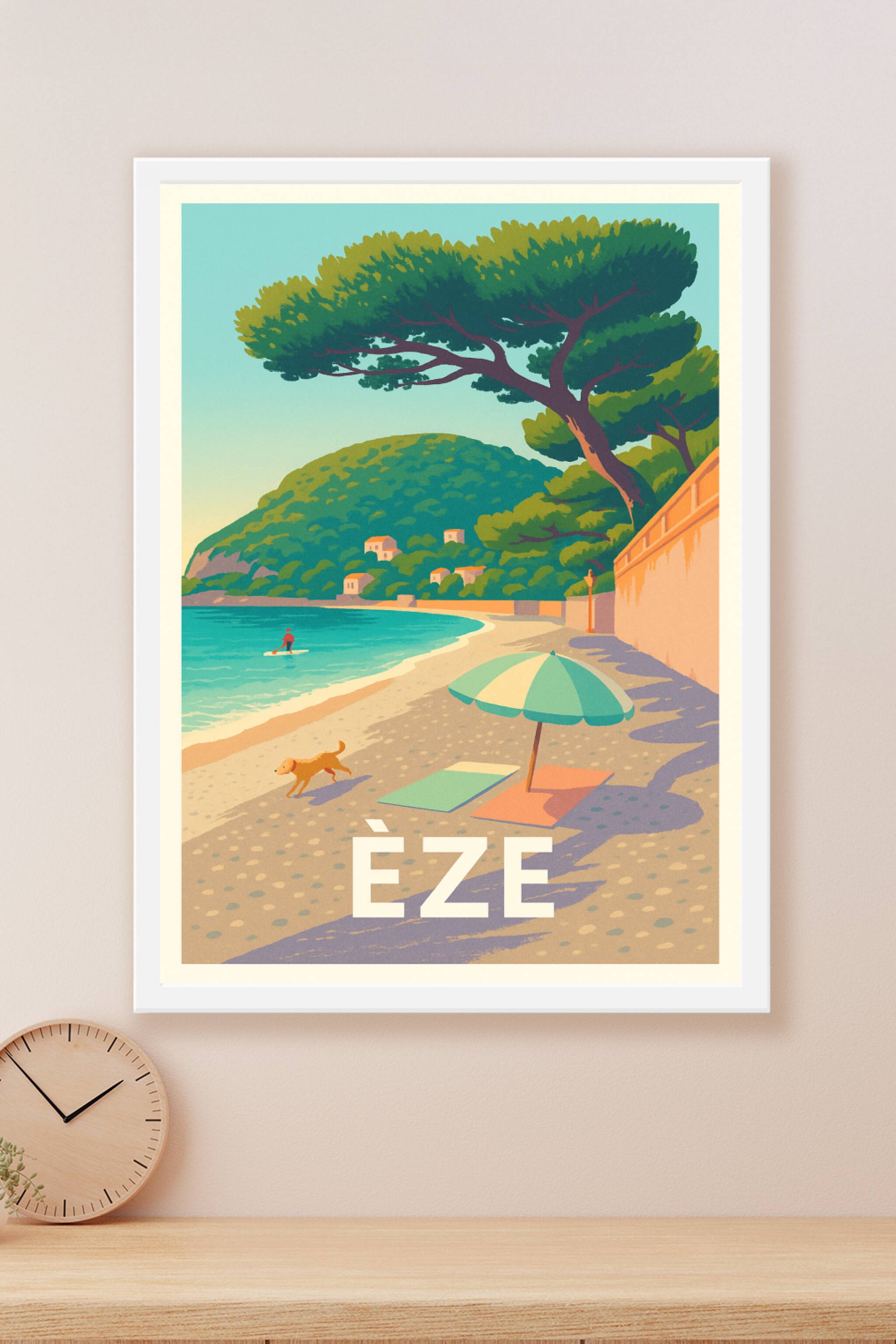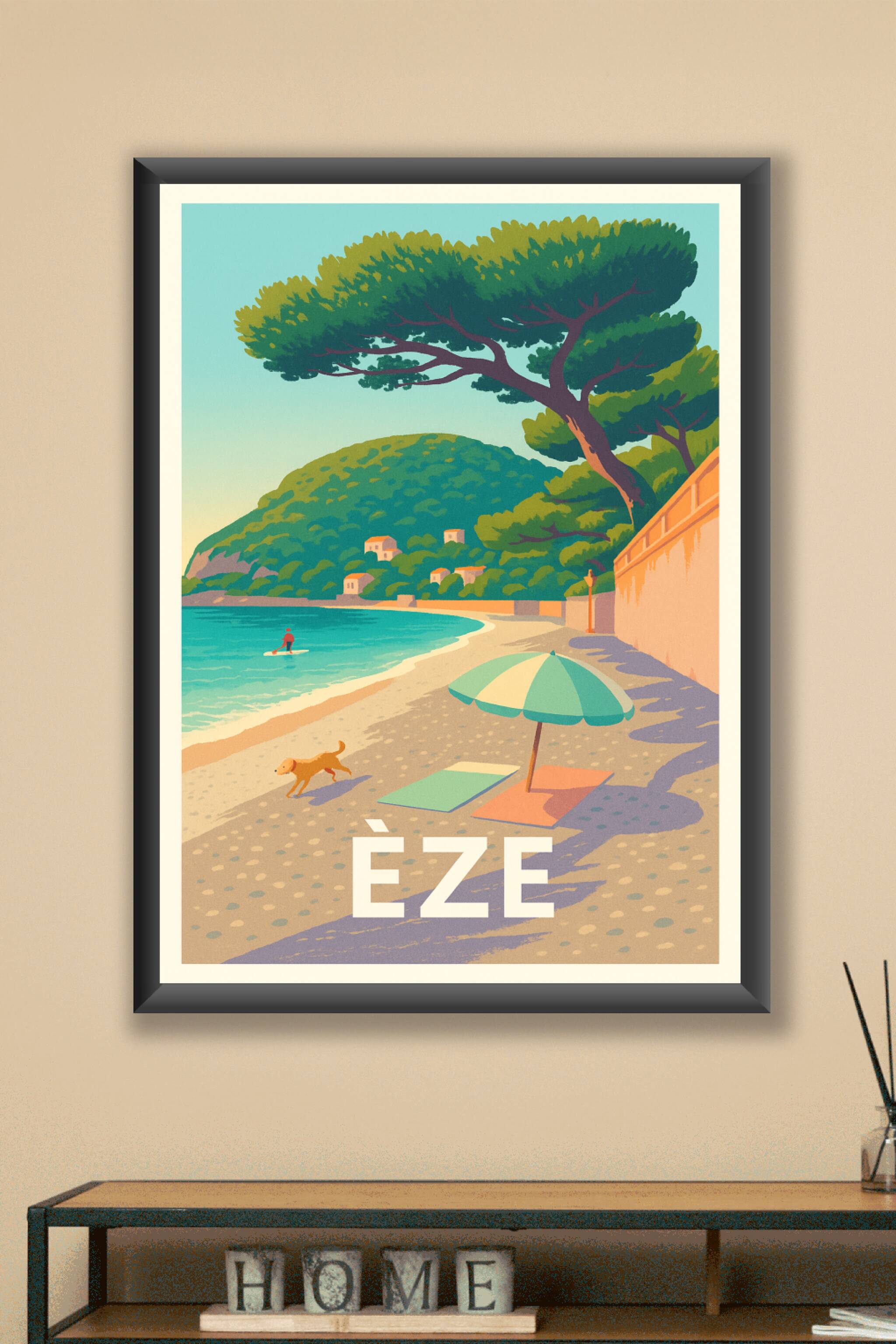 Découvrez le charme méditerranéen d'Èze avec cette affiche illustrée qui capture la douceur de vivre au bord de la plage, sous l'ombre apaisante de...