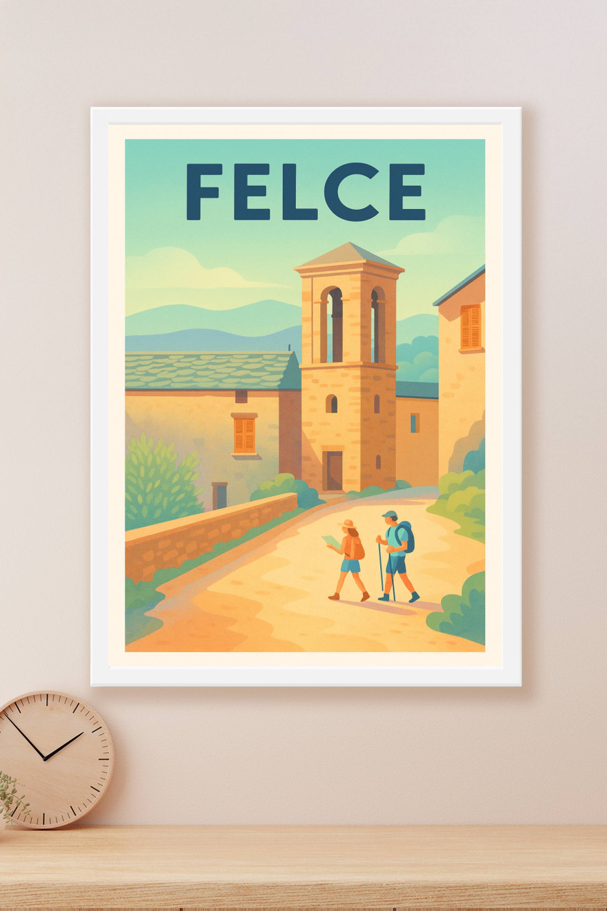 Découvrez la tranquillité et le charme authentique de Felce avec cette affiche illustrée, mettant en scène ses ruelles paisibles et son architectur...