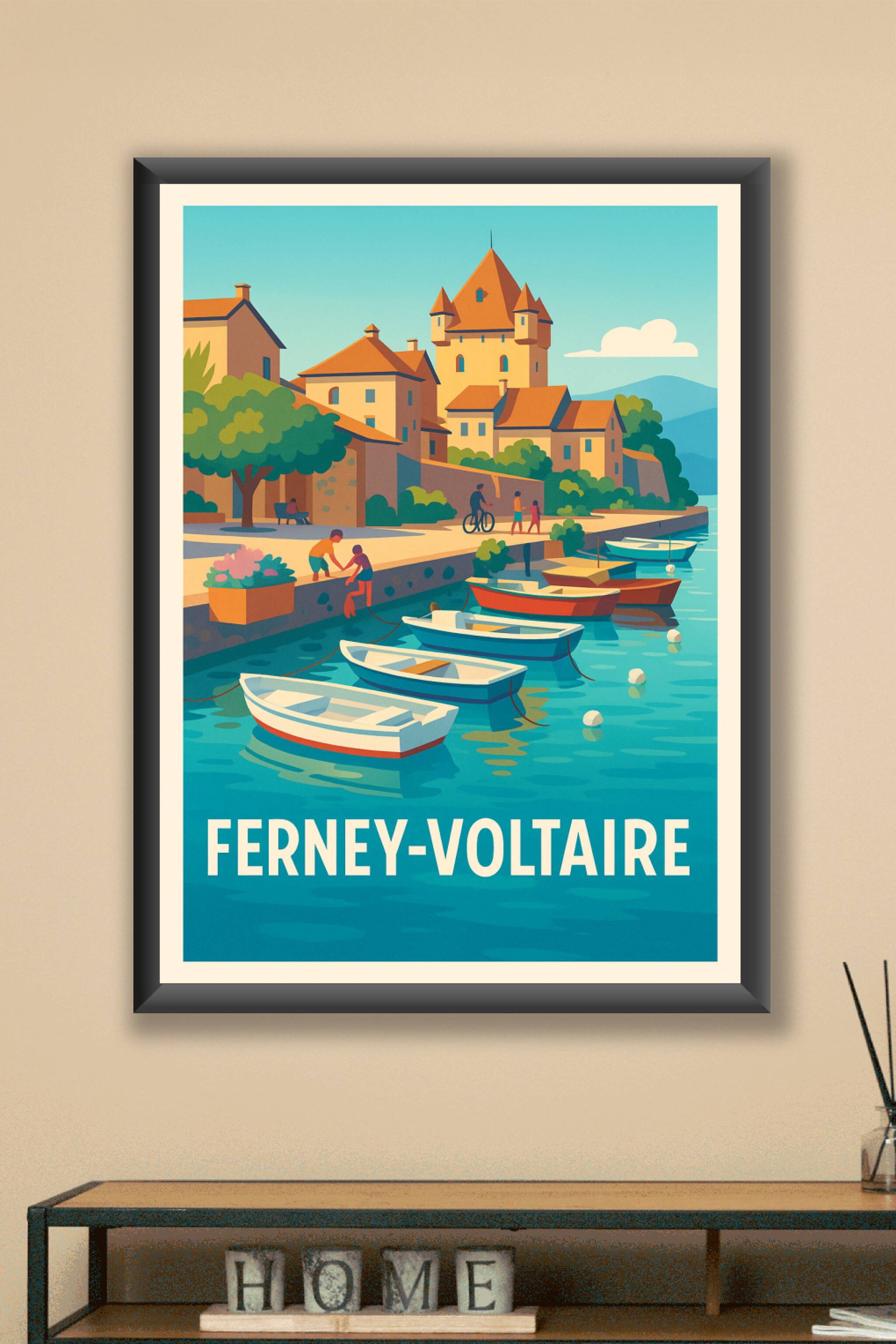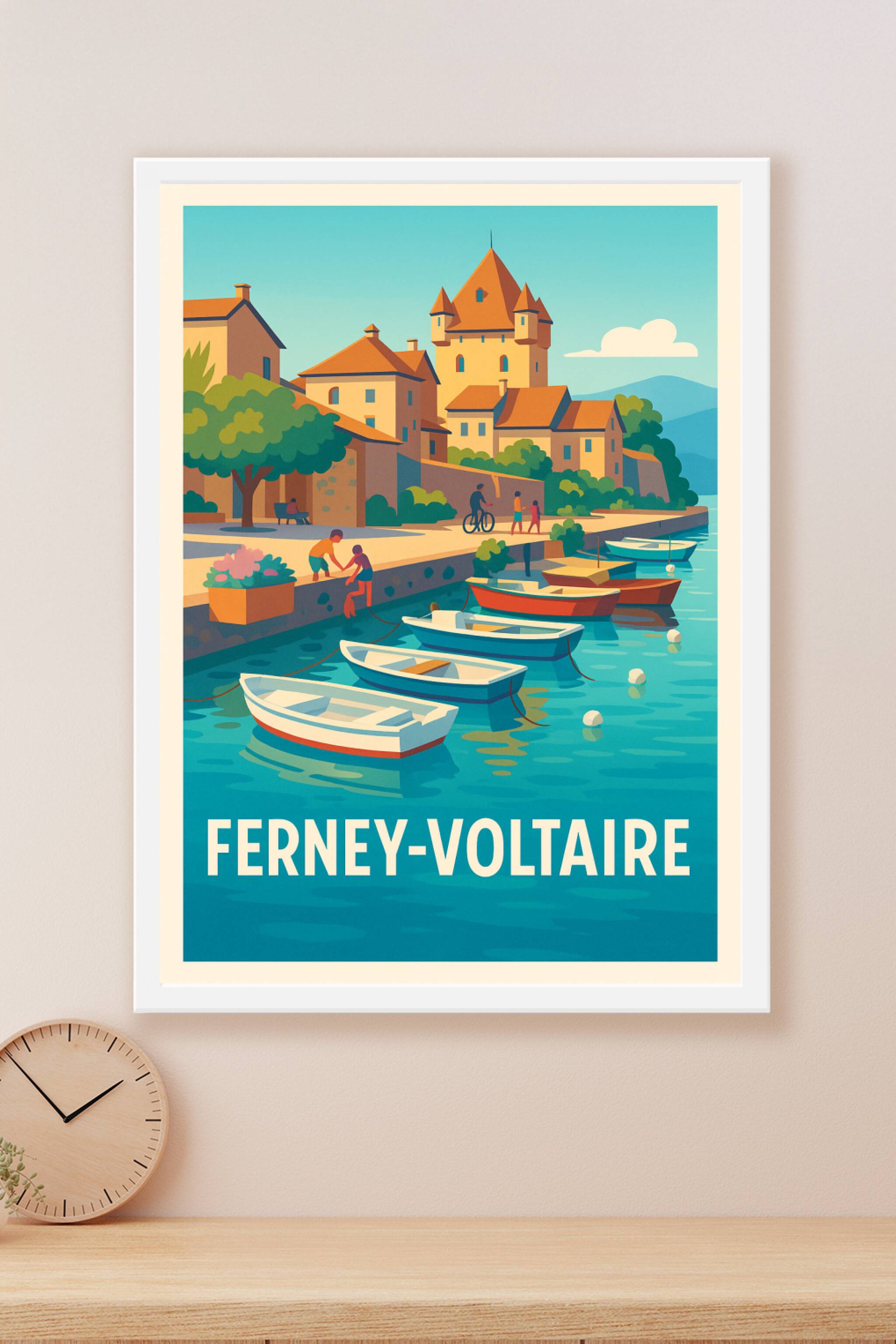 Découvrez la quiétude et la beauté pittoresque de Ferney-Voltaire avec cette affiche illustrée au style vintage et coloré. Les bateaux amarrés, les...