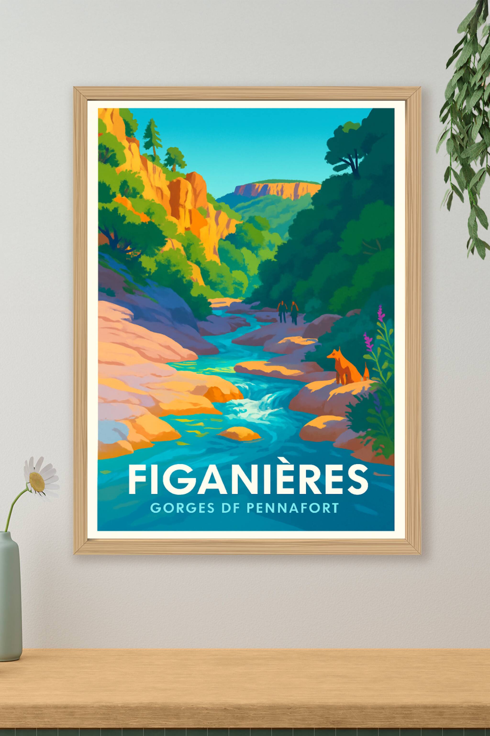 Découvrez l'émerveillement des Gorges de Pennafort à Figanières avec cette affiche aux couleurs vives et douces qui célèbre la beauté naturelle de ...