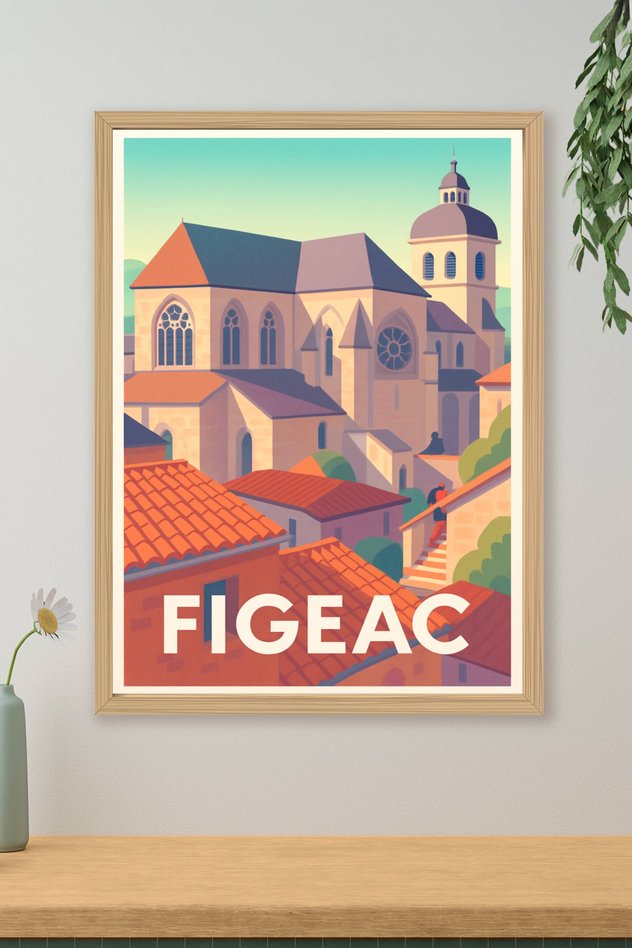 Découvrez le charme authentique de Figeac à travers cette affiche illustrée mettant en lumière ses toits en tuiles et l'architecture remarquable de...