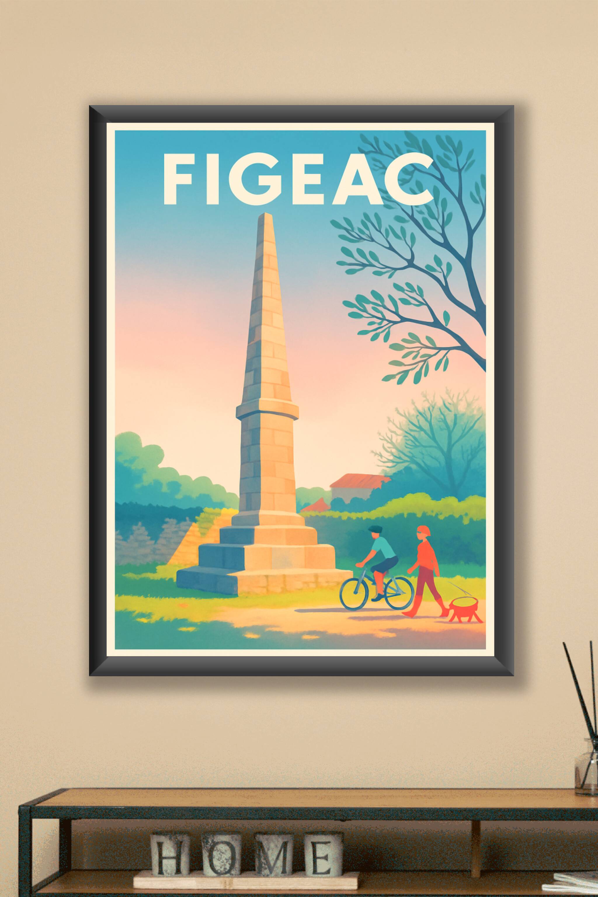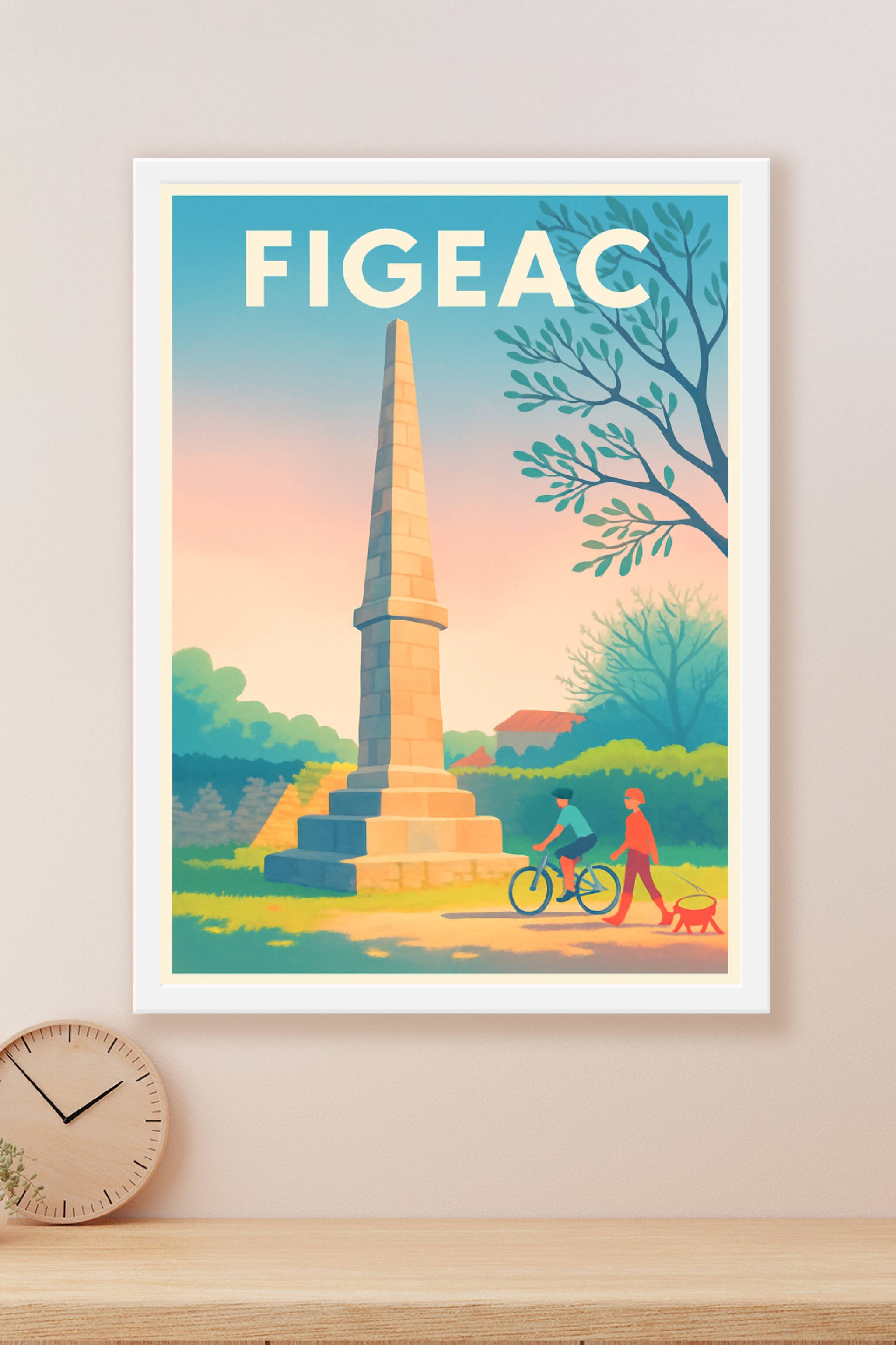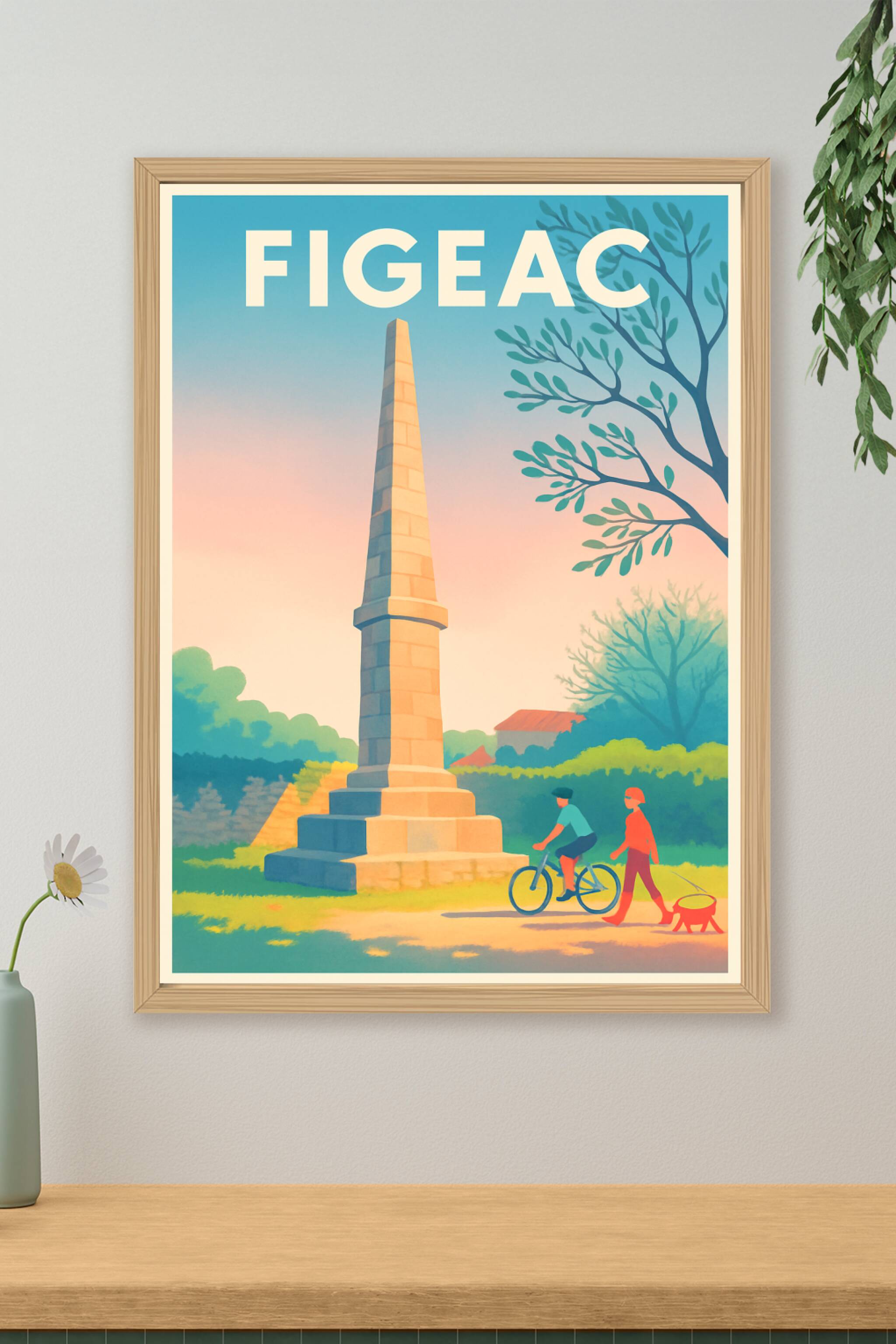 Découvrez la sérénité de Figeac avec cette affiche illustrée mettant en scène une scène paisible au lever du jour, où un cycliste et un promeneur avec son chien profitent d'une balade au pied d'un obélisque historique. Ce poster au style doux et lumineux capture l'essence d'une journée tranquille dans cette charmante ville du Sud-Ouest.Cette affiche est imprimée en tirage "Fine Art" sur papier 305g coton, garantissant une qualité d'impression exceptionnelle et une longévité optimale. Disponible en formats A1 à A4, avec ou sans cadre, elle s'adapte parfaitement à votre décor intérieur.Offrez-vous ou offrez à un proche ce poster de qualité premium, 100% fabriqué en France, pour apporter une touche d'art et de nature à votre espace de vie.