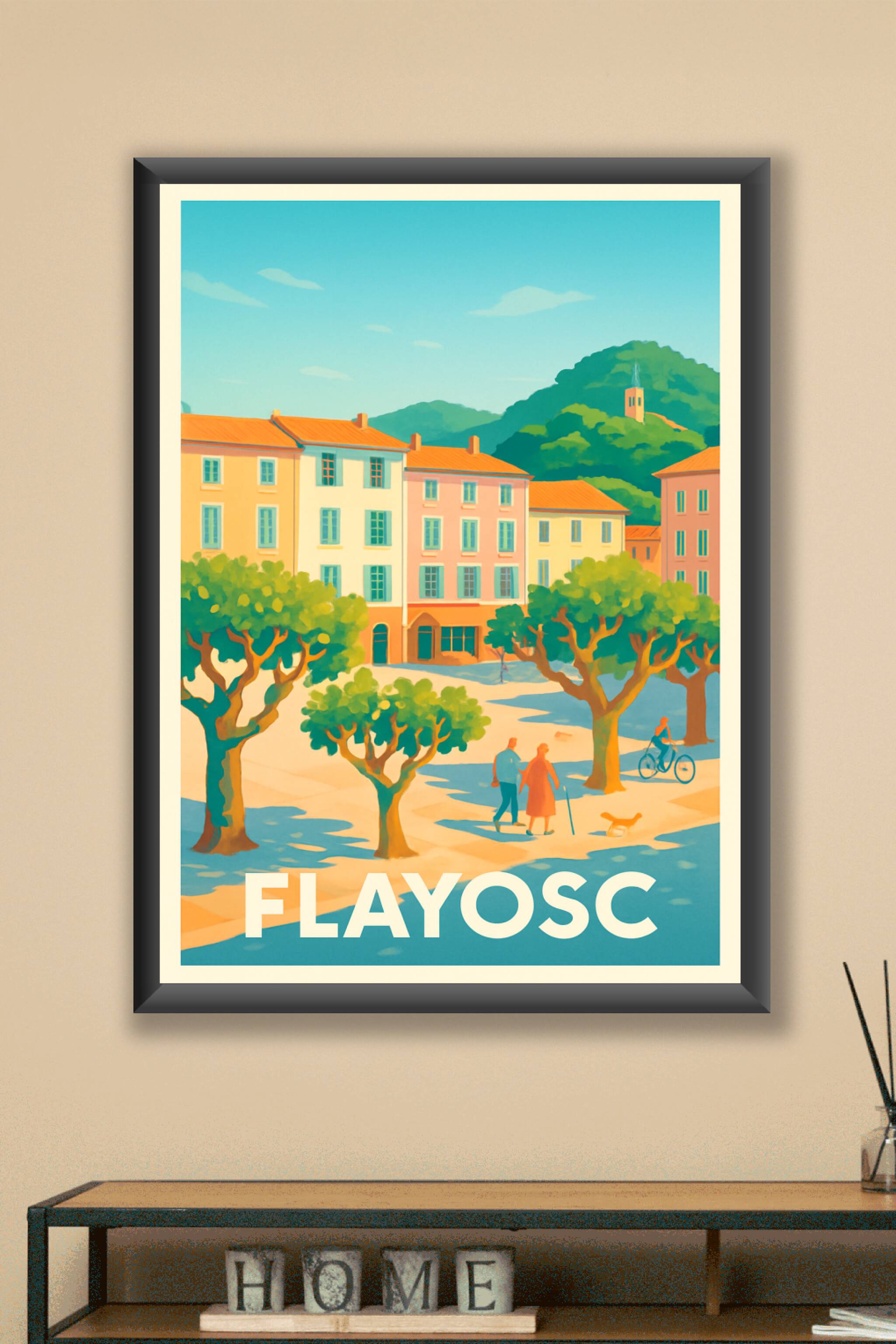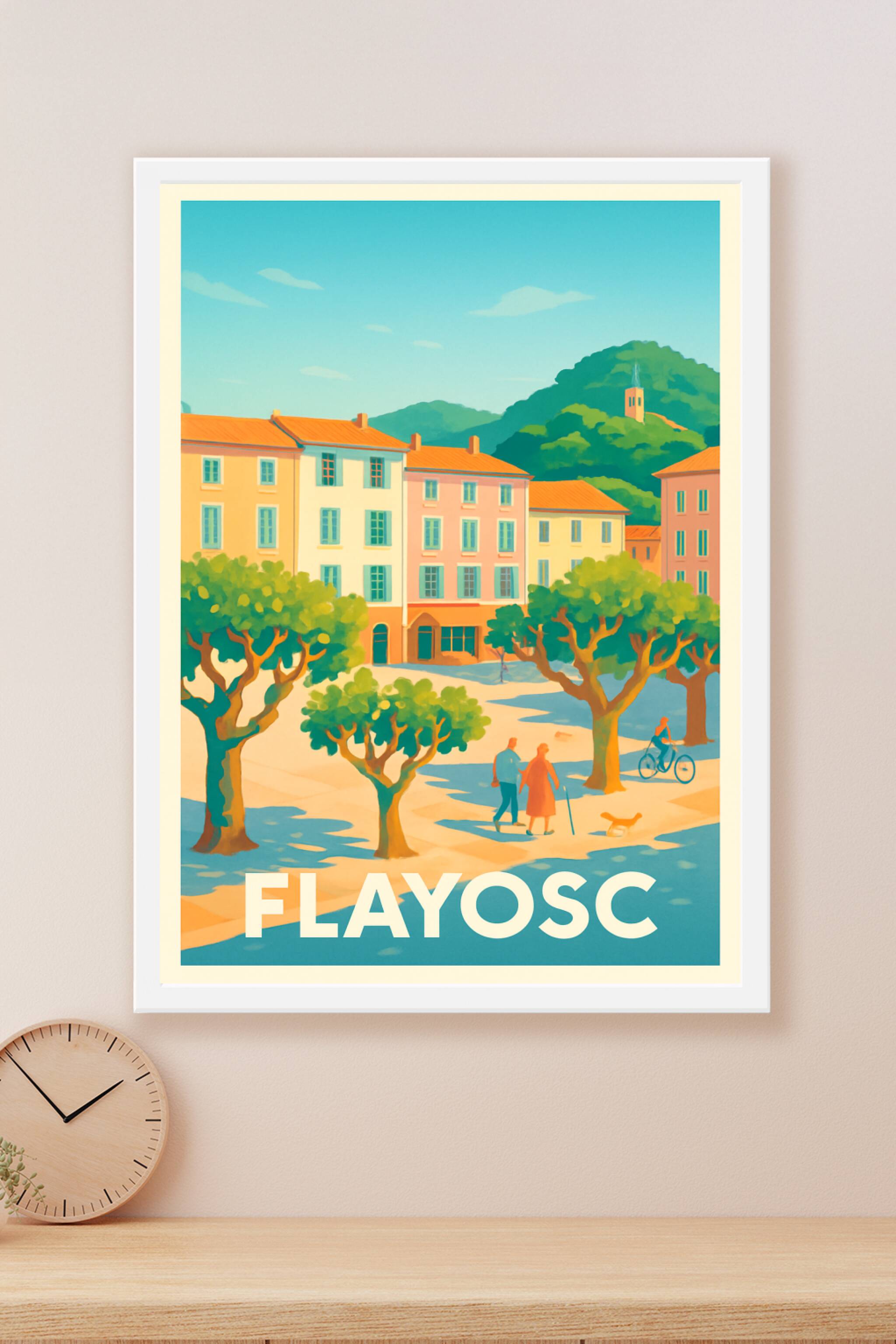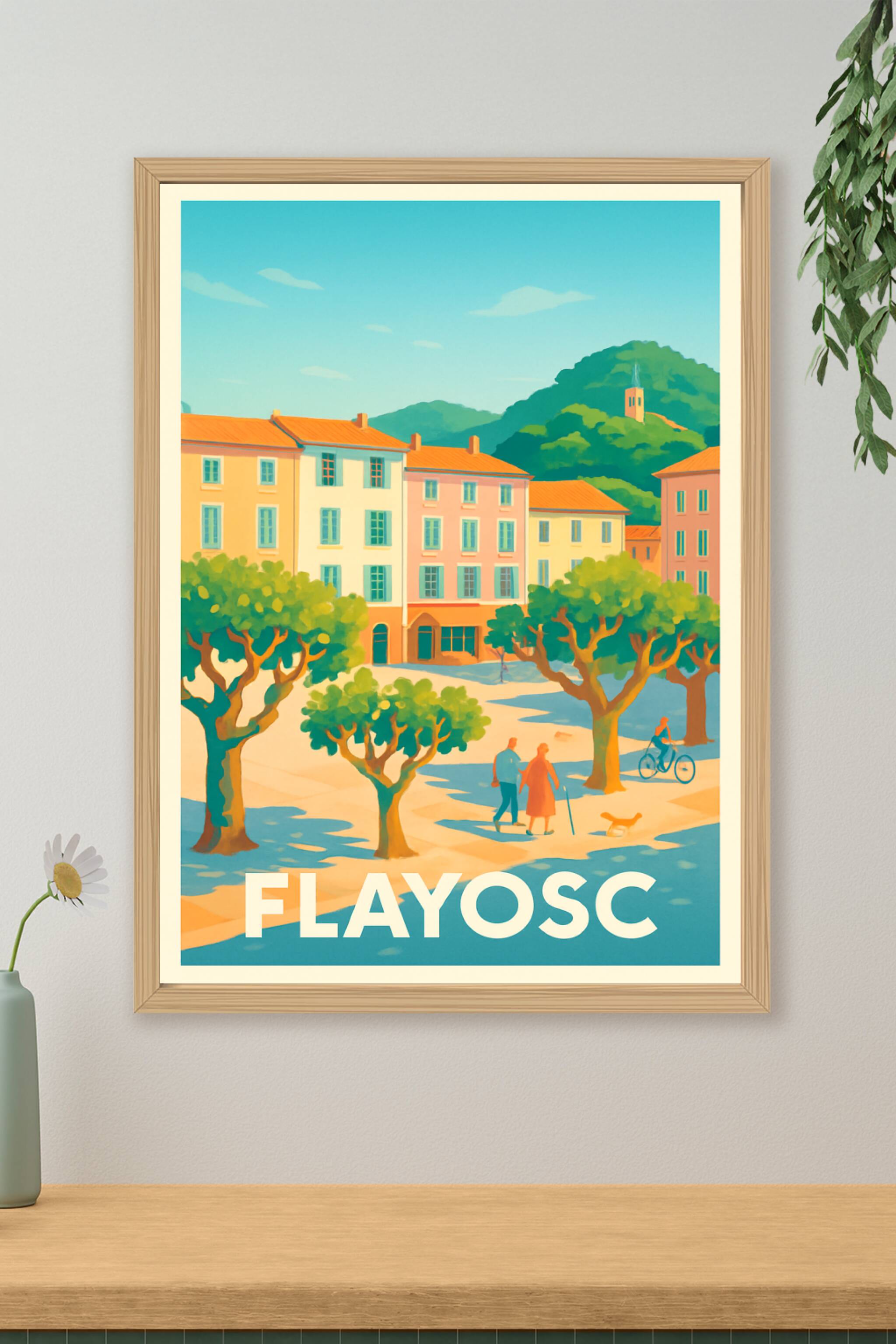 Découvrez le charme bucolique de Flayosc avec cette affiche qui capture l'essence de la Provence, entre ses maisons colorées, ses arbres ombragés e...