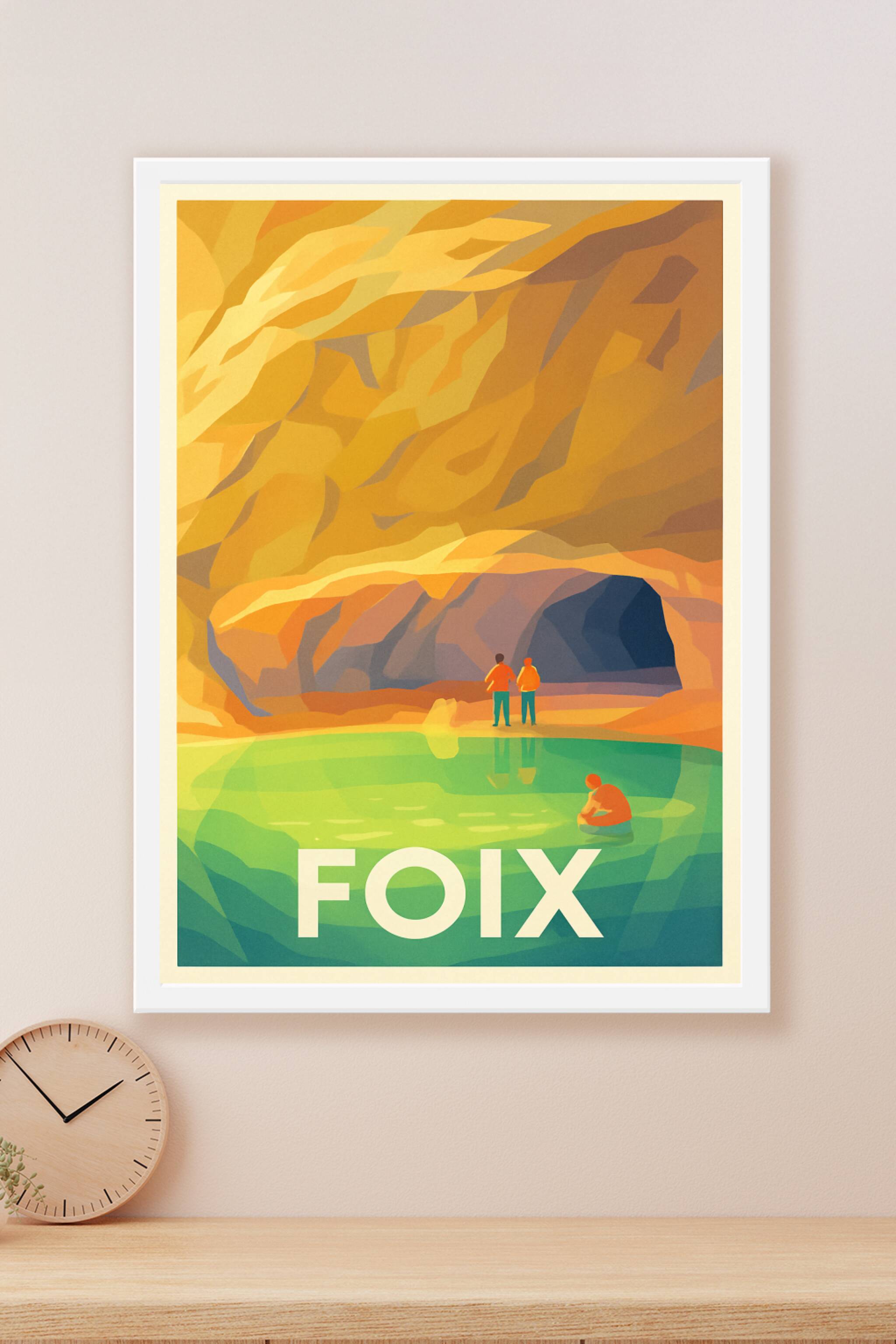 Découvrez la beauté mystérieuse de Foix à travers cette affiche illustrée mettant en scène les impressionnantes grottes aux parois dorées et le reflet éclatant de l'eau verte. Ce poster capture l'atmosphère unique de ces paysages souterrains, propices à l'aventure et à la contemplation.Ce poster est proposé en tirage "Fine Art" sur papier 305g coton, garantissant une qualité d'impression supérieure et des couleurs vibrantes qui sublimeront votre décoration intérieure. Disponible en plusieurs formats allant de A1 à A4, avec ou sans cadre, cette affiche est parfaite pour apporter une touche d'authenticité et de nature à votre habitat ou pour offrir un souvenir mémorable de Foix.Profitez d'une fabrication 100% française et d'une impression premium pour un produit durable et élégant.