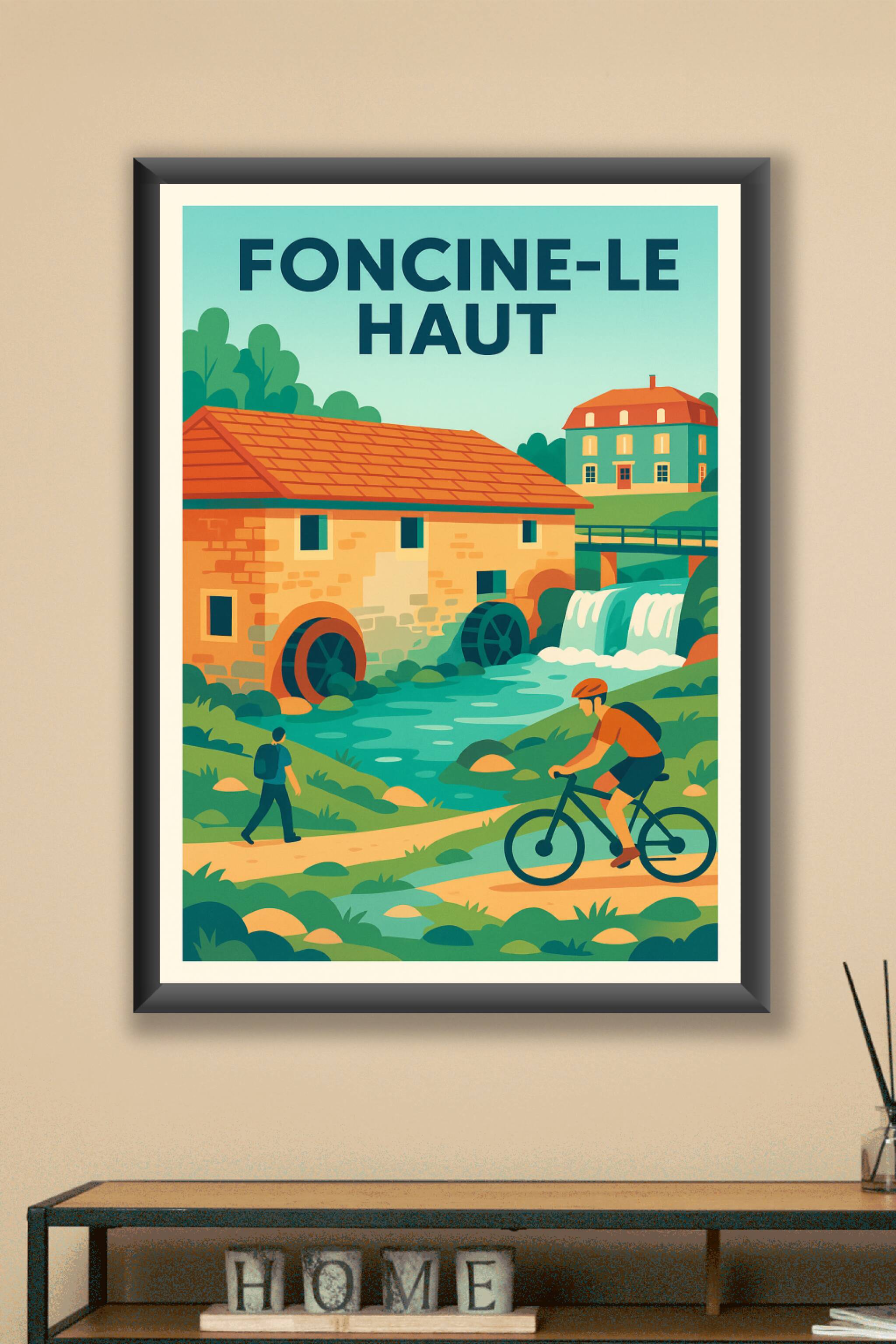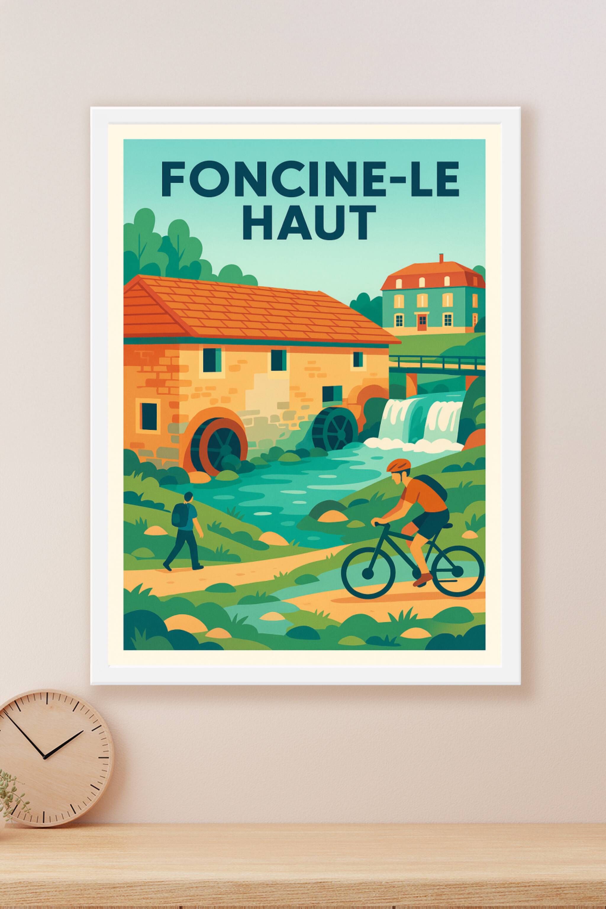 Cette affiche illustrée transporte toute la douceur et la richesse naturelle de Foncine-le-Haut, avec son moulin typique, ses cascades et ses chemins bucoliques. Parfaite pour les amoureux de la randonnée, du vélo et des paysages authentiques, ce poster met en valeur un coin de nature préservée au cœur du Jura.Ce poster est imprimé en tirage "Fine Art" sur papier 305g coton, garantissant des couleurs vives et une finition d'exception. Disponible en formats A1 à A4, avec ou sans cadre, cette affiche sublime votre décoration intérieure tout en apportant une touche d'authenticité. Profitez d'une impression premium, 100% française, idéale pour offrir ou agrémenter votre intérieur d'une scène inspirante et apaisante.