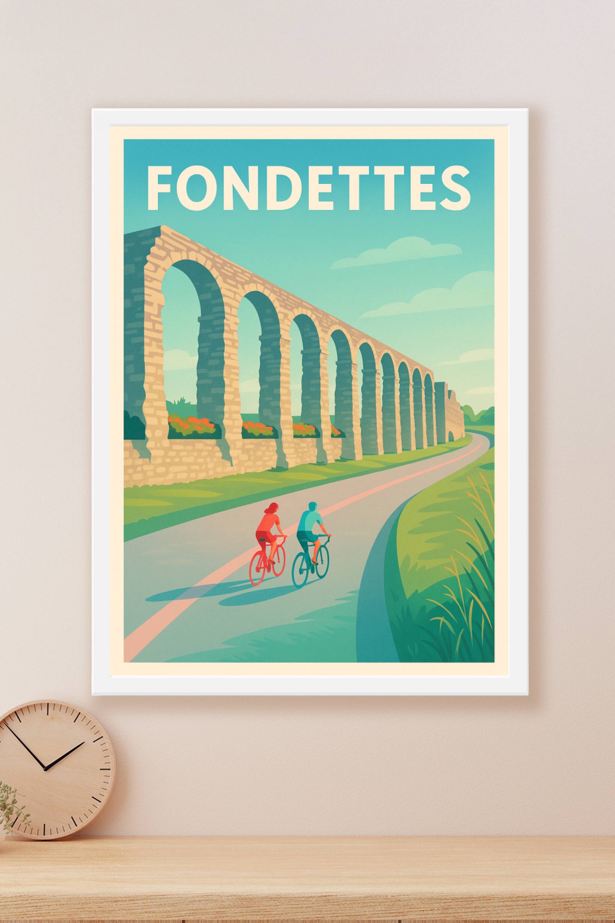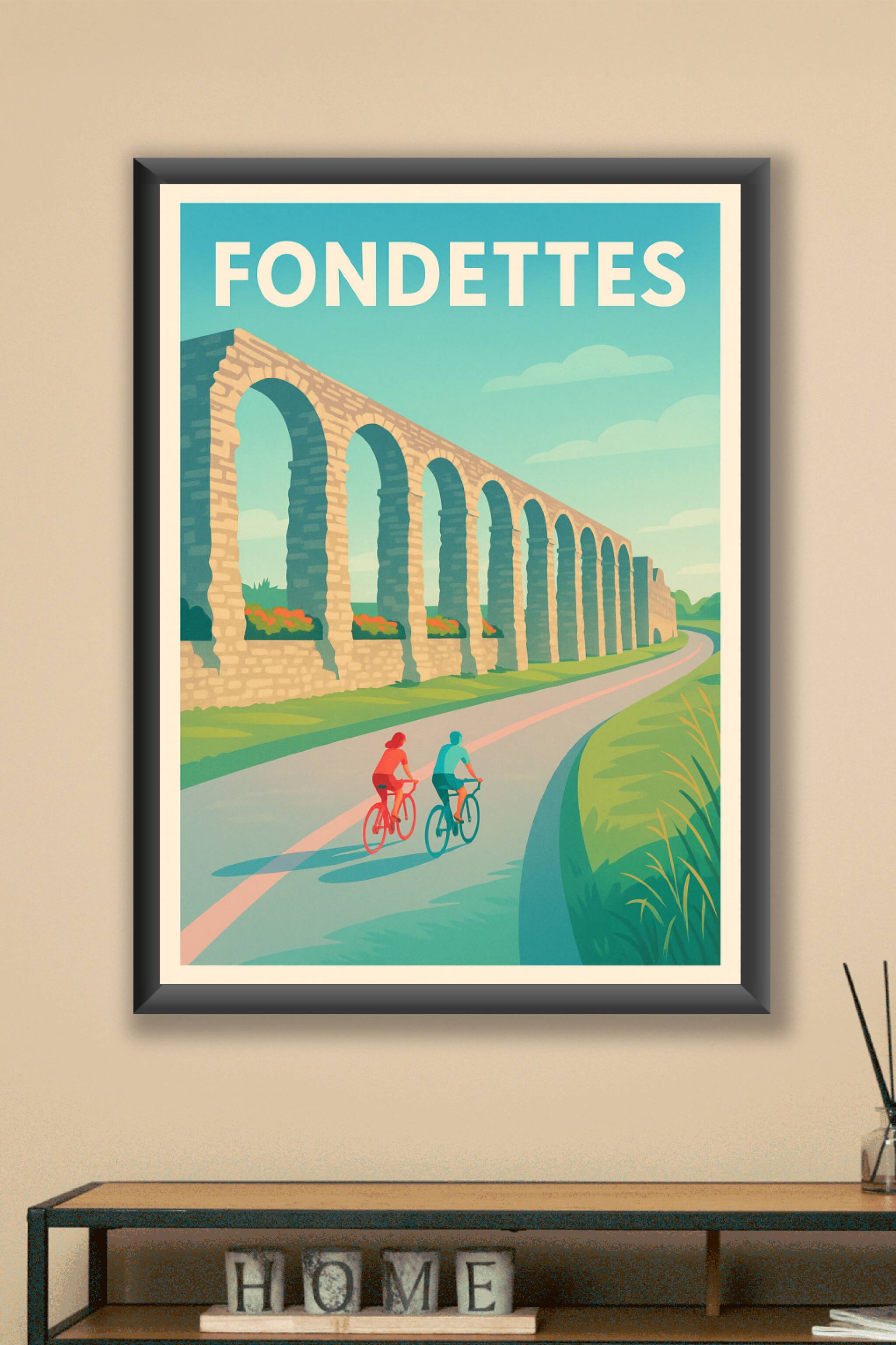 Découvrez Fondettes à travers cette affiche illustrée mettant en scène les arches historiques de son aqueduc emblématique, le tout dans une ambiance douce et lumineuse. Le poster invite à la balade à vélo, symbole d'un mode de vie sain et respectueux de la nature. Imprimée en tirage "Fine Art" sur papier 305g coton, cette affiche garantit une qualité d'impression exceptionnelle pour sublimer votre décoration intérieure. Disponible en formats A1 à A4, avec ou sans cadre, elle sera parfaite pour apporter une touche conviviale et authentique à votre espace ou offrir un cadeau original aux amoureux de cette charmante ville.