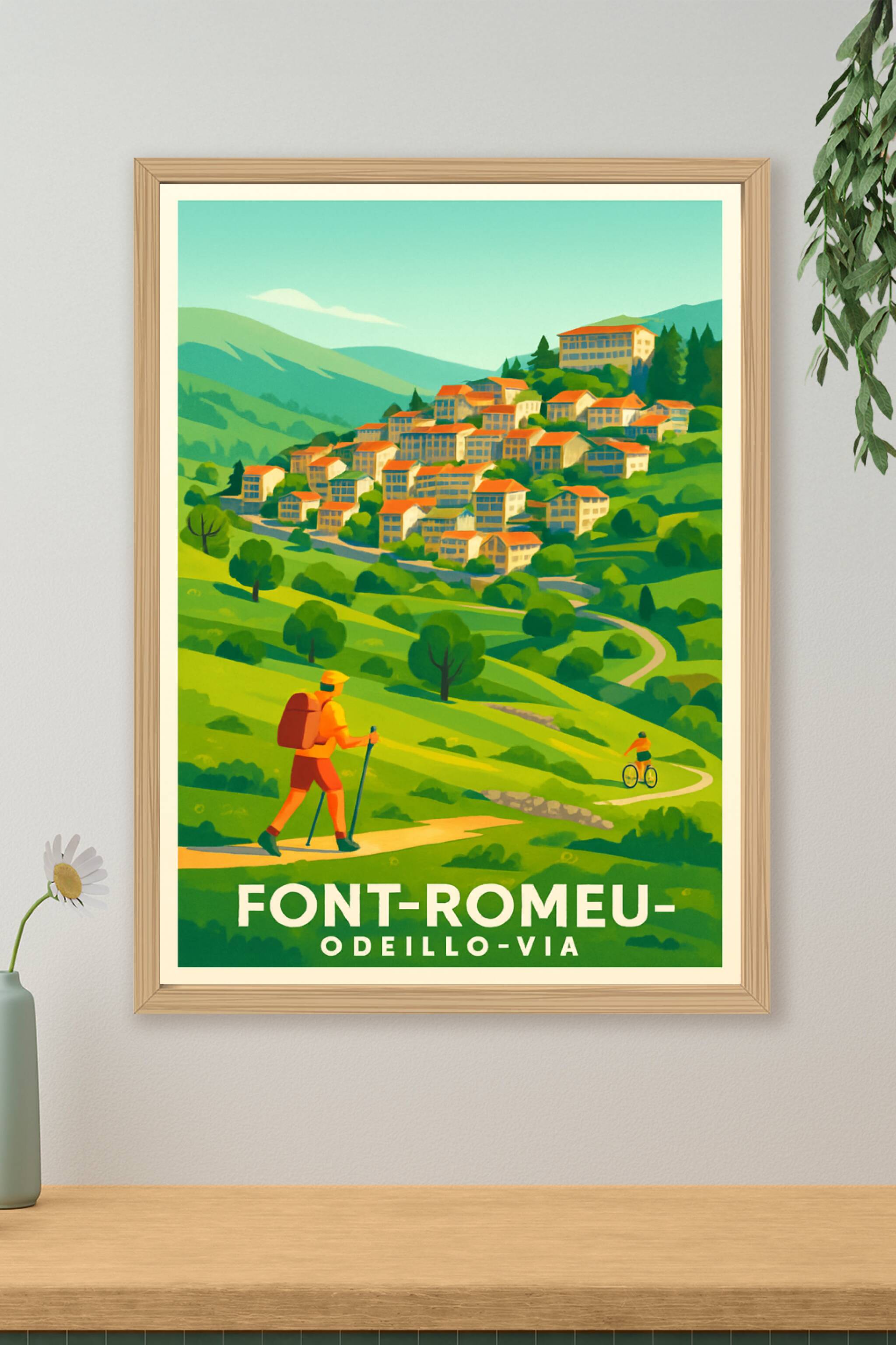 Découvrez l'esprit de Font-Romeu, station emblématique des Pyrénées, avec cette affiche illustrée qui capture la sérénité des paysages verdoyants et l'animation douce des randonneurs et cyclistes. Ce poster est parfait pour tous ceux qui aiment la montagne et le grand air, offrant une évocation douce et chaleureuse de cette destination prisée.Cette affiche est imprimée en tirage "Fine Art" sur papier 305g coton, garantissant une qualité d'impression exceptionnelle et une durabilité optimale. Disponible en plusieurs formats, de A1 à A4, avec ou sans cadre, elle s'adapte parfaitement à tous les espaces intérieurs. Offrez ou offrez-vous un souvenir élégant et raffiné de Font-Romeu, idéal pour embellir votre décoration ou rappeler vos escapades en pleine nature.