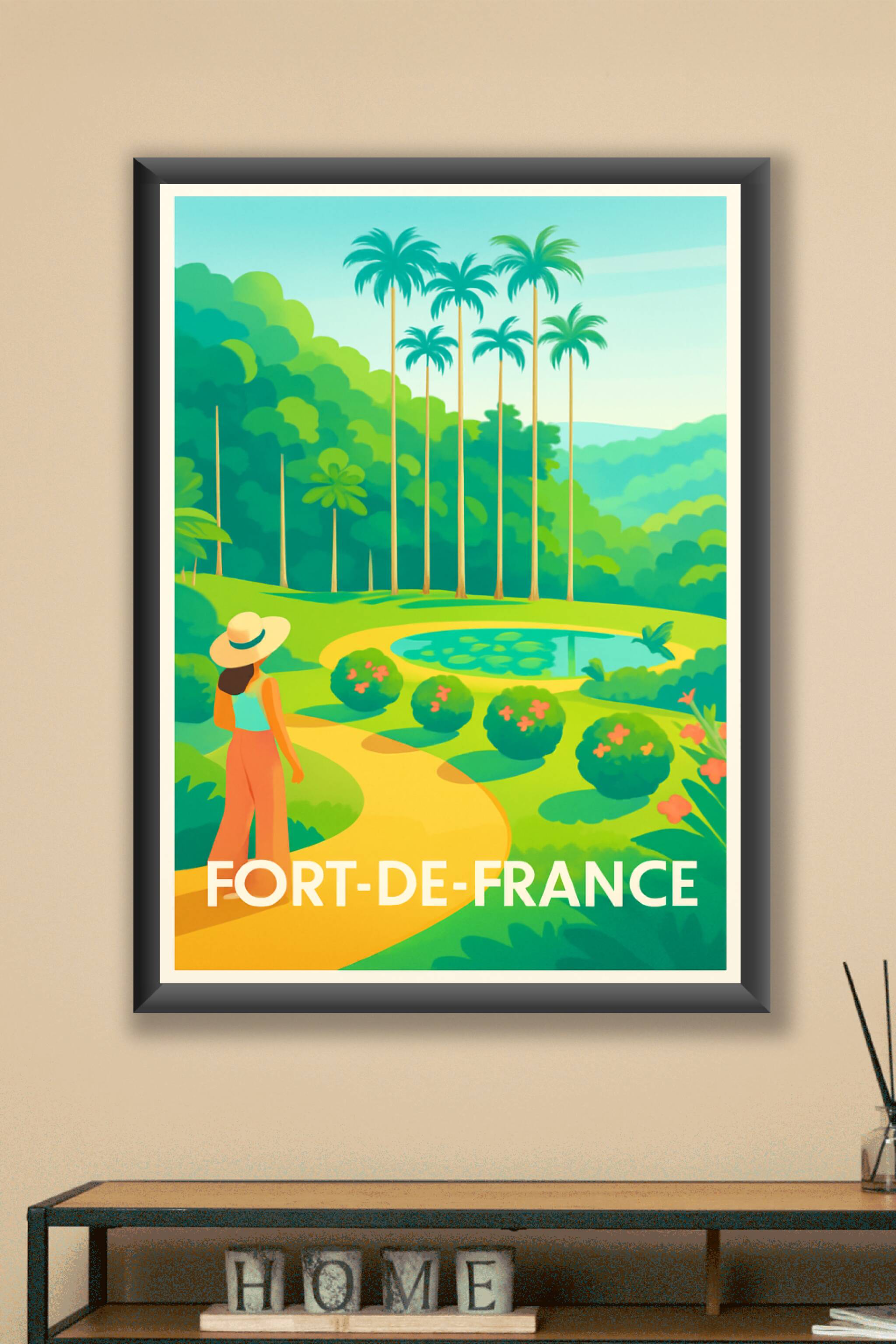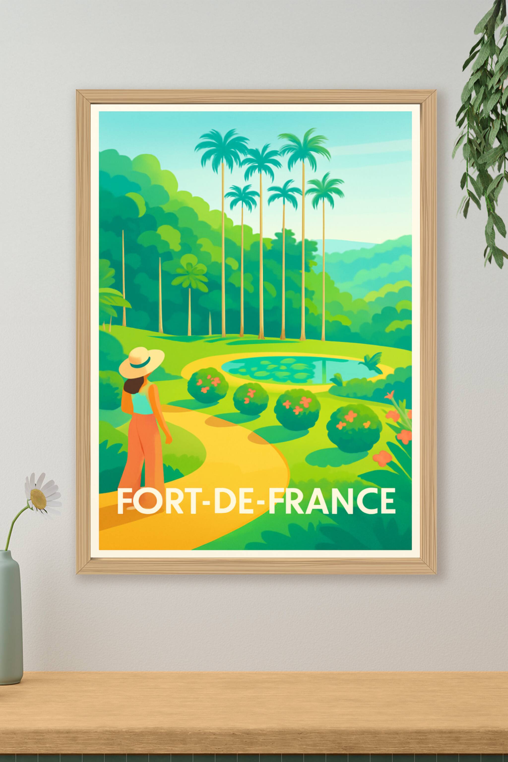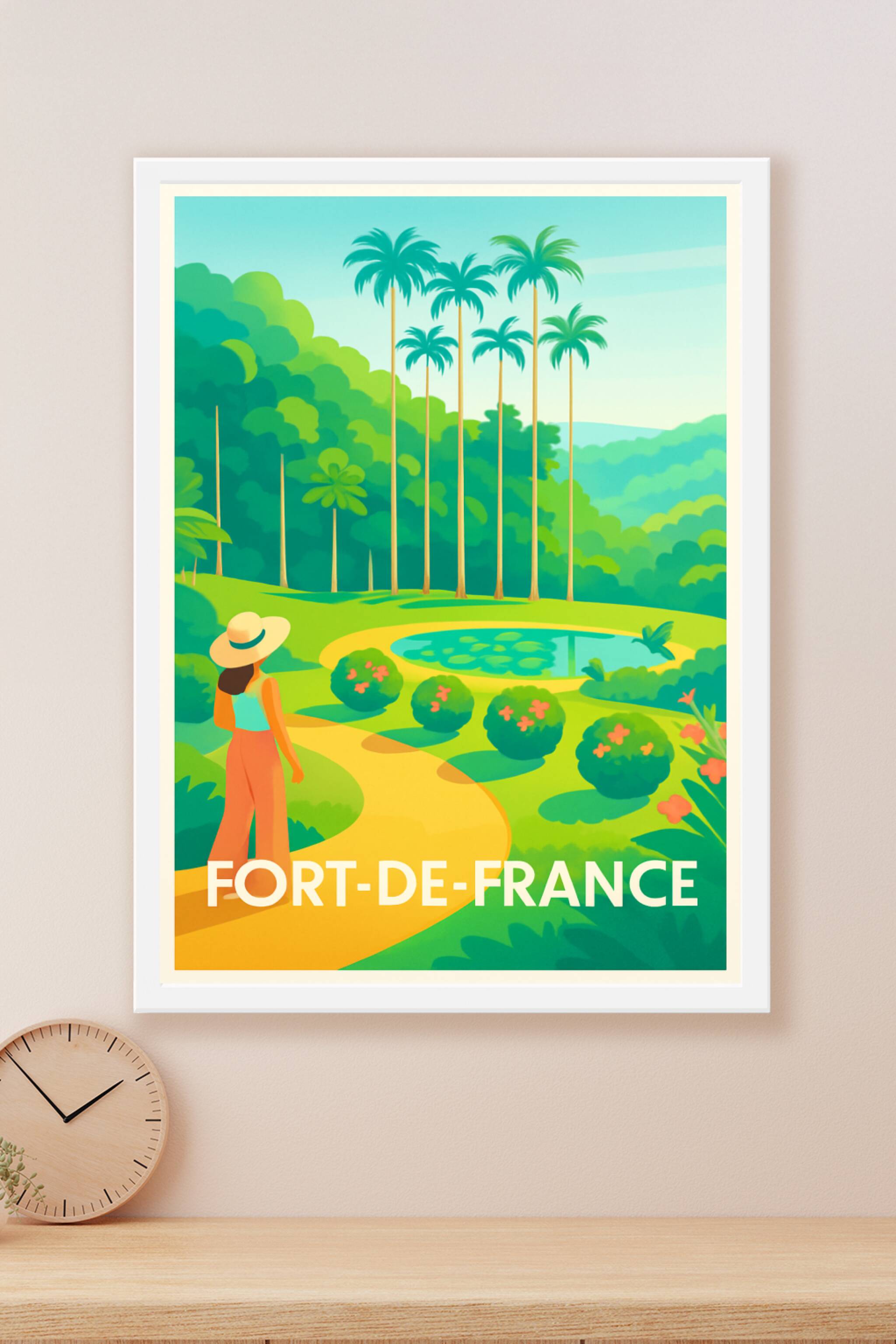 Découvrez la sérénité et la beauté luxuriante de Fort-de-France avec cette affiche vibrante aux couleurs éclatantes. Ce poster illustre un chemin p...