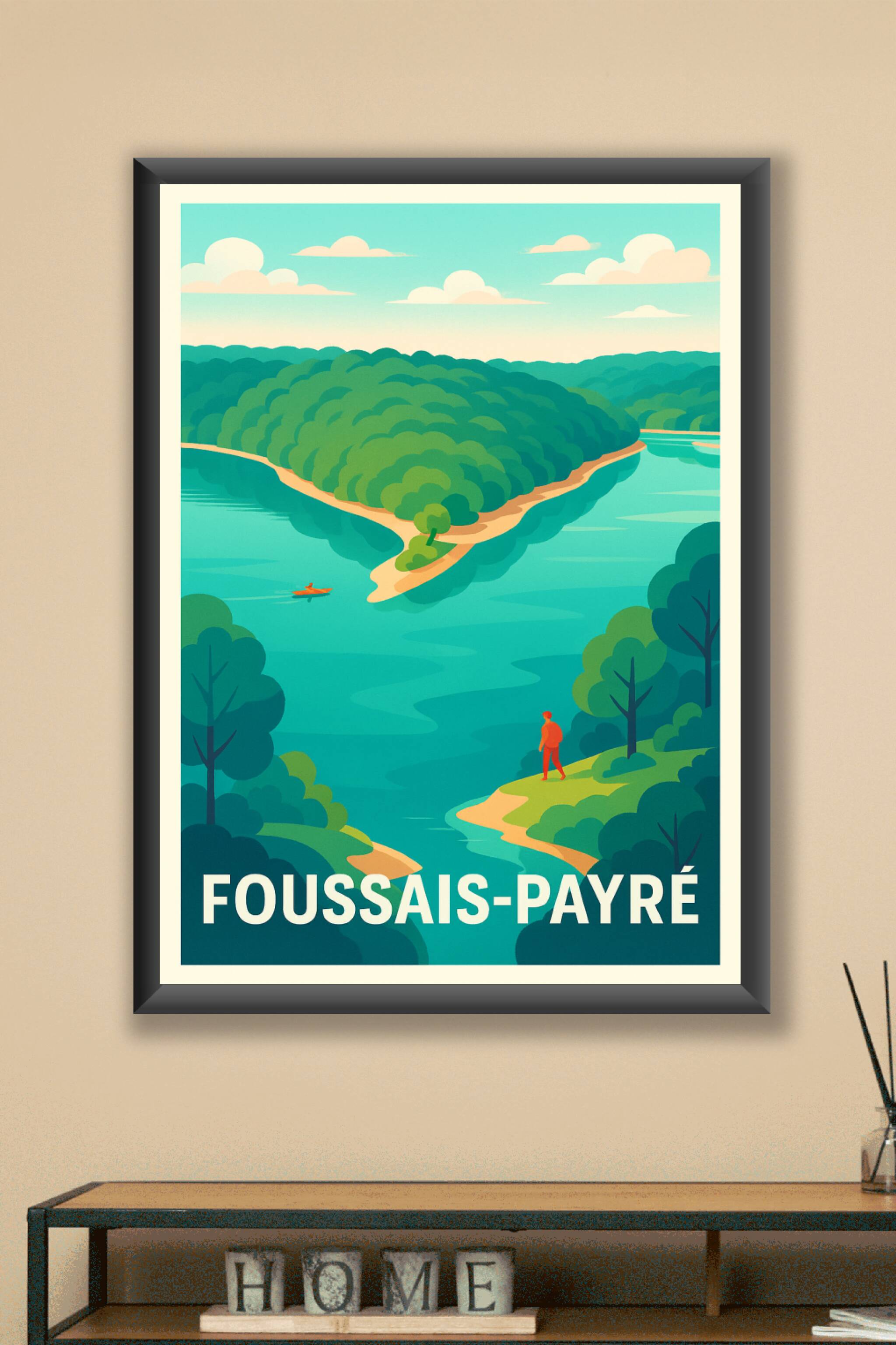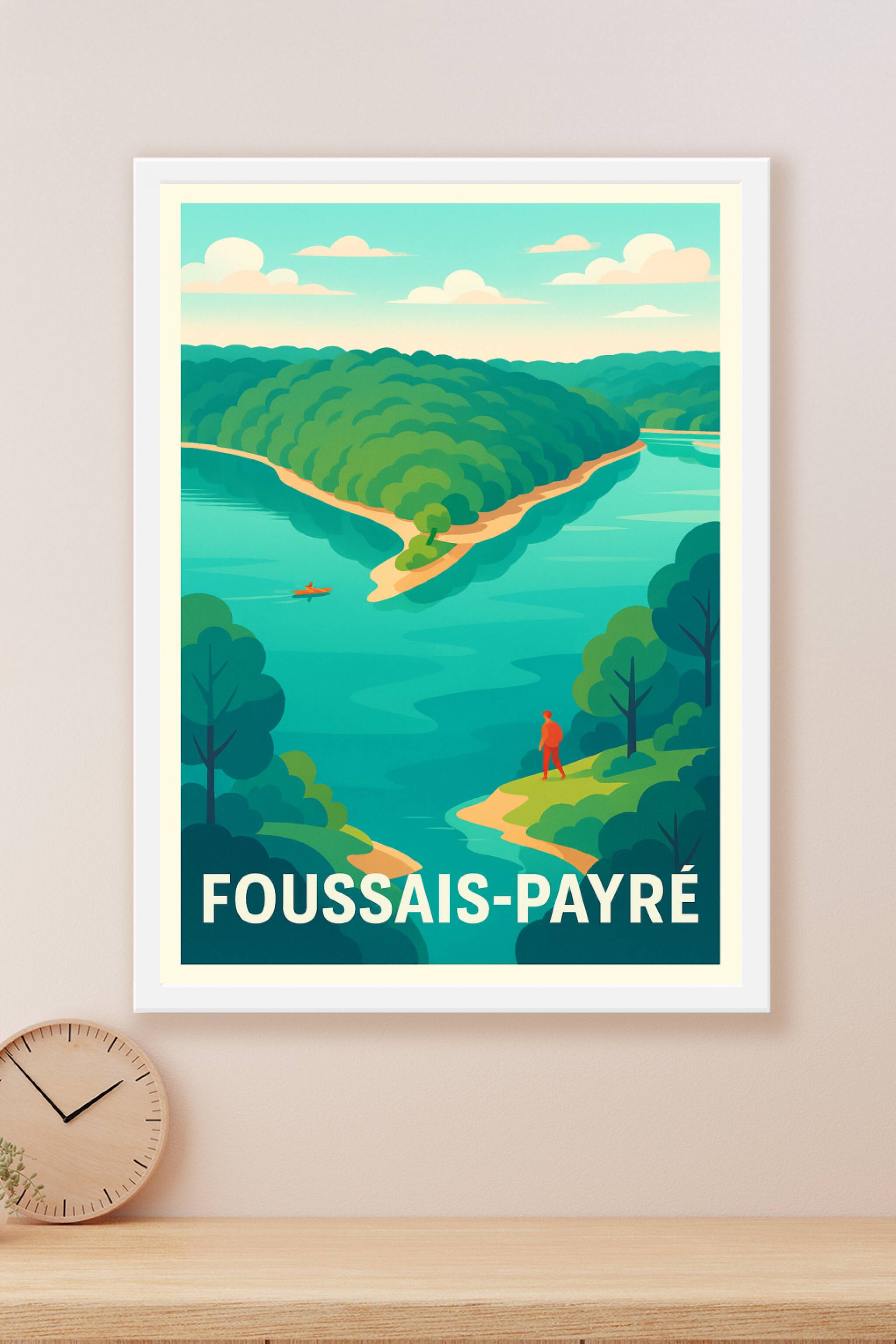 Découvrez la beauté paisible de Foussais-Payré à travers cette affiche illustrée aux teintes douces et apaisantes. Le poster met en avant ses paysa...