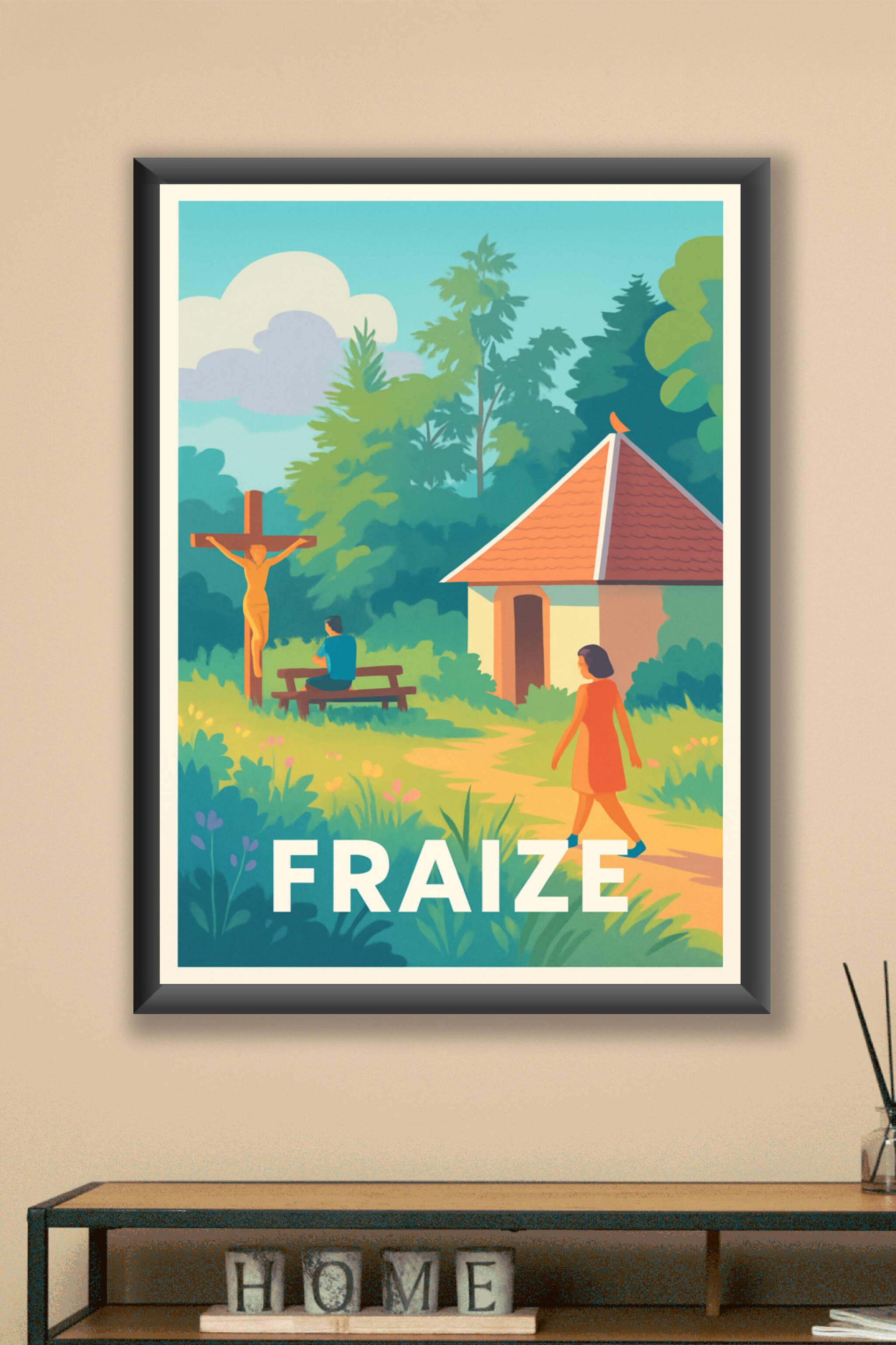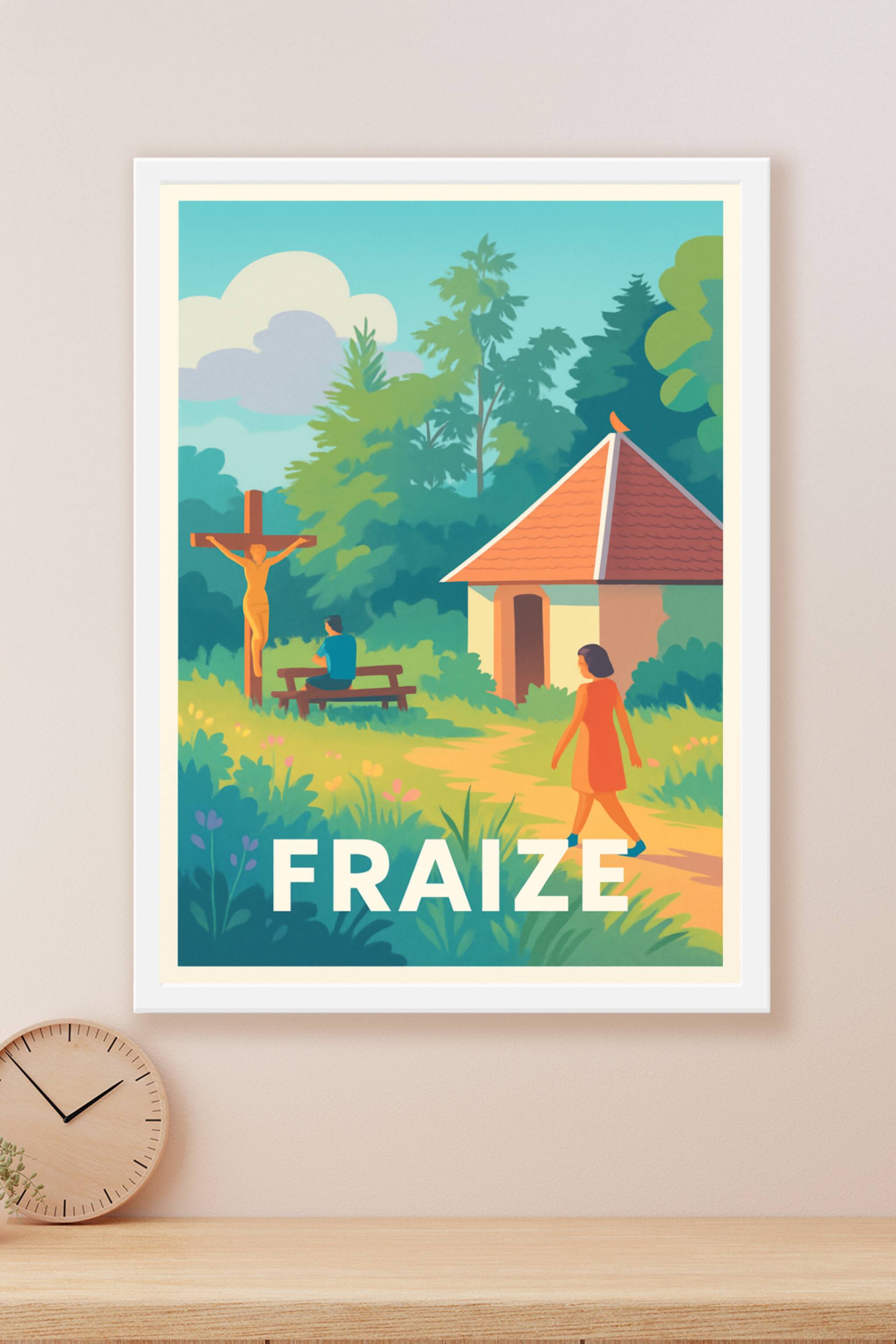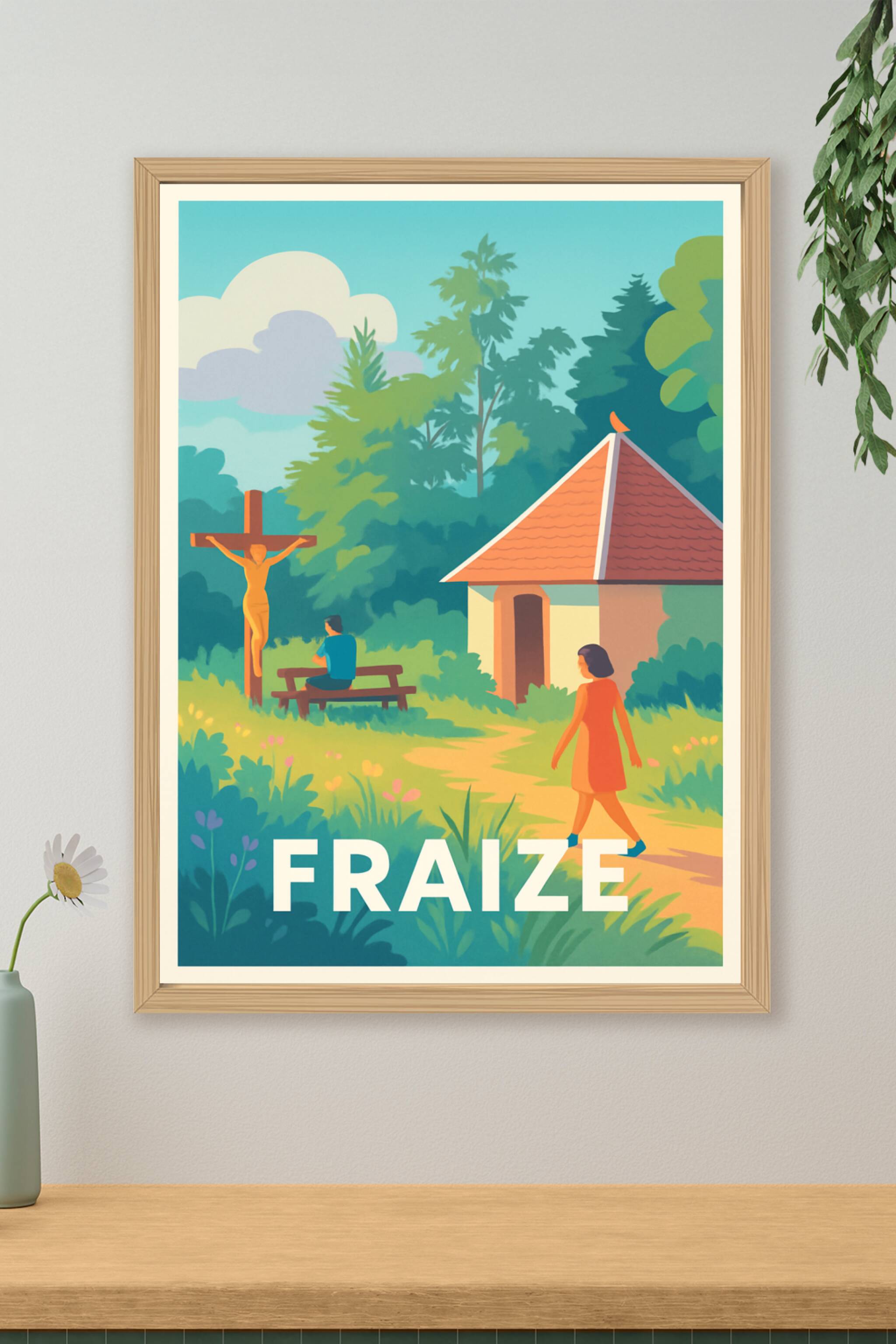 Découvrez la douceur d'un instant de tranquillité à Fraize avec cette affiche illustrée, capturant une scène bucolique où la nature rencontre la sérénité religieuse. Ce poster évoque une promenade apaisante dans un cadre verdoyant, entre un petit bâtiment typique et une représentation symbolique, idéale pour les amoureux des paysages paisibles et authentiques.Cette affiche est imprimée en tirage "Fine Art" sur papier 305g coton de haute qualité, garantissant des couleurs éclatantes et une durabilité exceptionnelle. Disponible en formats A1 à A4, avec ou sans cadre, ce poster s’adapte parfaitement à toutes vos envies de décoration intérieure.Offrez à votre intérieur une touche d'évasion avec une impression premium 100% fabriquée en France, parfaite pour embellir votre espace ou faire un cadeau unique.