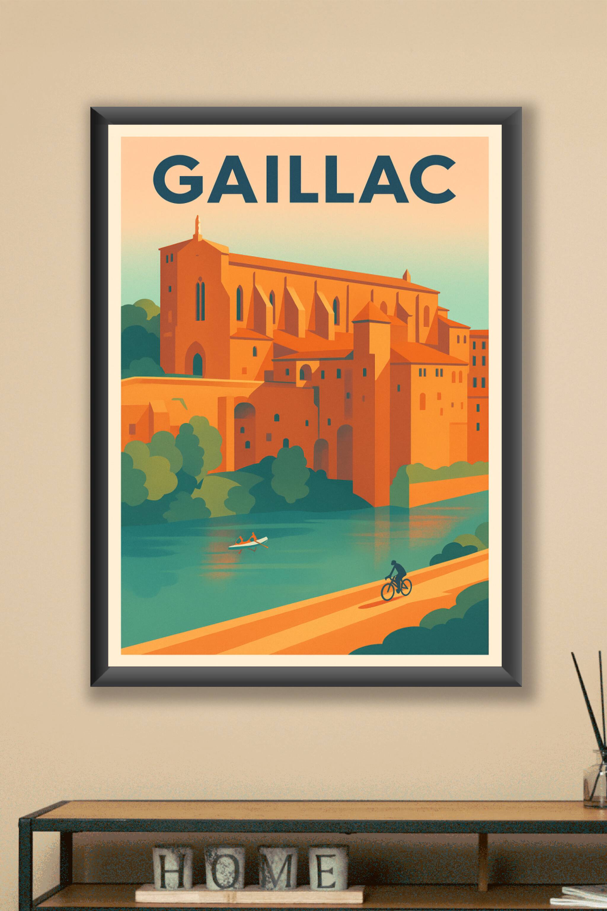 Imprégnez-vous du charme authentique de Gaillac avec cette affiche illustrée représentant ses monuments emblématiques baignés par la lumière chaleu...