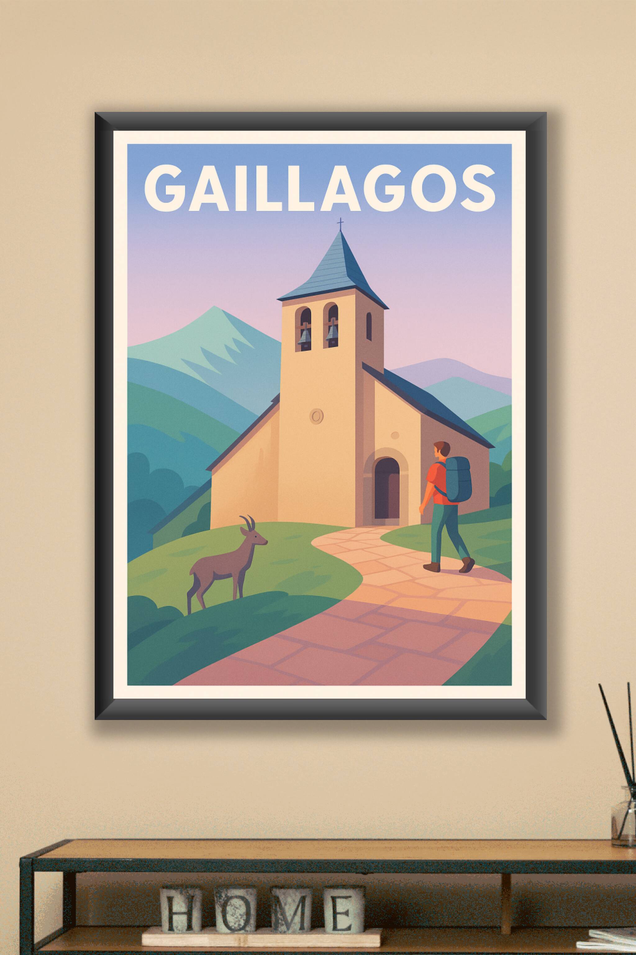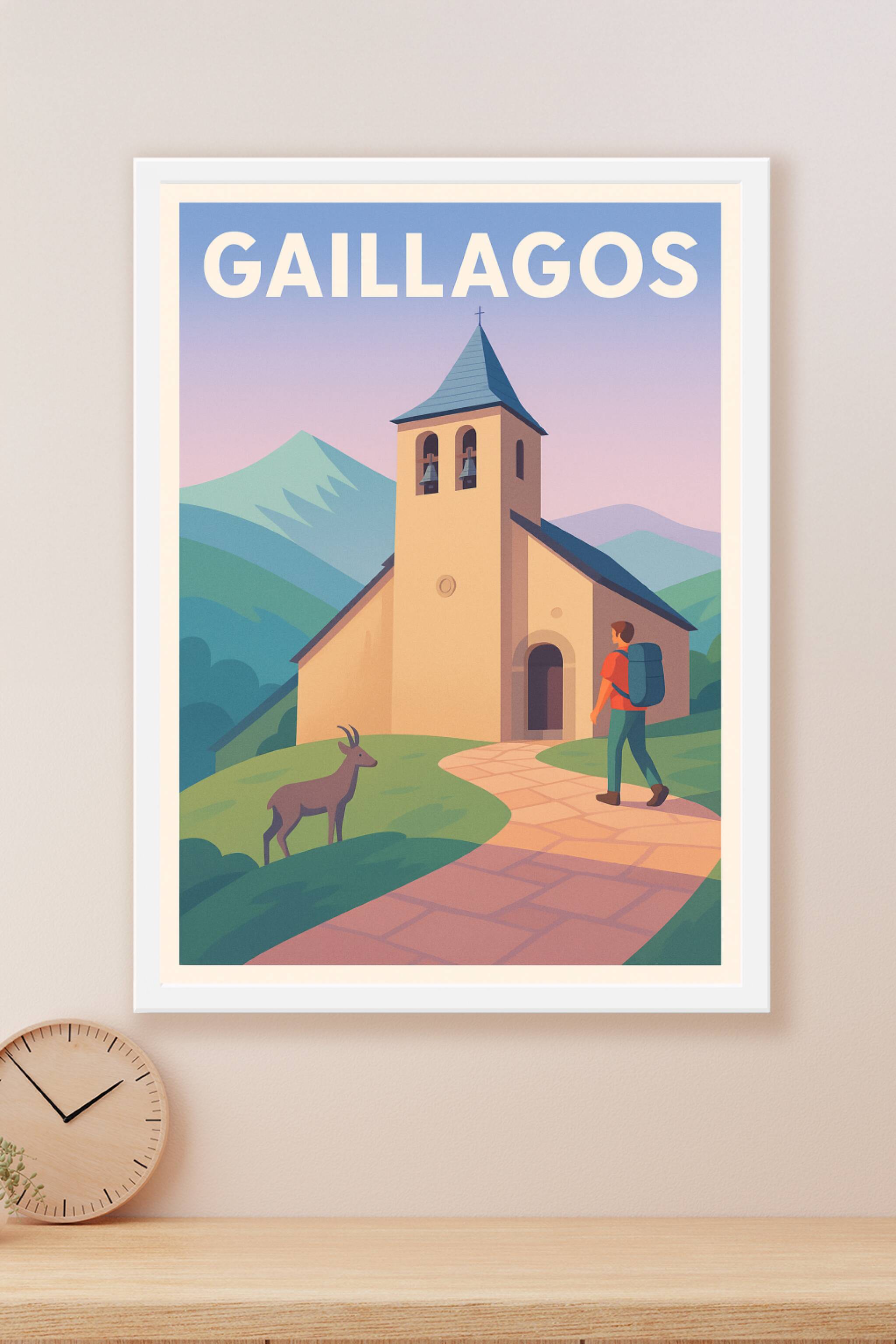 Découvrez la douceur et la sérénité des paysages pyrénéens avec cette affiche évoquant Gaillagos et son charme authentique. Ce poster met en scène une église en pierre, un marcheur solitaire et une faune locale, invitant à la découverte et à la contemplation en pleine nature. Imprimée en tirage "Fine Art" sur papier 305g coton, cette affiche garantit une qualité d'impression supérieure et des couleurs riches et durables. Disponible en formats A1 à A4, avec ou sans cadre, elle s'adapte parfaitement à votre intérieur pour une décoration originale et élégante. Offrez-vous ou offrez à vos proches un souvenir unique des Pyrénées, 100% fabrication française, pour sublimer votre espace de vie.