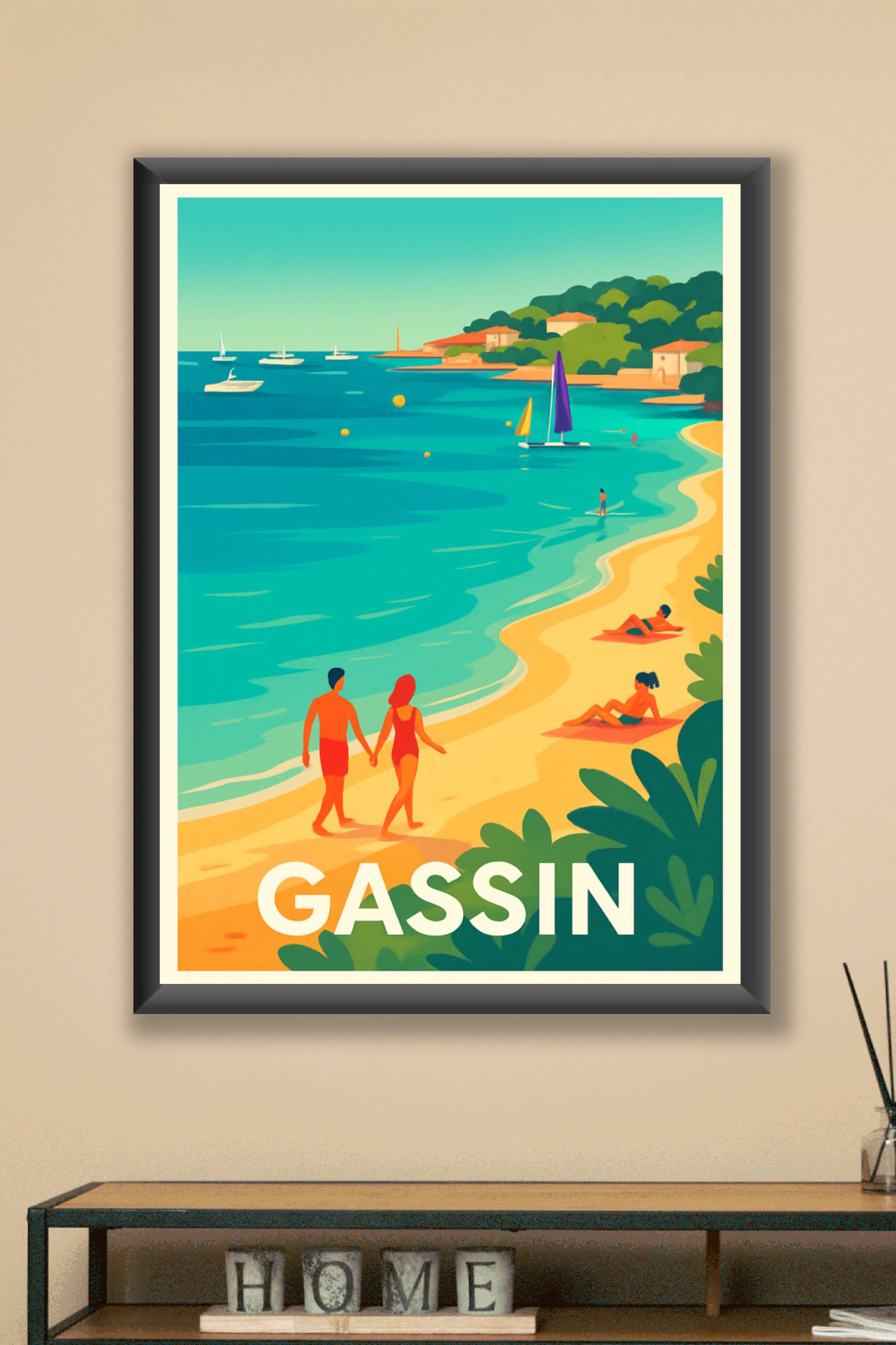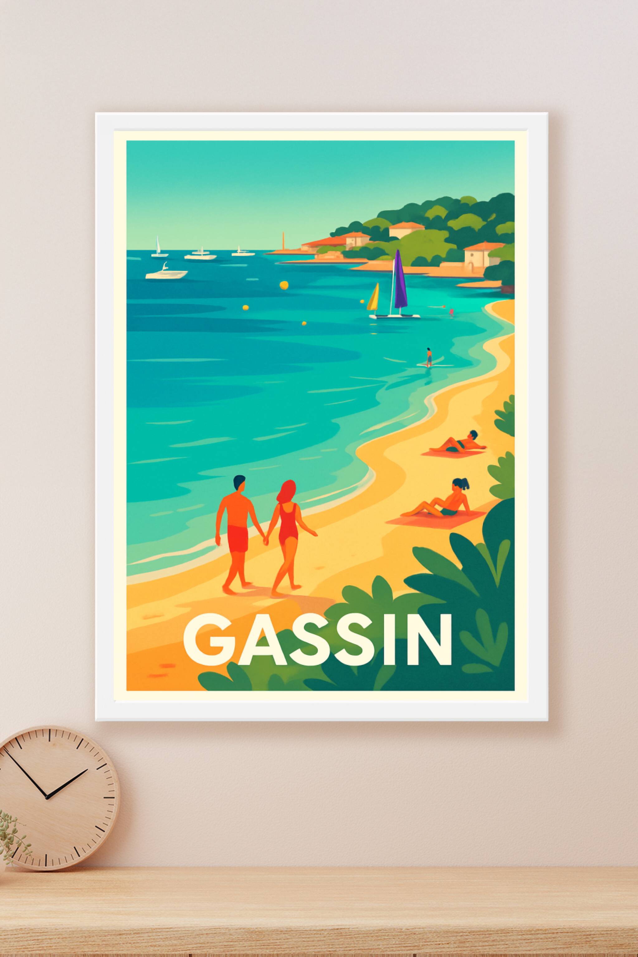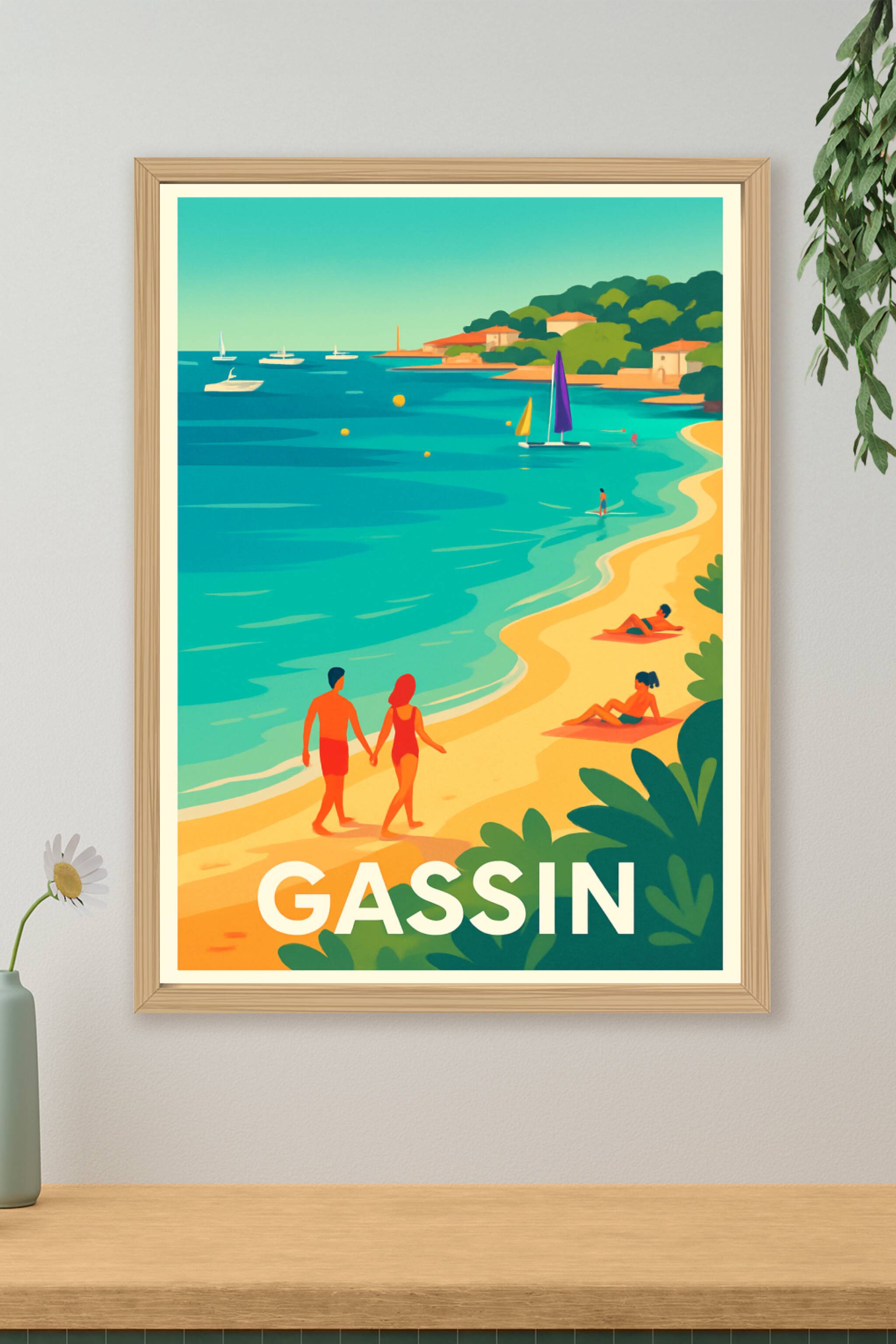 Offrez-vous une balade estivale au cœur de la charmante commune de Gassin avec cette affiche lumineuse qui capture l'essence d'une journée parfaite...