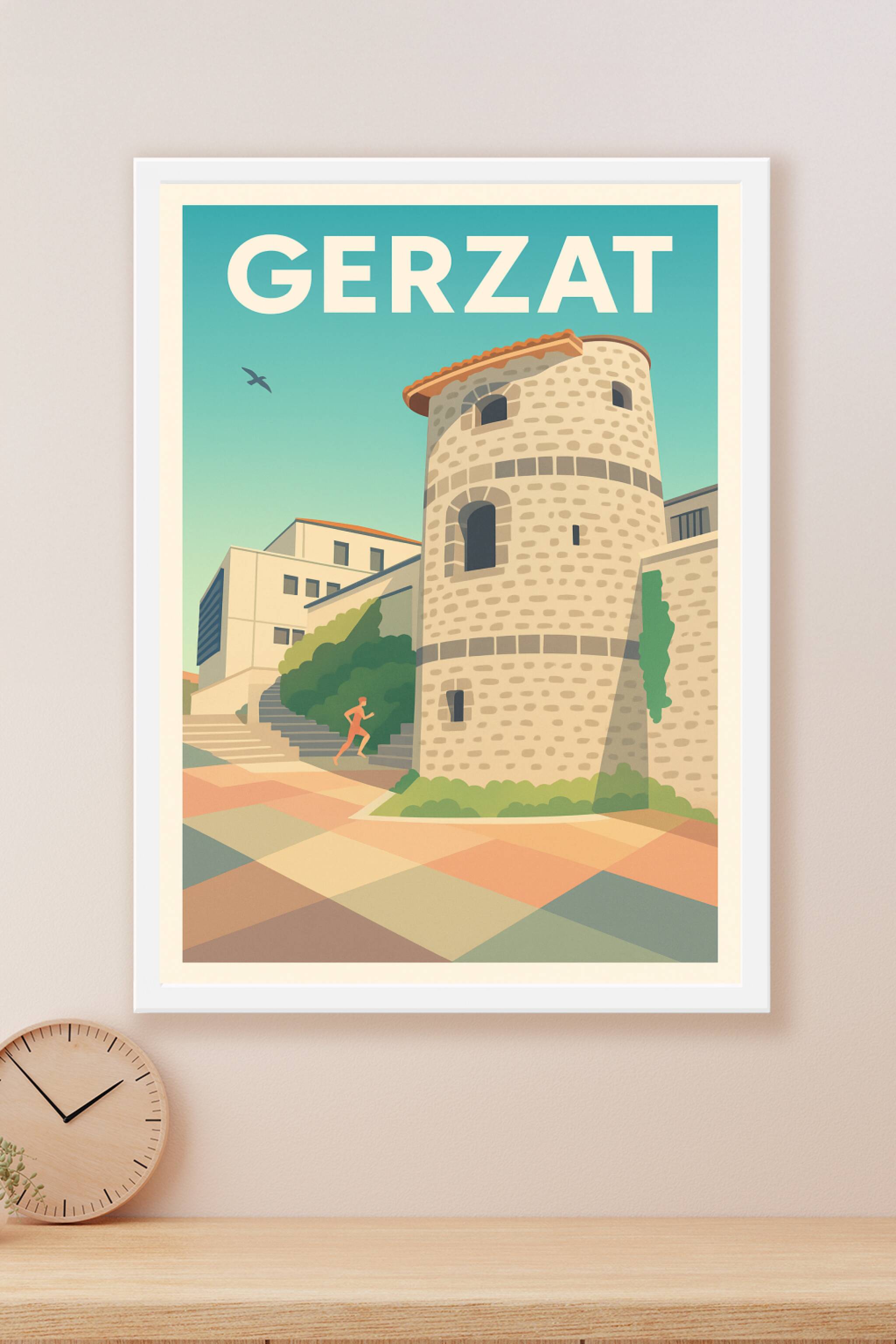 Découvrez l'élégance et le charme de Gerzat avec cette affiche au design épuré mettant en valeur son patrimoine architectural et son ambiance serei...