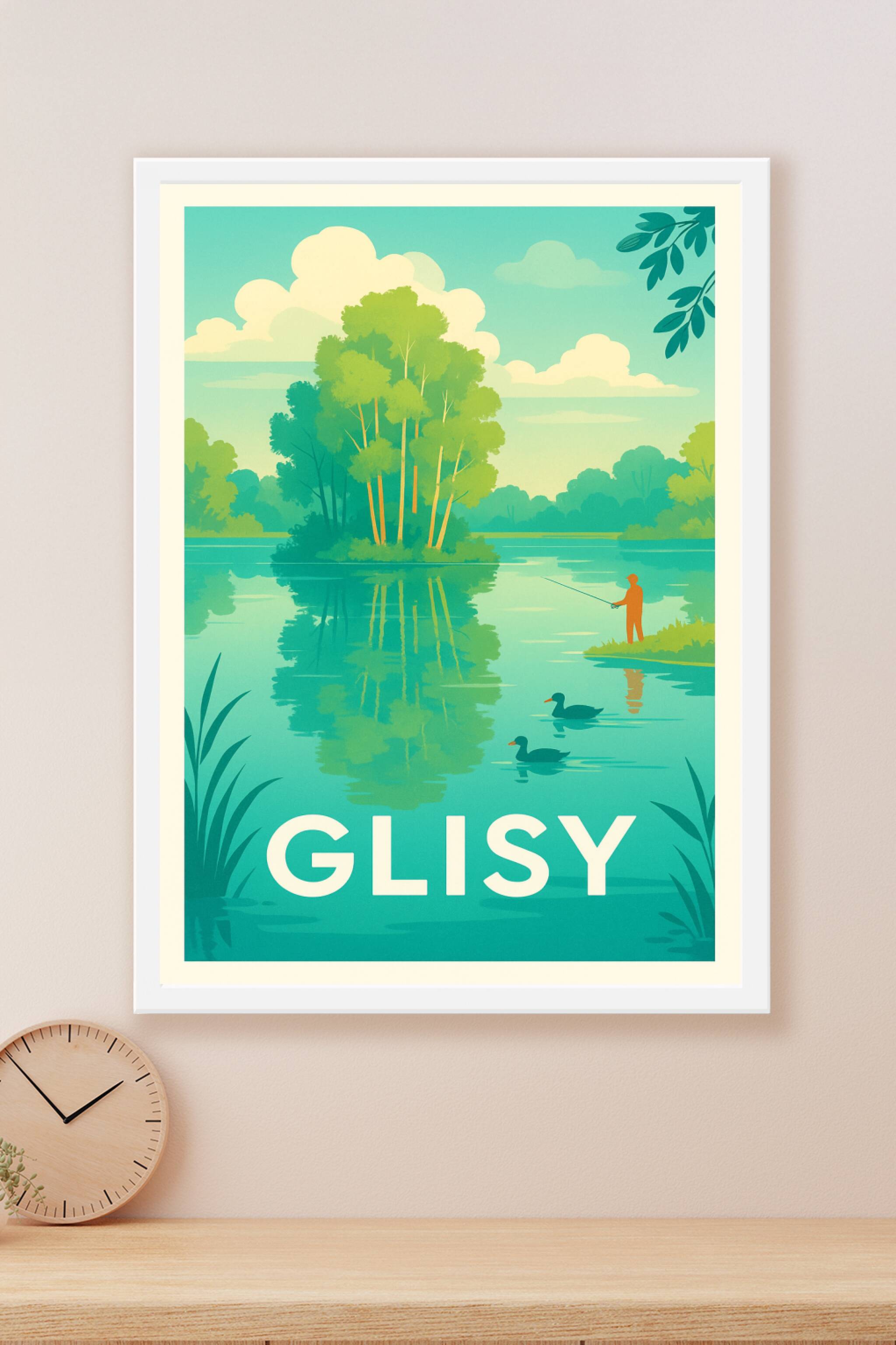 Découvrez la sérénité naturelle de Glisy à travers cette affiche illustrée dans des tons doux et apaisants. Le poster met en scène un paysage calme...