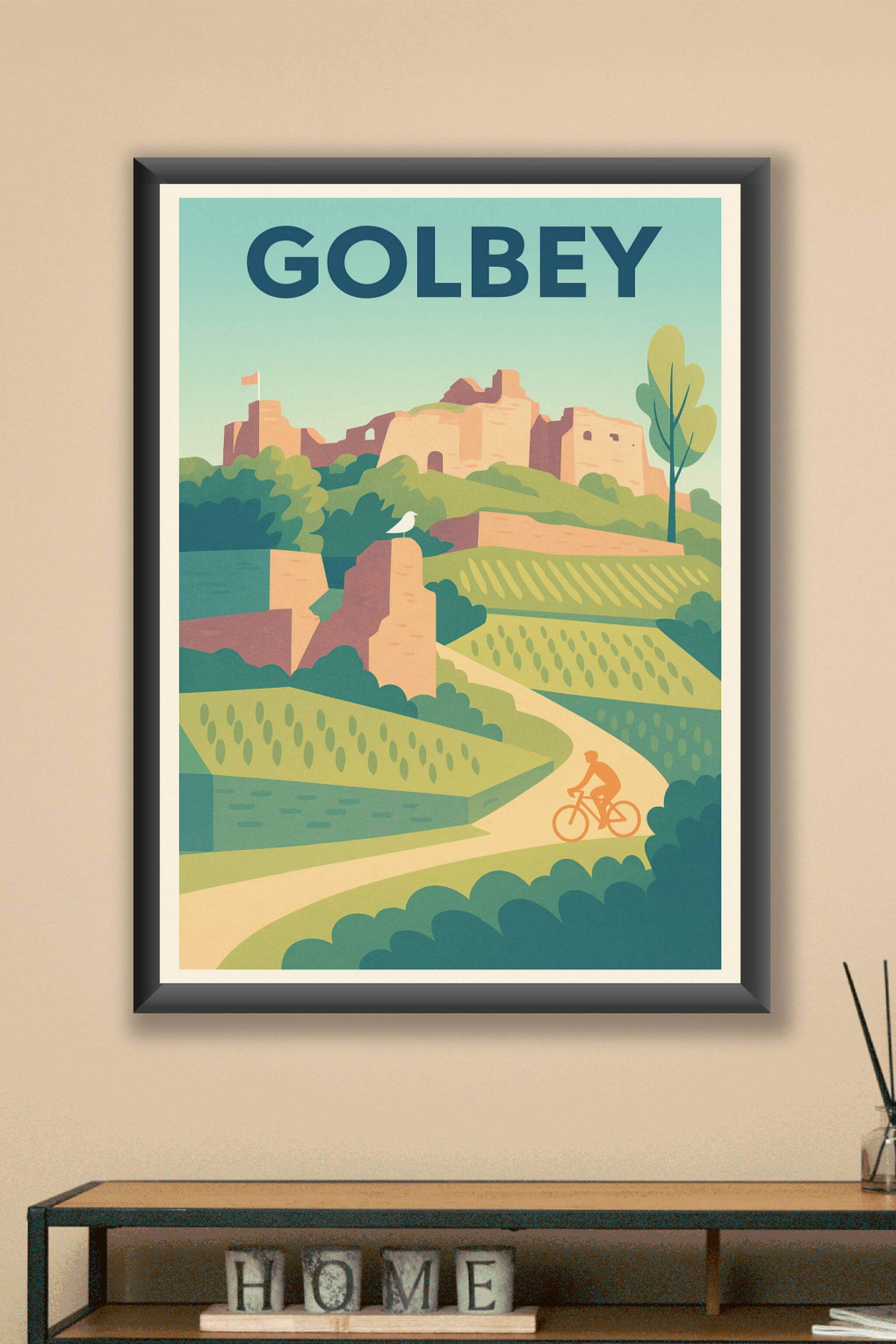 Découvrez le charme paisible de Golbey à travers cette affiche vintage illustrée, mettant en valeur ses paysages verdoyants et ses ruines historiques. Ce poster au style rétro capture l’essence d’une balade à vélo au cœur de la nature et du patrimoine local.Cette affiche est imprimée en tirage "Fine Art" sur un papier qualité 305g à base de coton, garantissant une restitution des couleurs éclatantes et une durabilité remarquable. Disponible en formats allant de A1 à A4, avec ou sans cadre, ce poster s’adapte parfaitement à votre décoration intérieure. Profitez d’une impression premium 100% fabriquée en France pour sublimer votre espace ou offrir un cadeau unique à un amoureux de Golbey.
