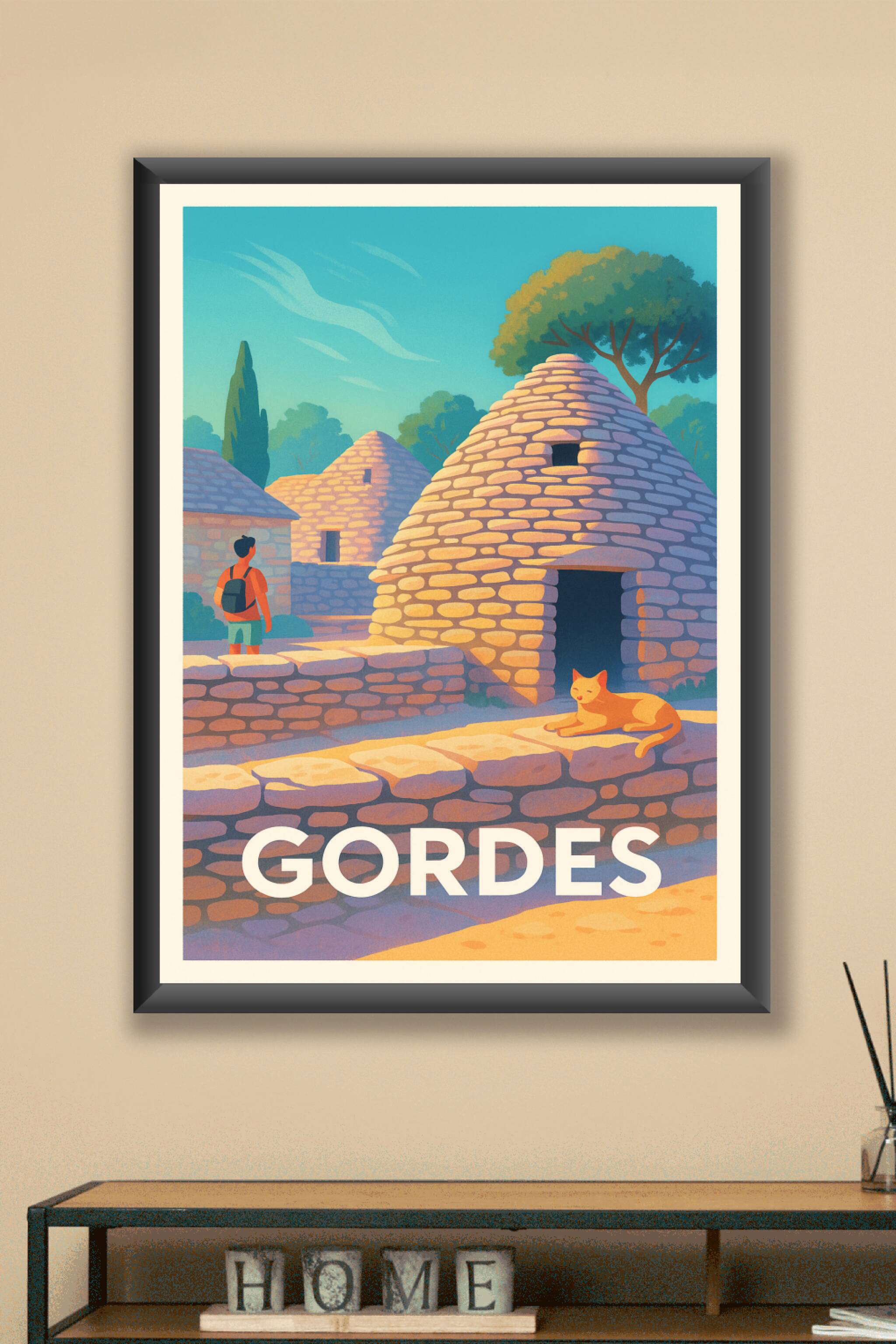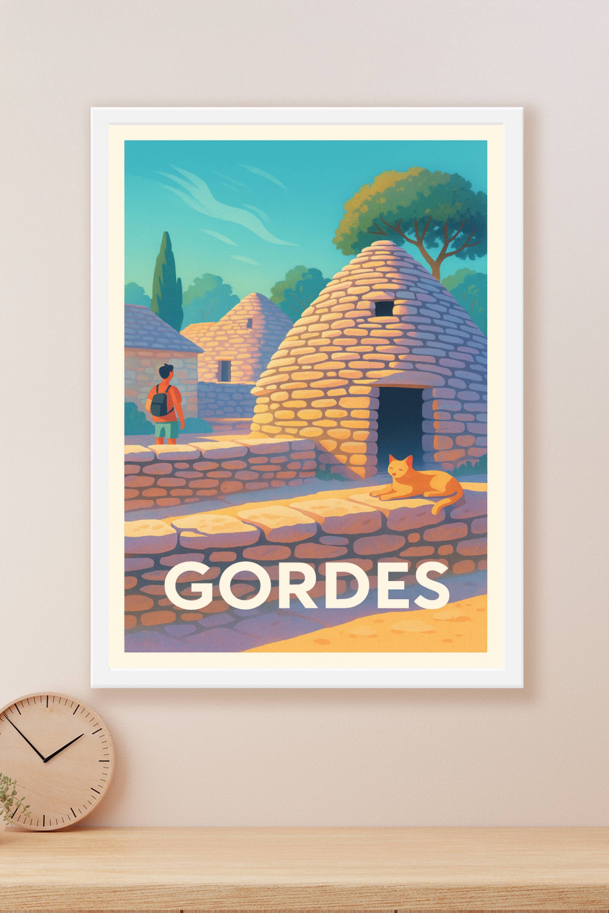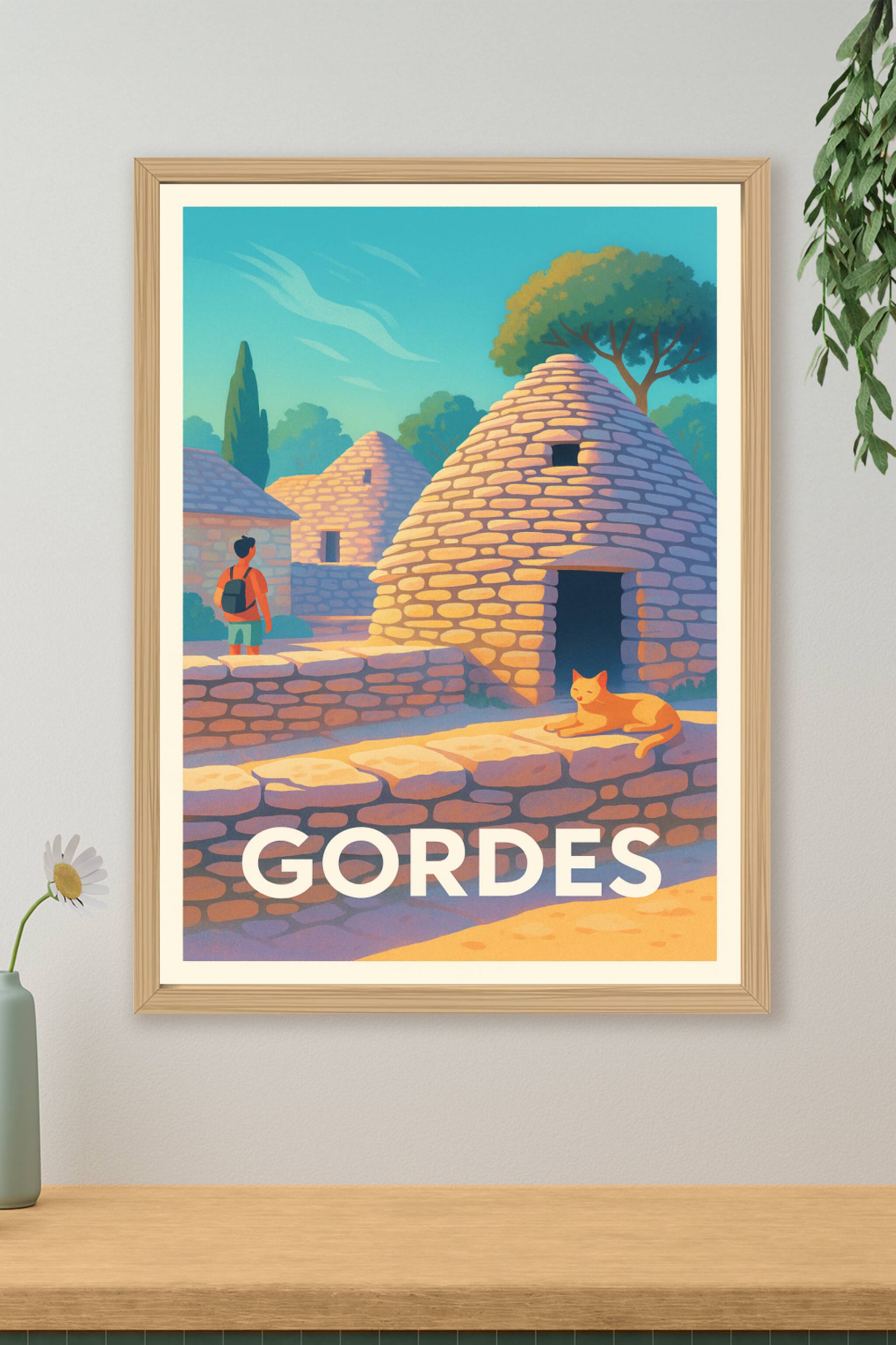 Découvrez l'authenticité et la sérénité de Gordes, un village emblématique du Vaucluse, avec cette affiche illustrée mettant en scène ses célèbres ...