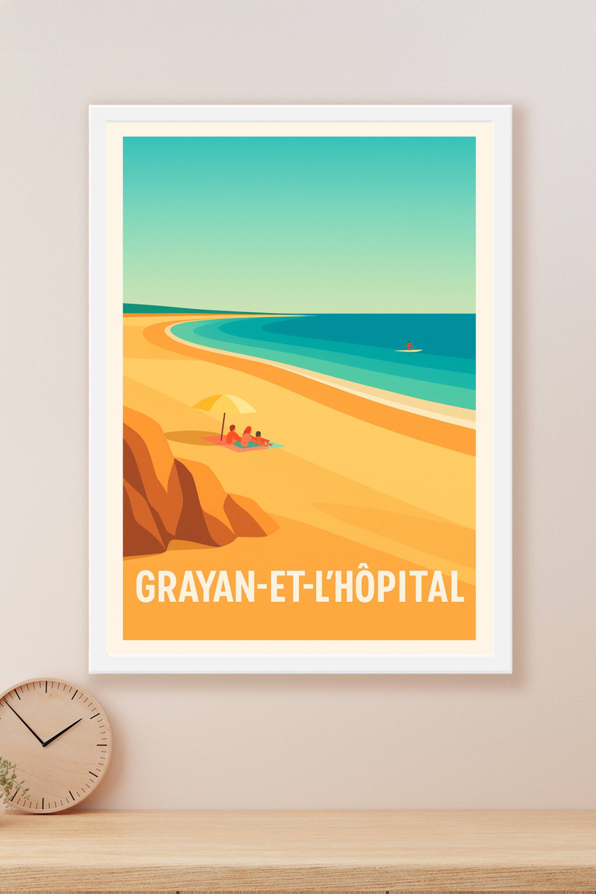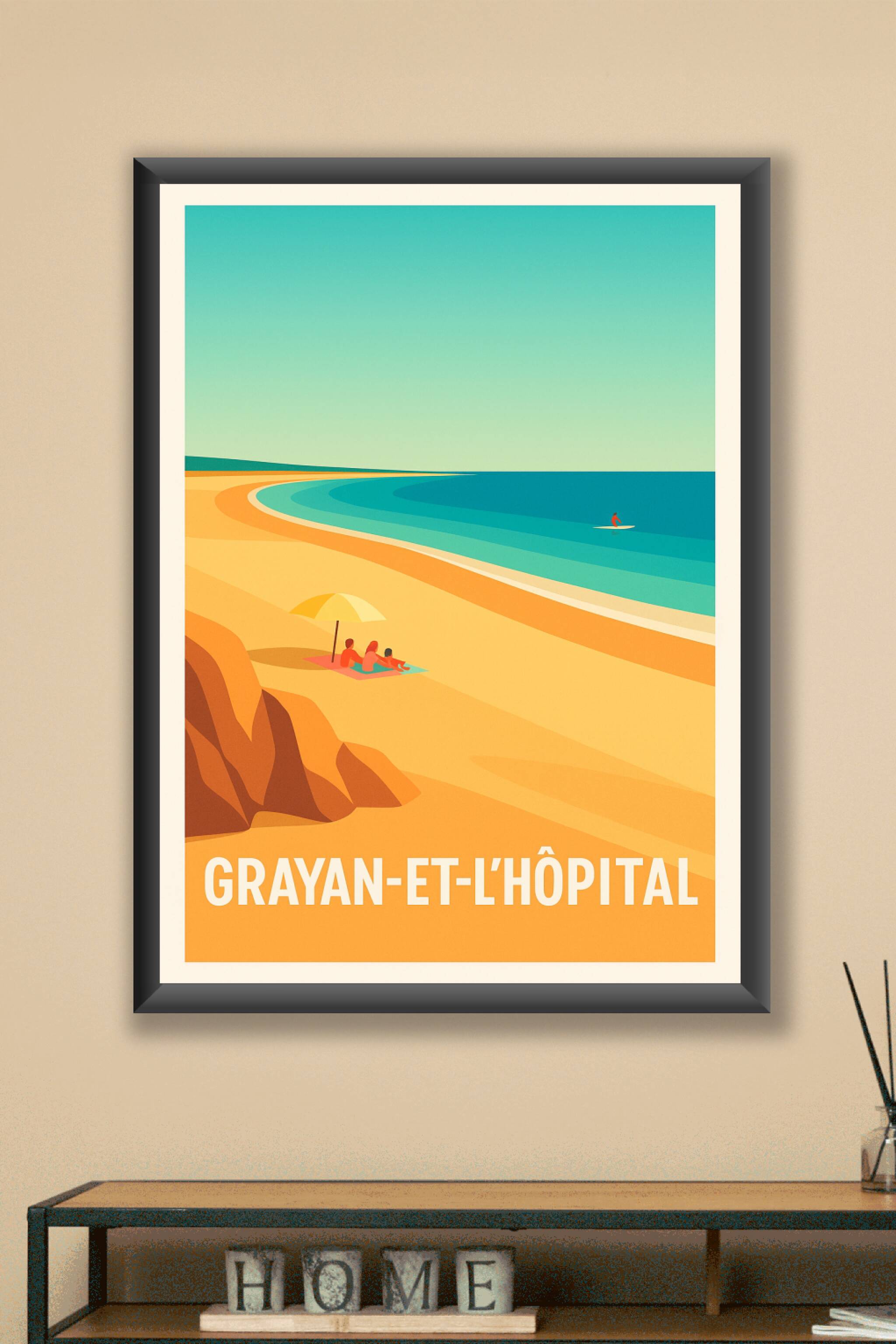 Découvrez la douceur et la quiétude de Grayan-et-l'Hôpital avec cette affiche évoquant une plage immaculée aux couleurs chaudes et apaisantes. Une ...