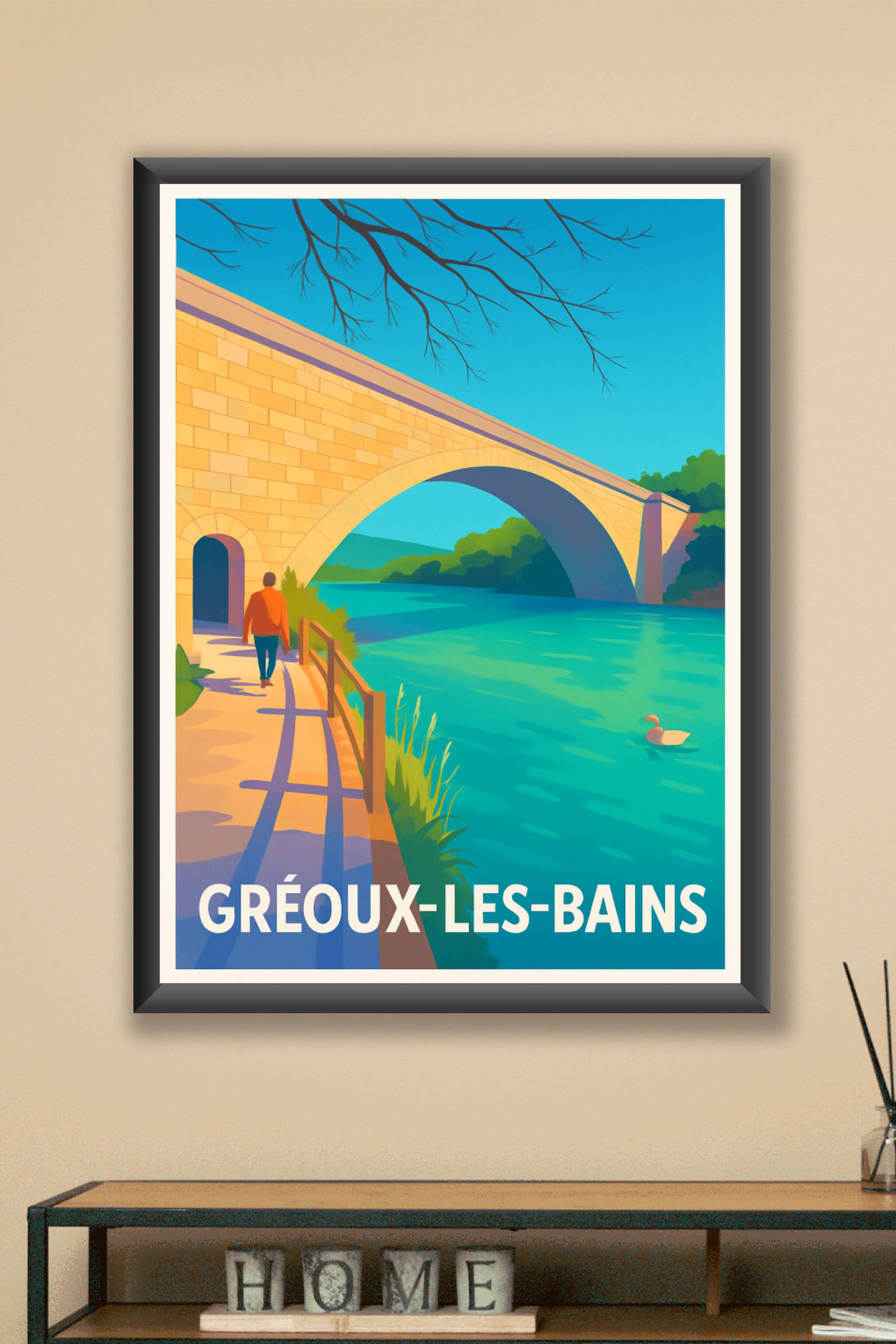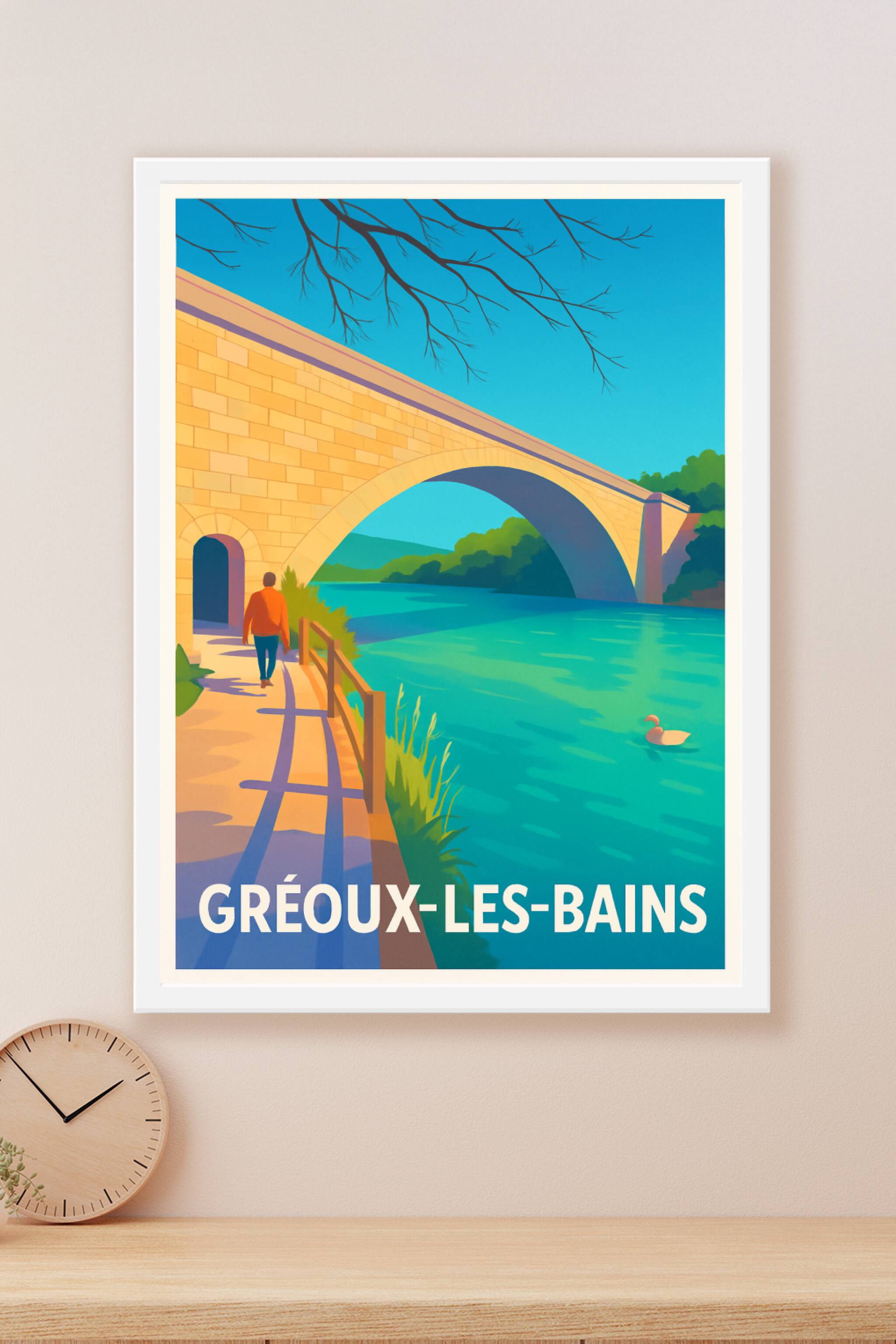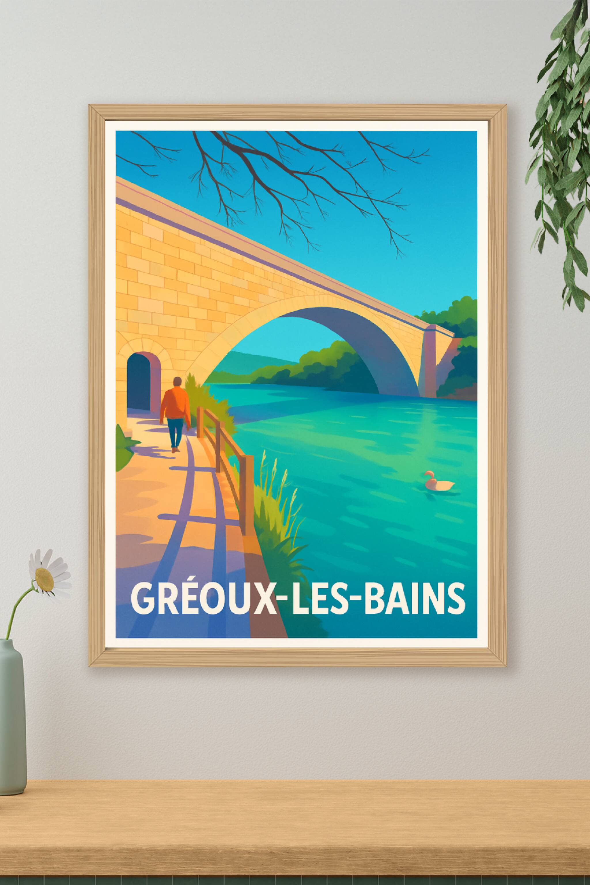 Offrez-vous une balade sereine le long de la rivière à Gréoux-les-Bains avec cette affiche aux couleurs éclatantes et à l’atmosphère apaisante. Ce ...
