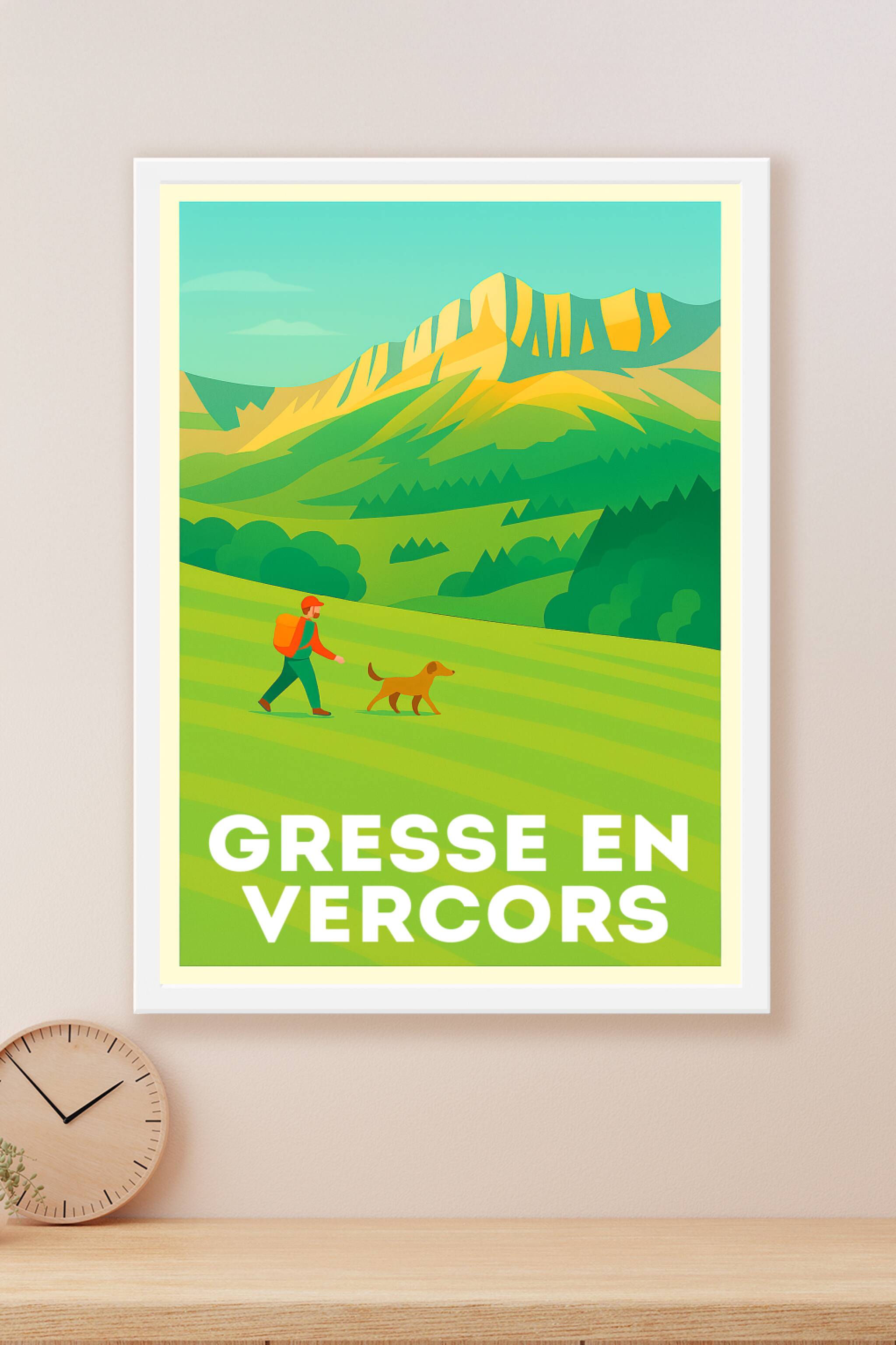 Découvrez l’univers paisible et authentique de Gresse en Vercors avec cette superbe affiche illustrée aux couleurs douces et naturelles. Ce poster ...
