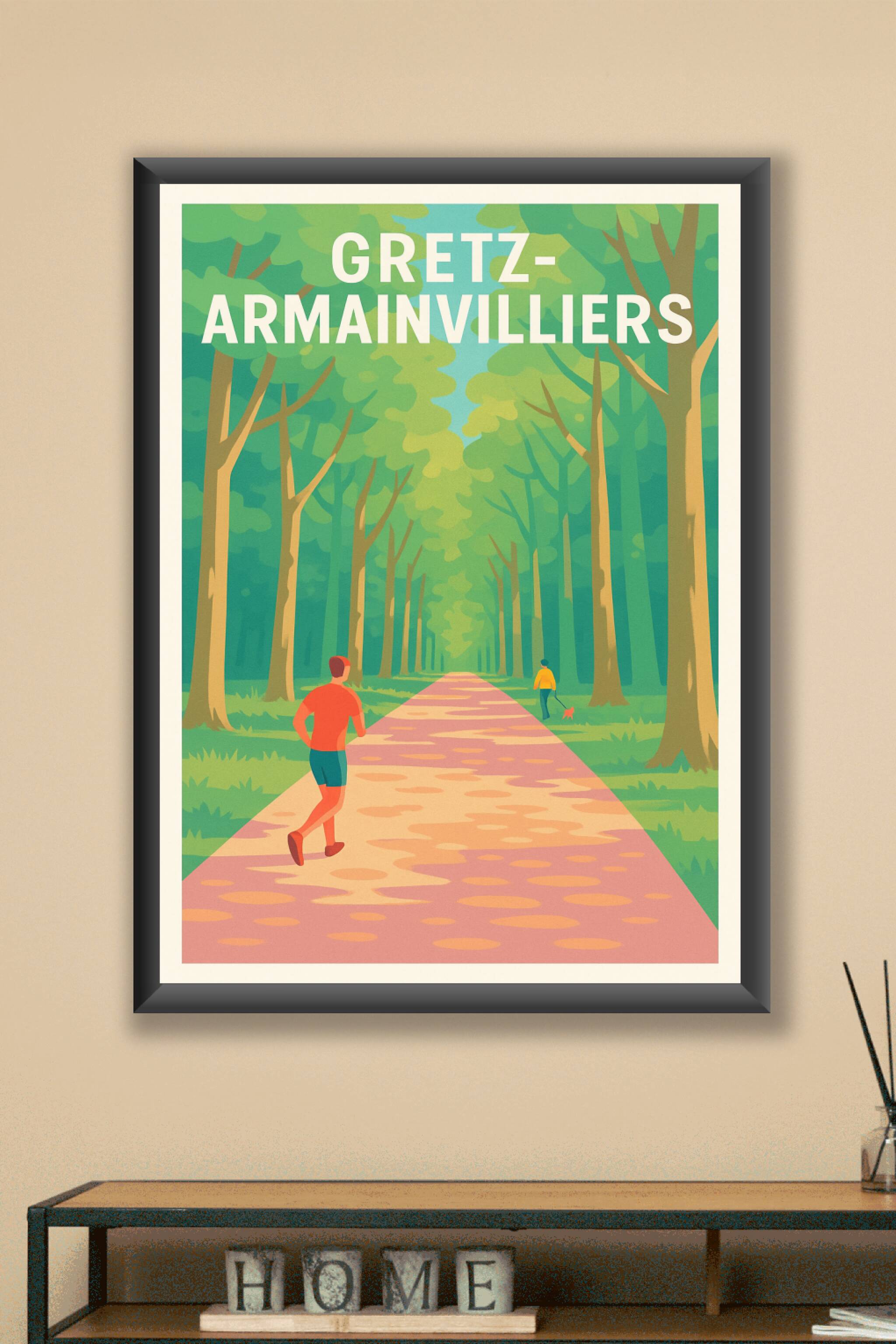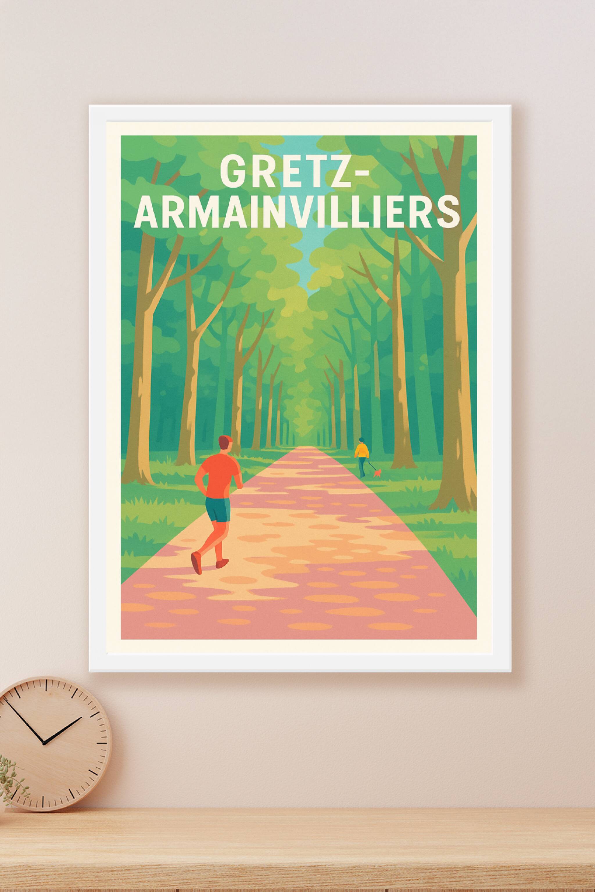 Apportez une bouffée d'air frais et de sérénité à votre décoration avec cette affiche illustrée représentant un chemin forestier à Gretz-Armainvilliers. Cette scène paisible où un joggeur profite d'une promenade au milieu des arbres évoque la douceur de vivre en pleine nature. Disponible en tirage "Fine Art" sur papier 305g coton pour une qualité d'impression remarquable, ce poster est proposé en plusieurs formats, du A1 au A4, avec ou sans cadre. Offrez-vous ou offrez à vos proches ce poster d'exception, parfait pour habiller vos murs avec une touche de nature et d'élégance.