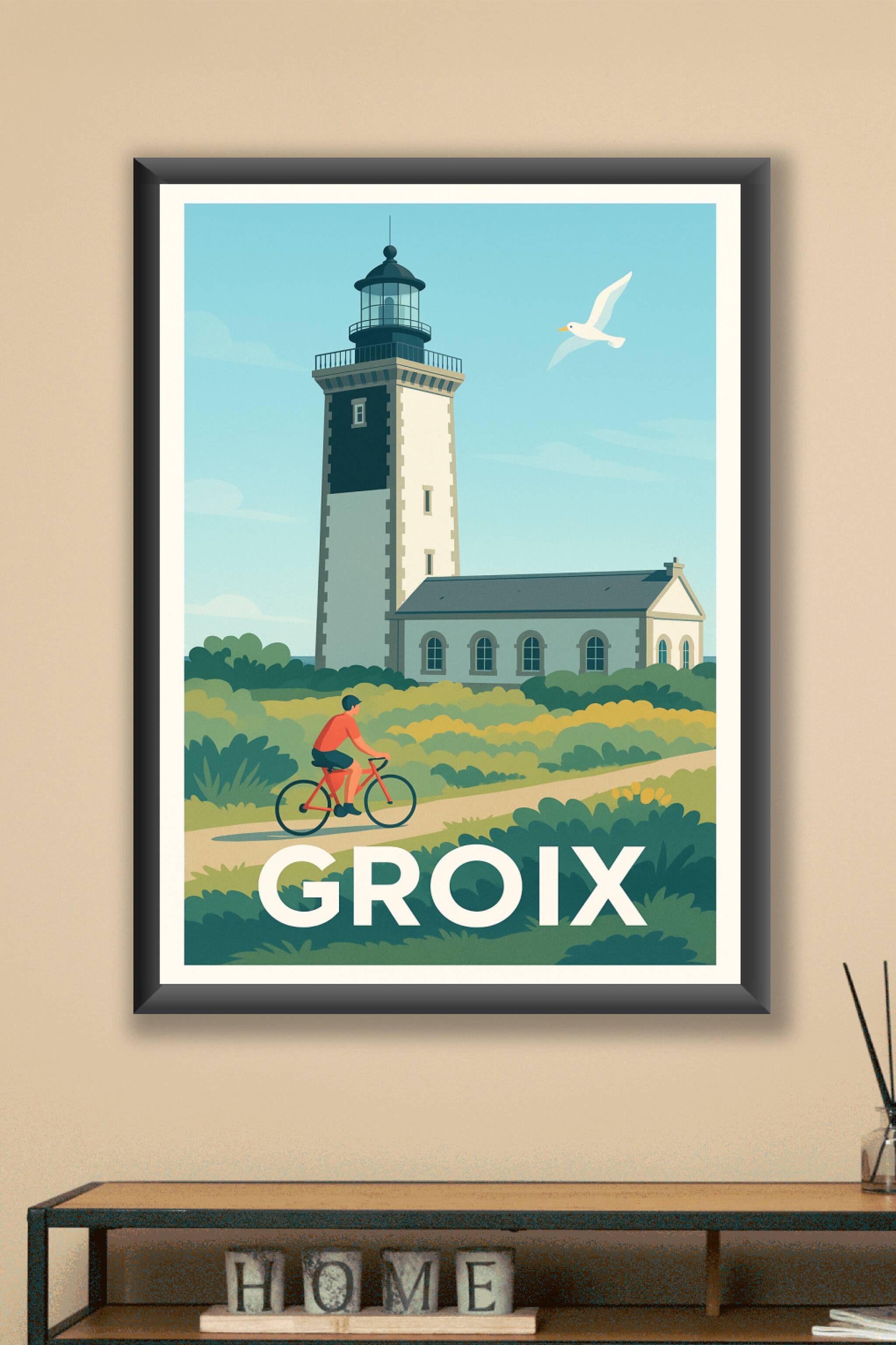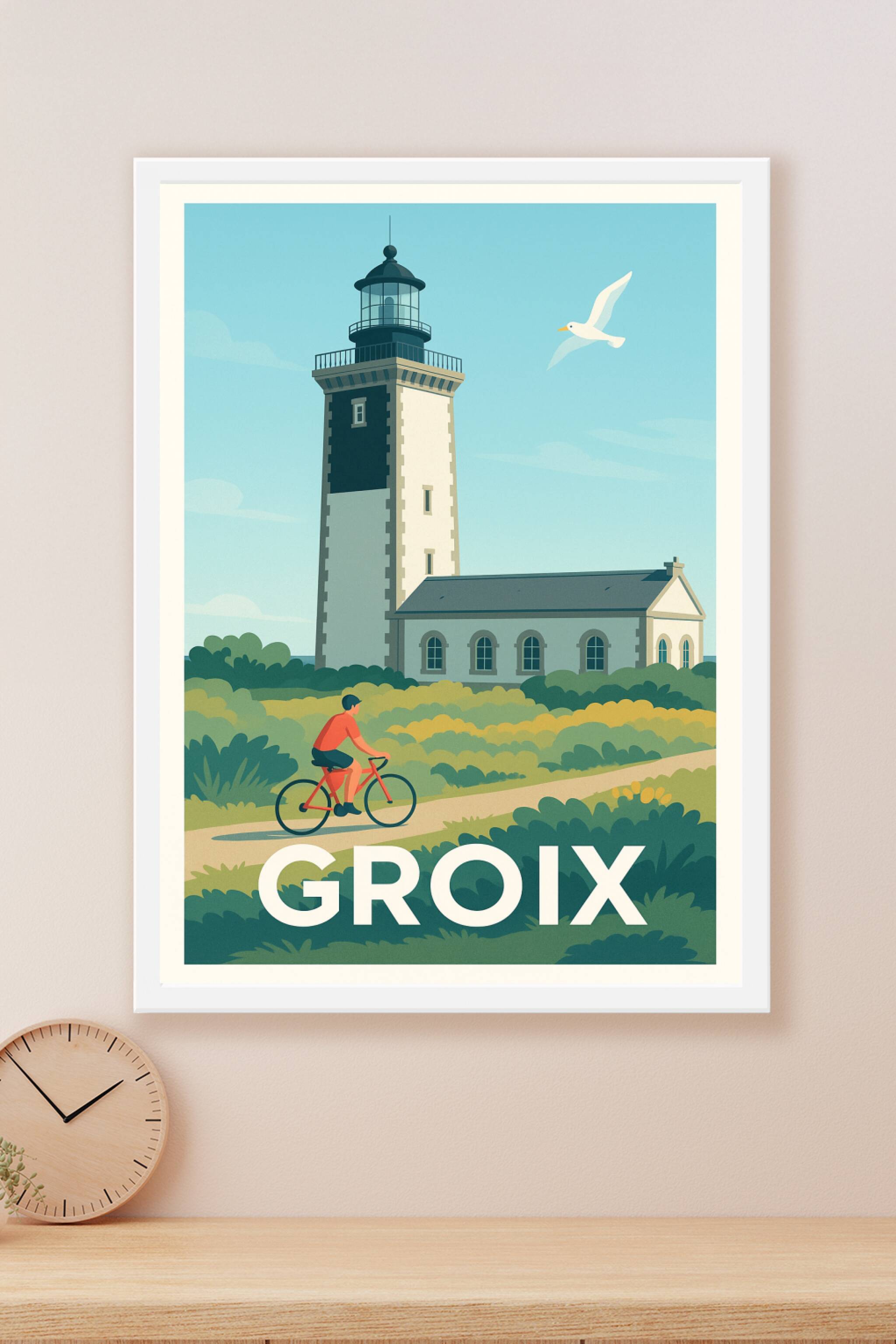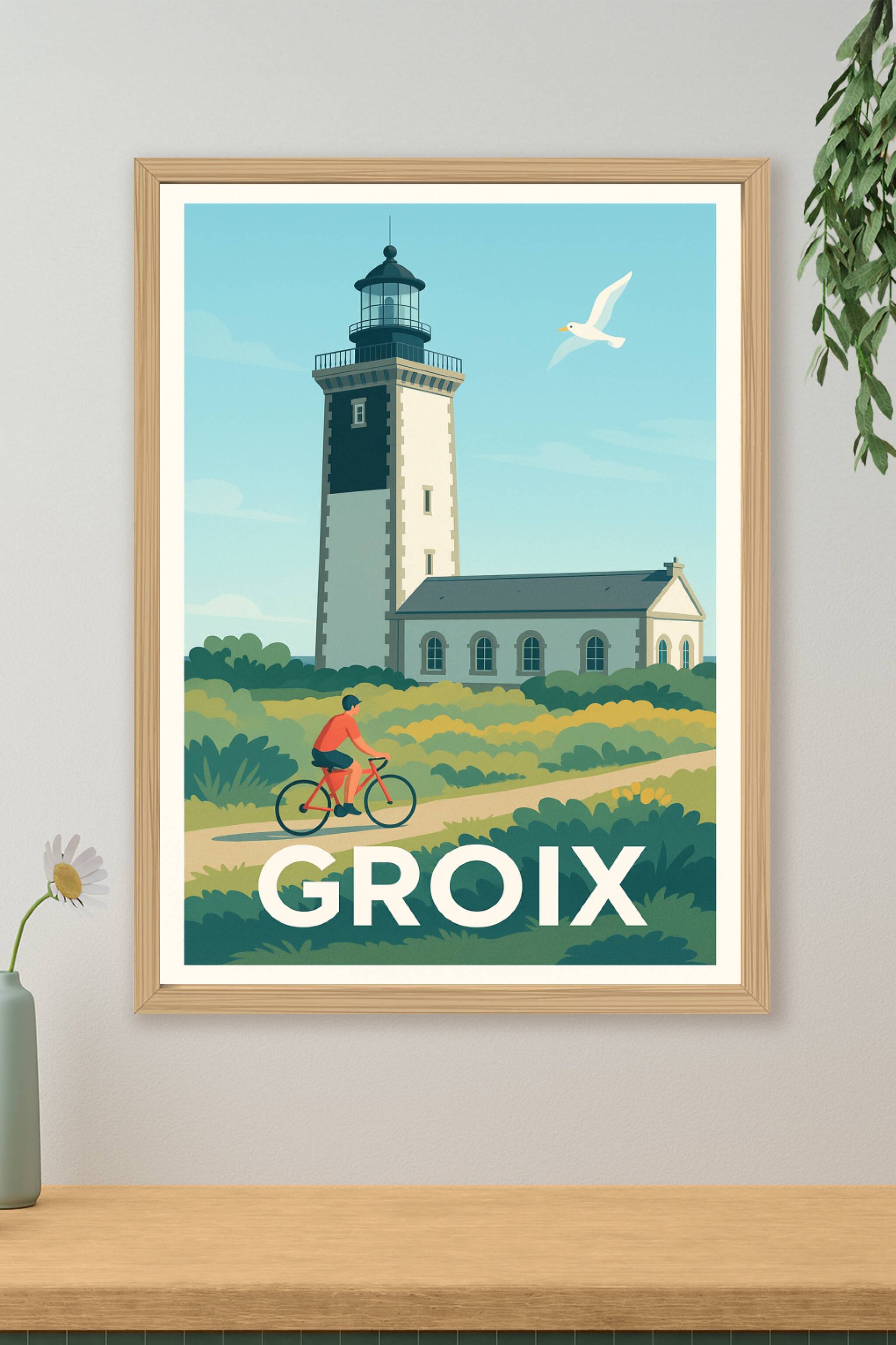 Découvrez la douceur de vivre de l'île de Groix avec cette affiche illustrée mettant en scène son célèbre phare dans un cadre naturel apaisant. Un ...