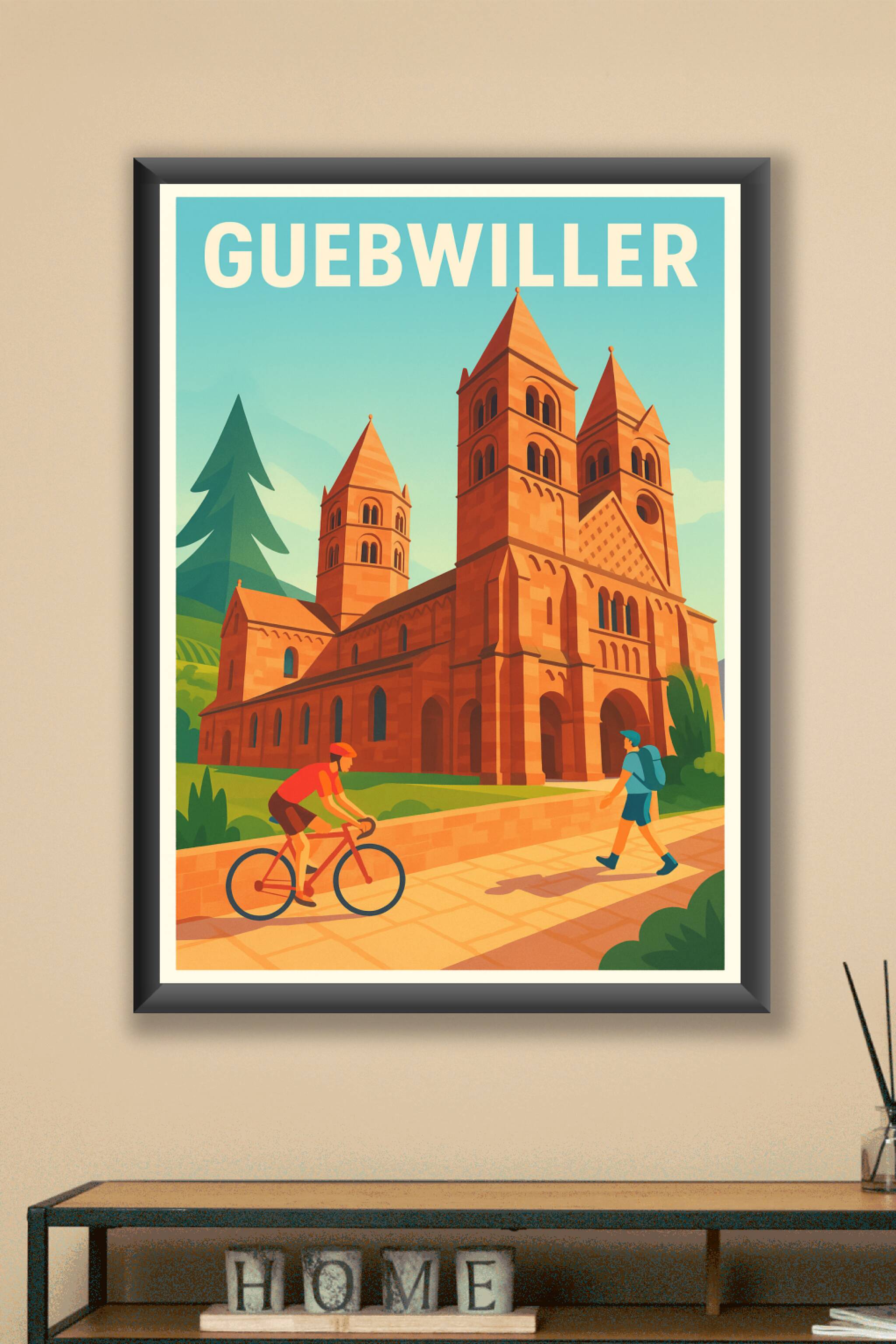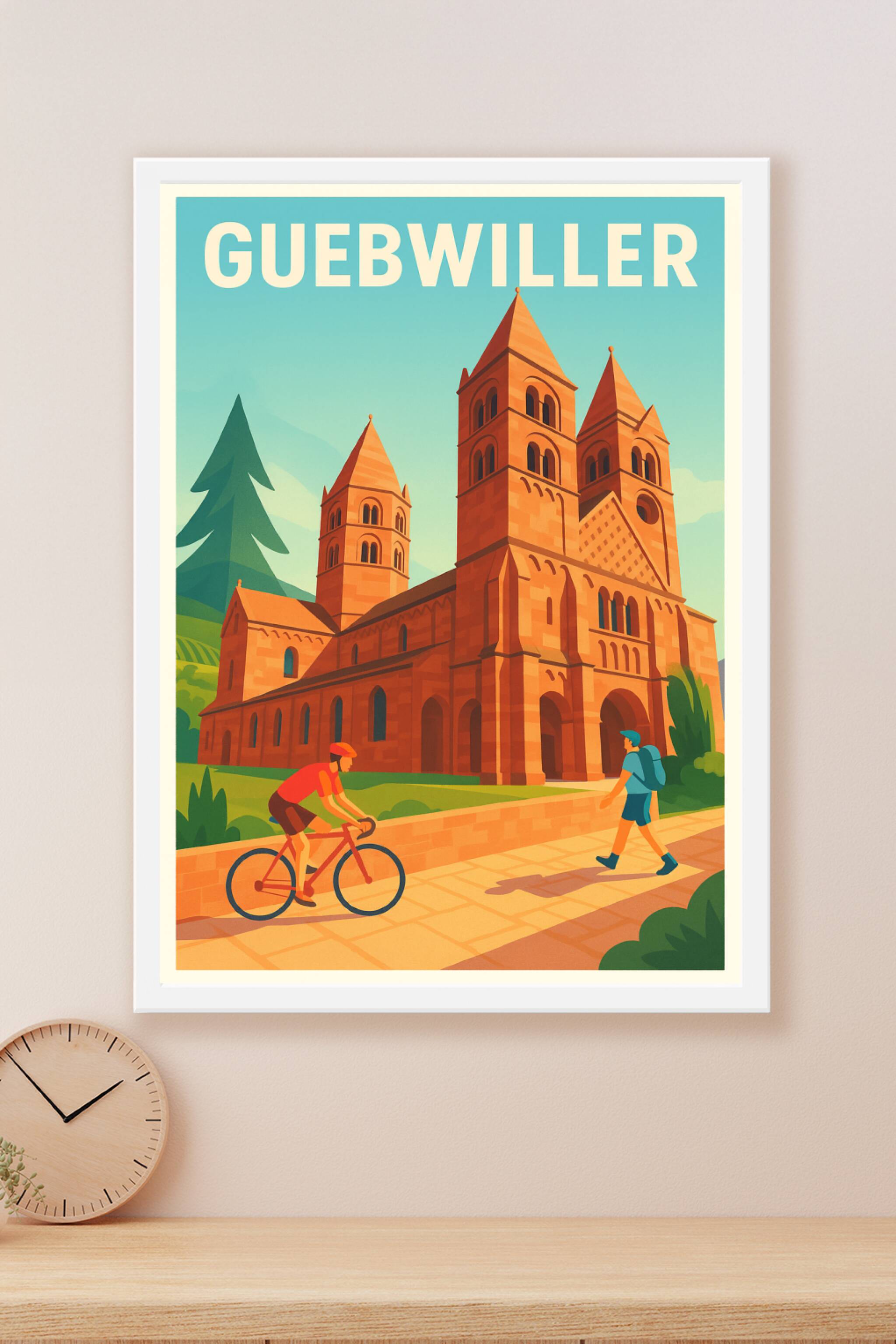 Découvrez cette magnifique affiche représentant l'emblématique architecture de Guebwiller, où se mêlent patrimoine historique et ambiance paisible....