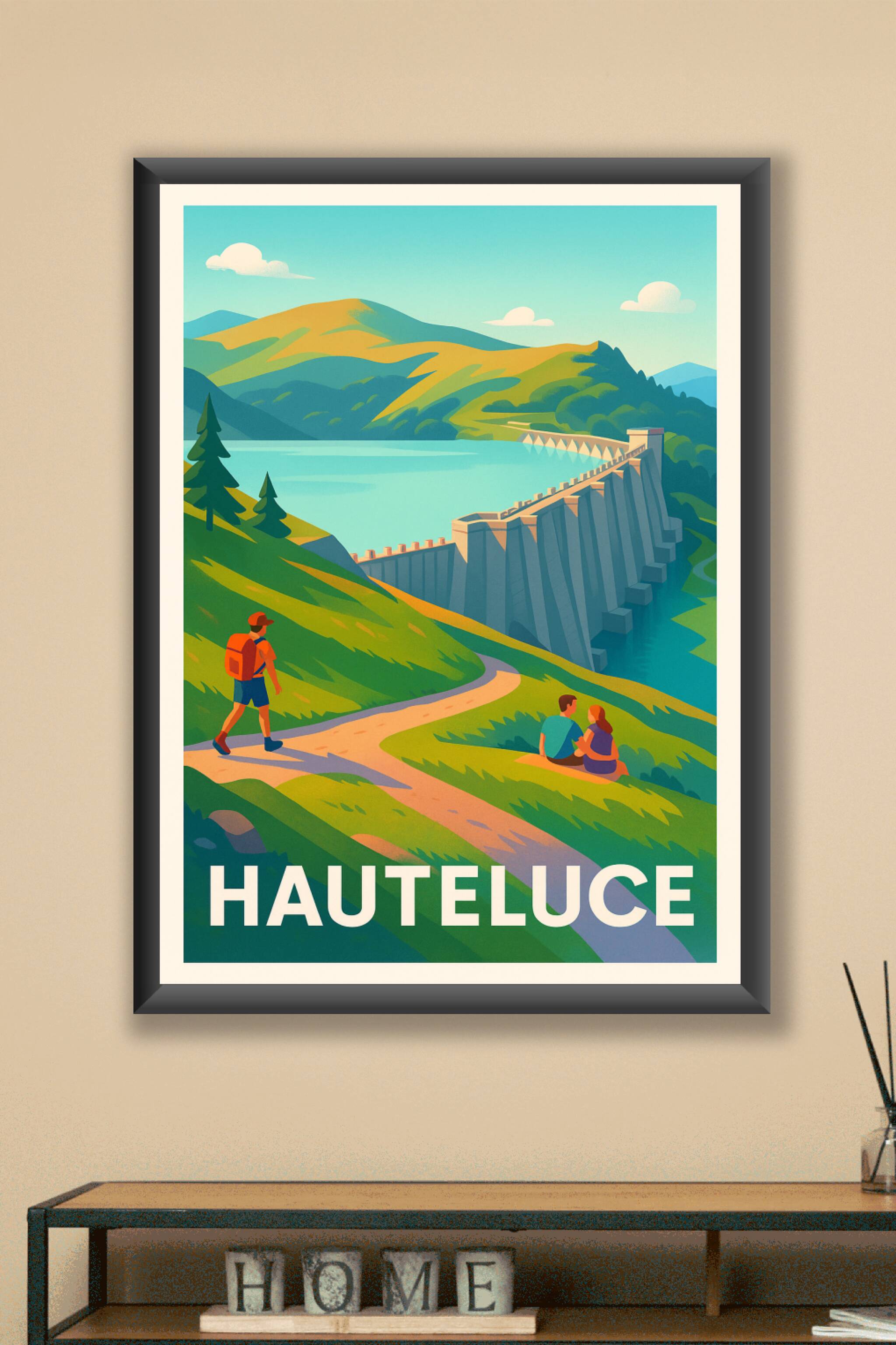 Découvrez la beauté naturelle de Hauteluce à travers ce poster illustré, qui capture l'harmonie entre paysages verdoyants, randonneurs et le majestueux barrage au bord du lac. Cette affiche est une invitation à la détente et à l'exploration des montagnes savoyardes. Imprimée en tirage "Fine Art" sur un papier de qualité 305g coton, elle garantit des couleurs vives et une durabilité exceptionnelle. Disponible en formats A1 à A4, avec ou sans cadre, cette affiche s'adapte parfaitement à votre décoration intérieure. Profitez d'une impression premium 100% made in France pour embellir votre espace ou offrir un cadeau idéal aux amoureux de la nature et des balades alpines.