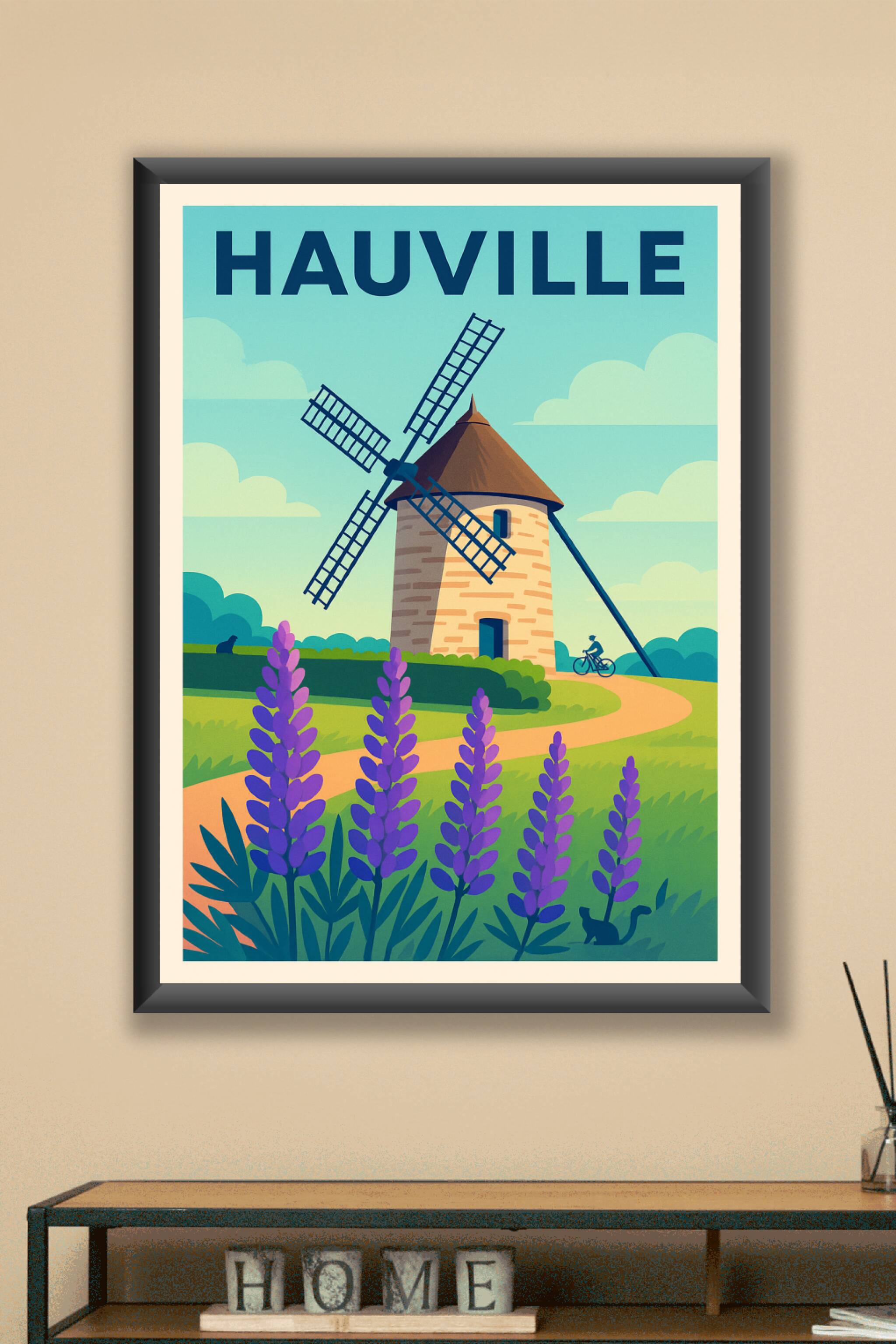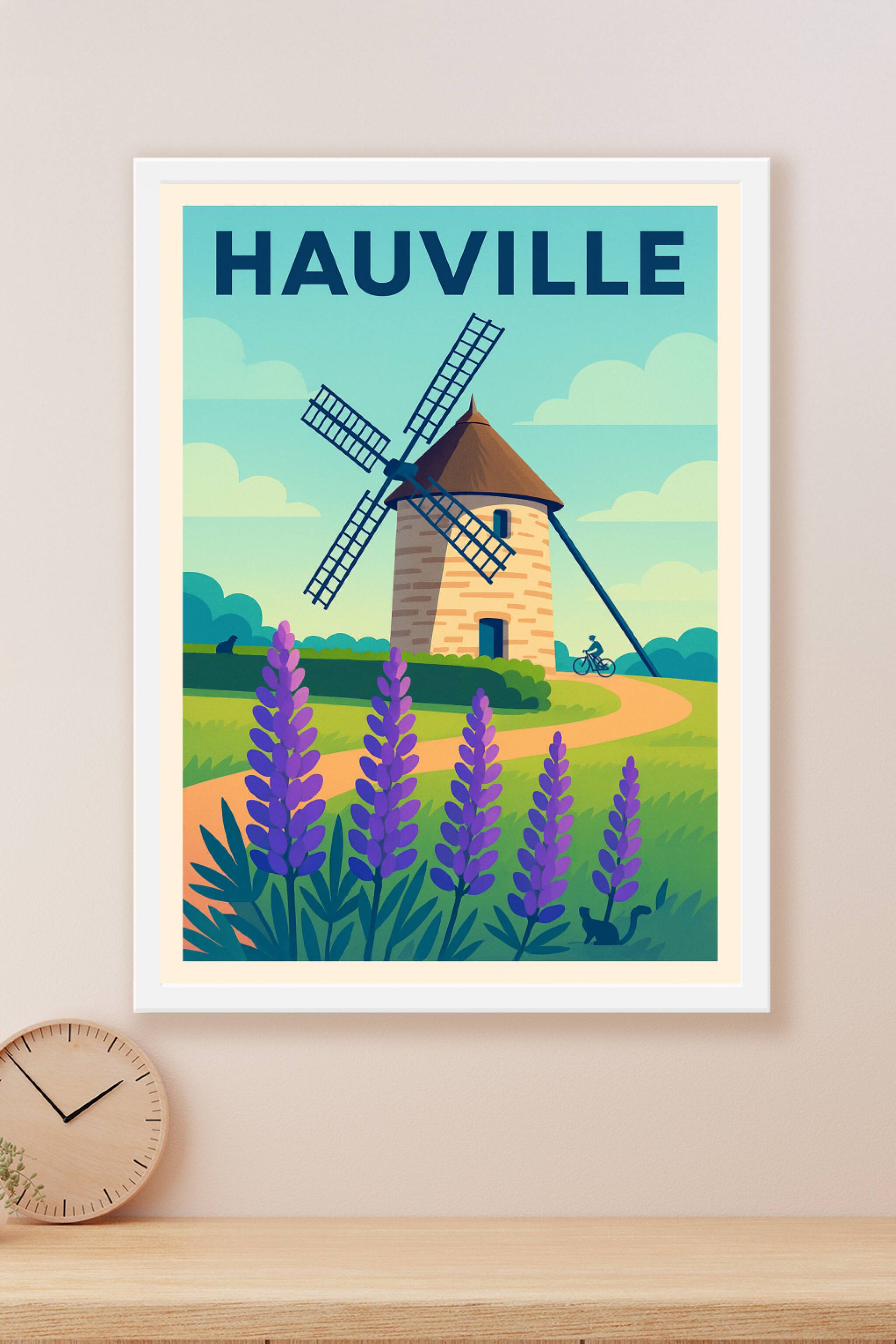 Découvrez la douceur campagnarde d'Hauville avec cette affiche qui célèbre un moulin typique niché au cœur d'un paysage verdoyant, sublimé par une ...