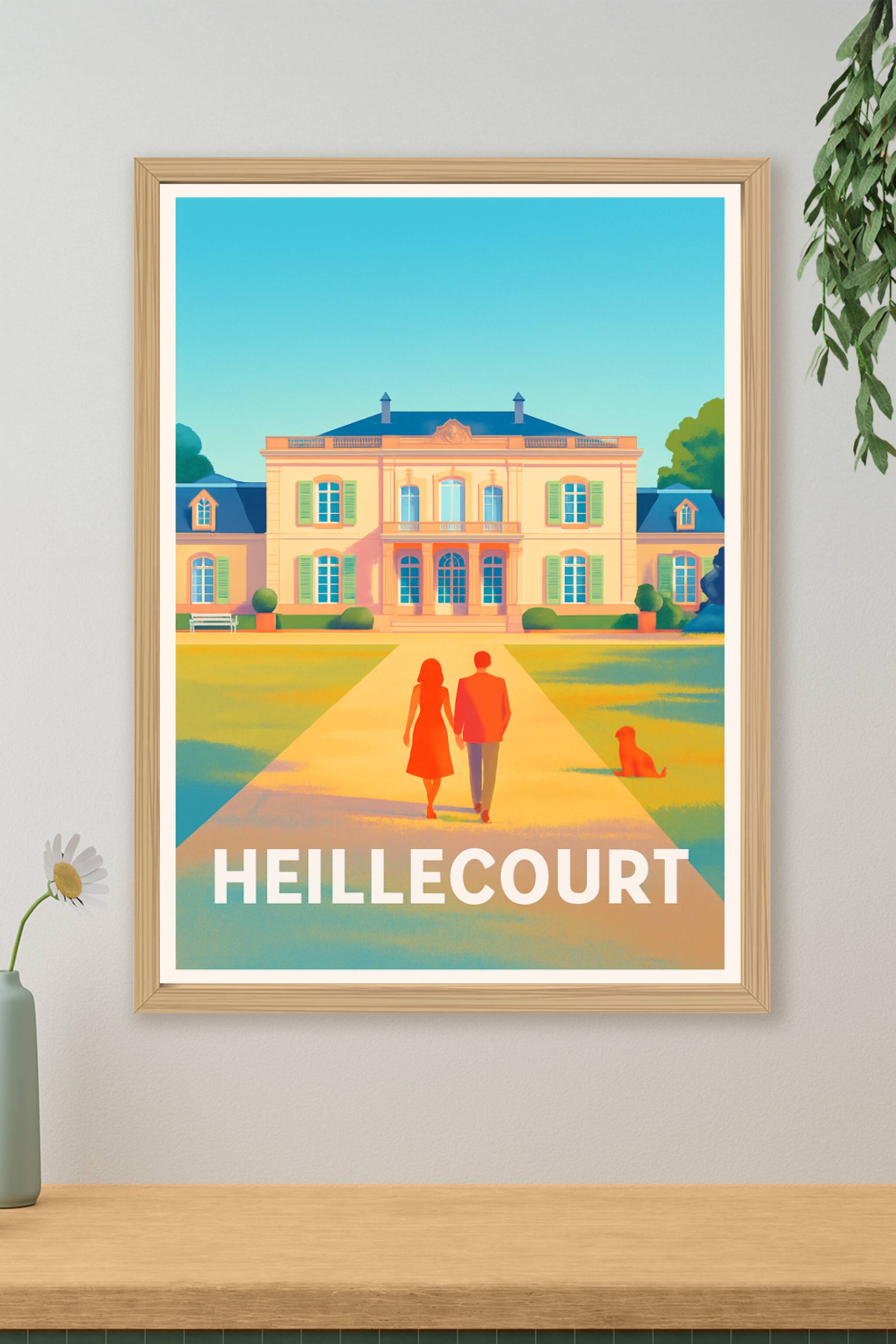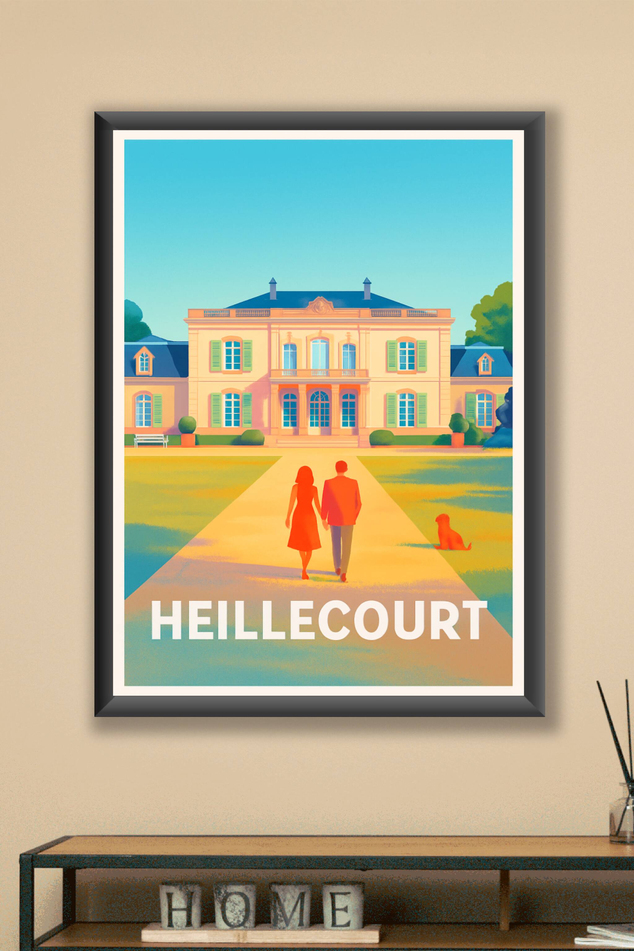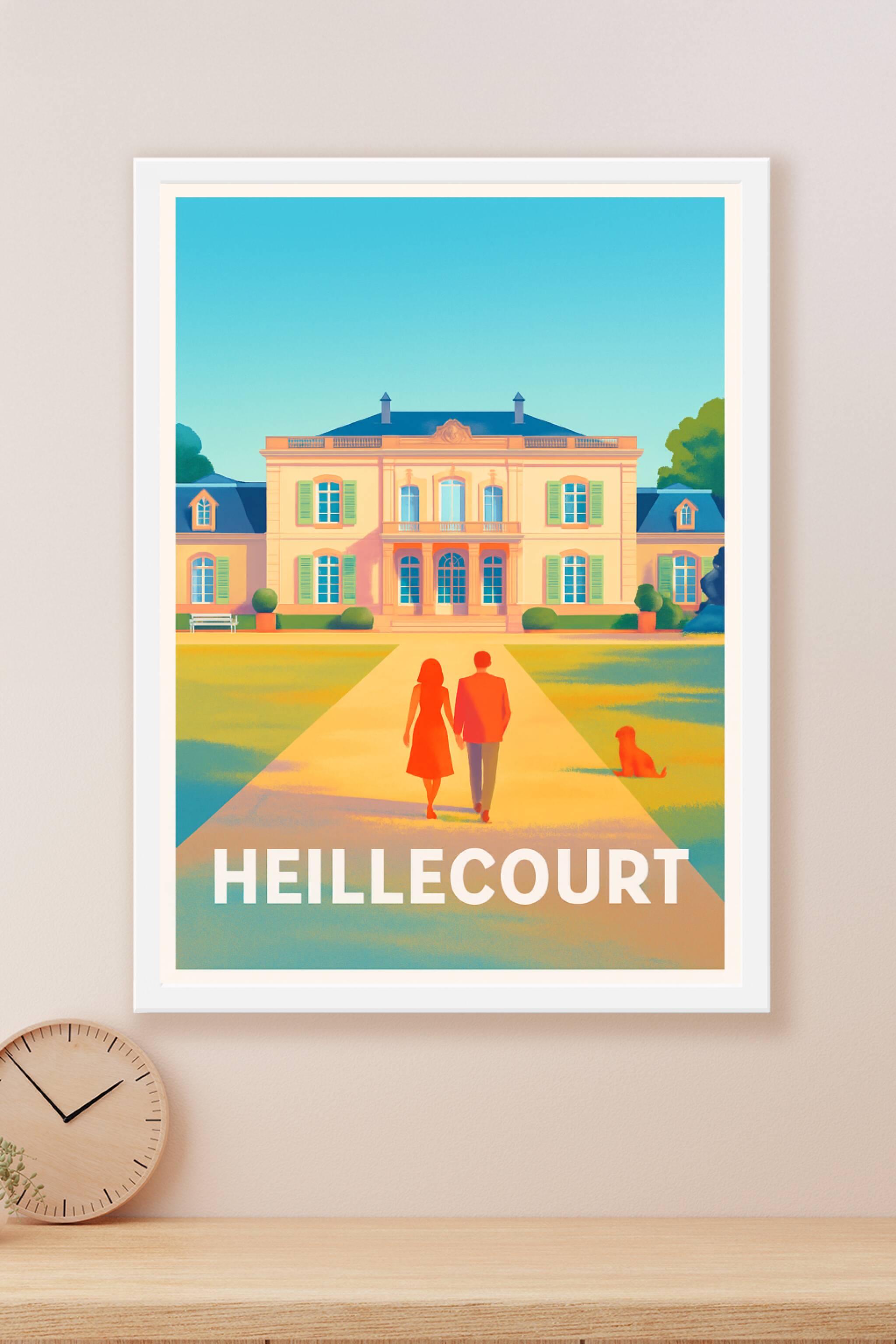 Découvrez l'élégance et la sérénité de Heillecourt à travers cette affiche raffinée représentant un manoir classique baigné dans une lumière douce ...