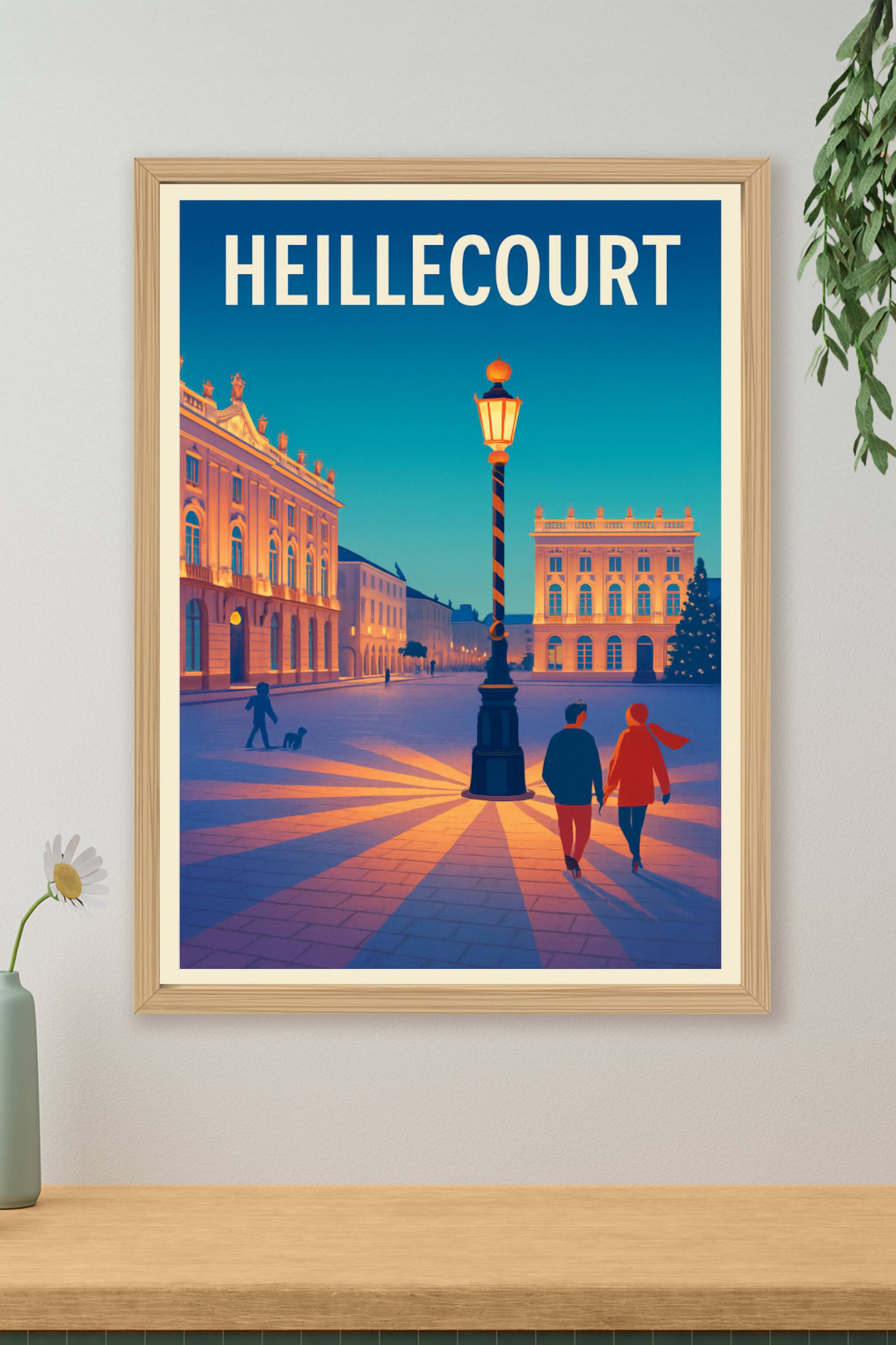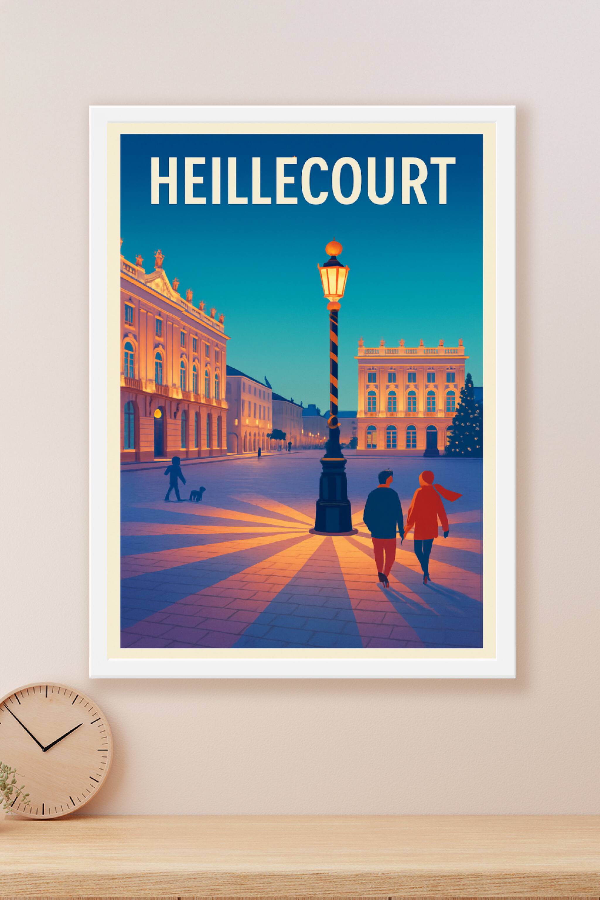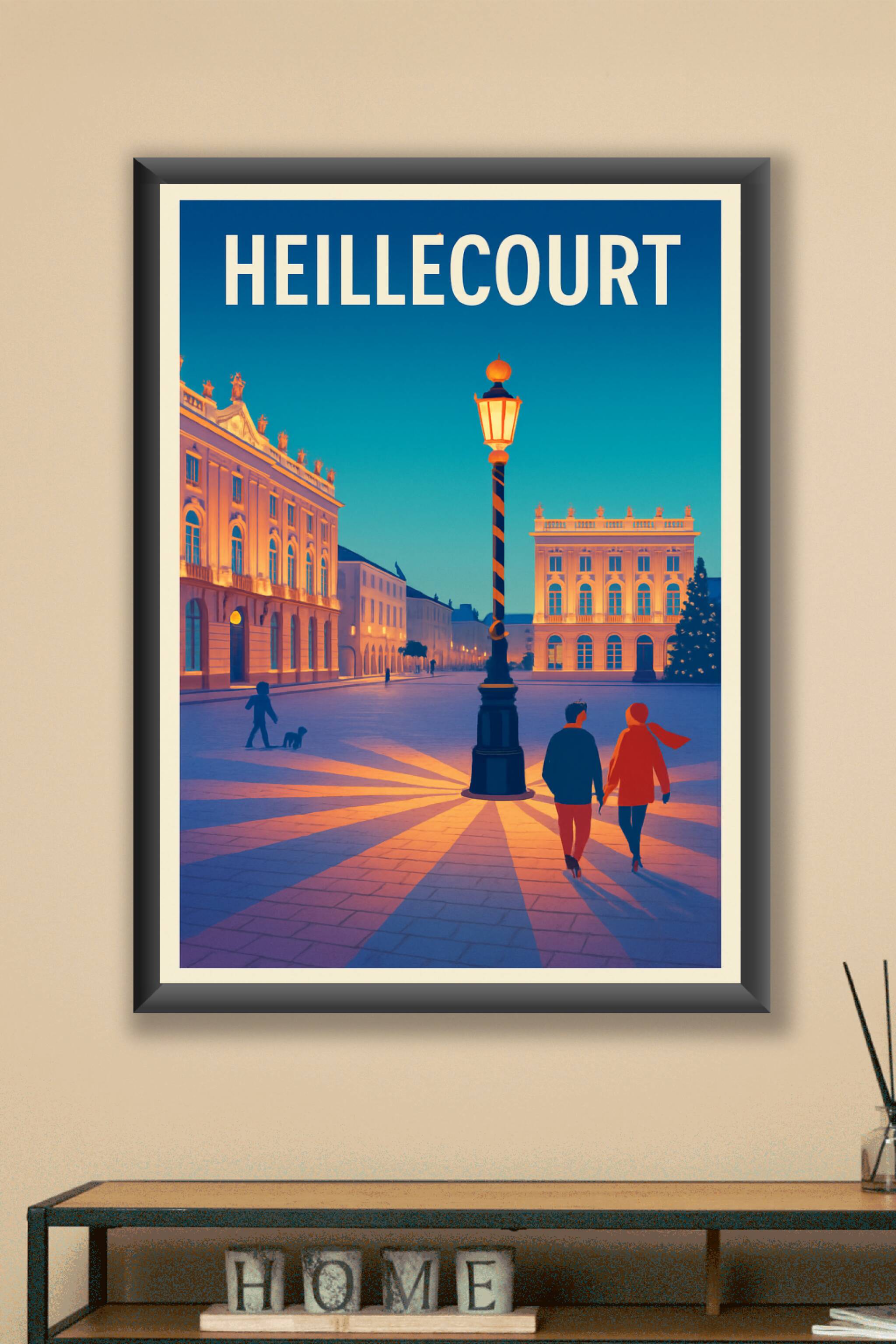 Découvrez l'élégance nocturne d'Heillecourt avec cette affiche au style artistique raffiné. Le poster met en scène une promenade romantique sous le...