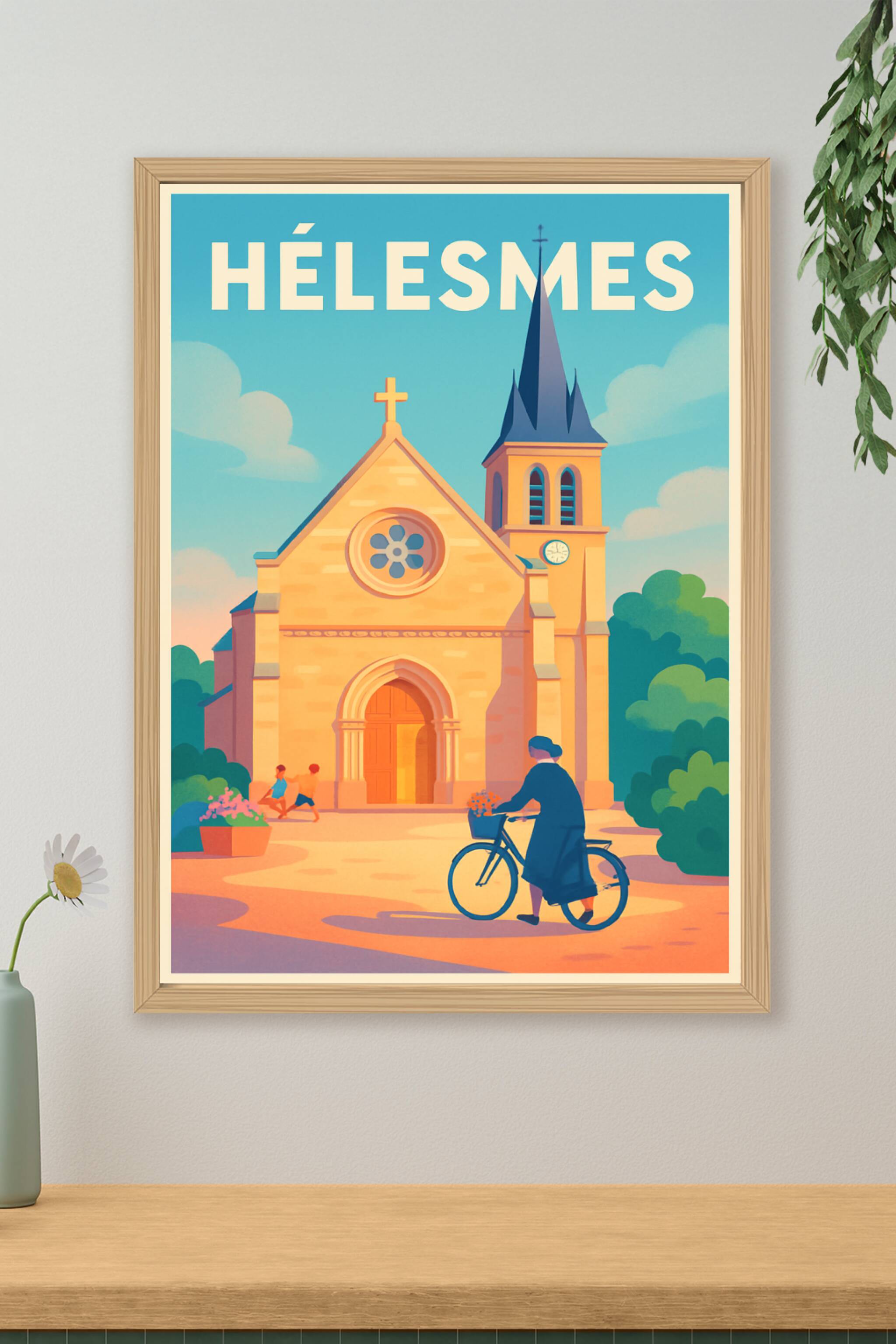 Découvrez l'affiche illustrée de l'église d'Hélésmes, qui capture la douceur de vivre et la sérénité de cette charmante commune. Le poster met en s...