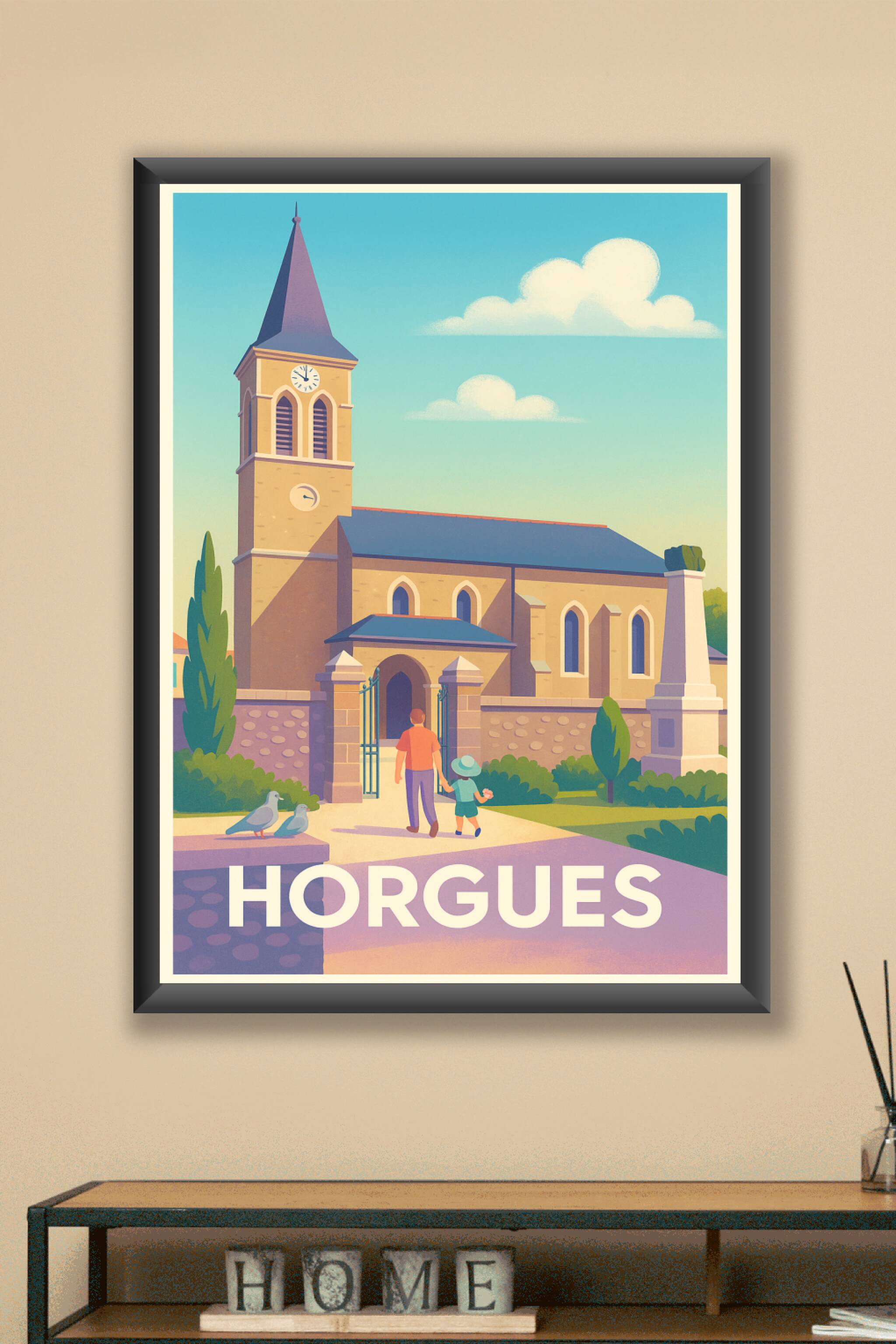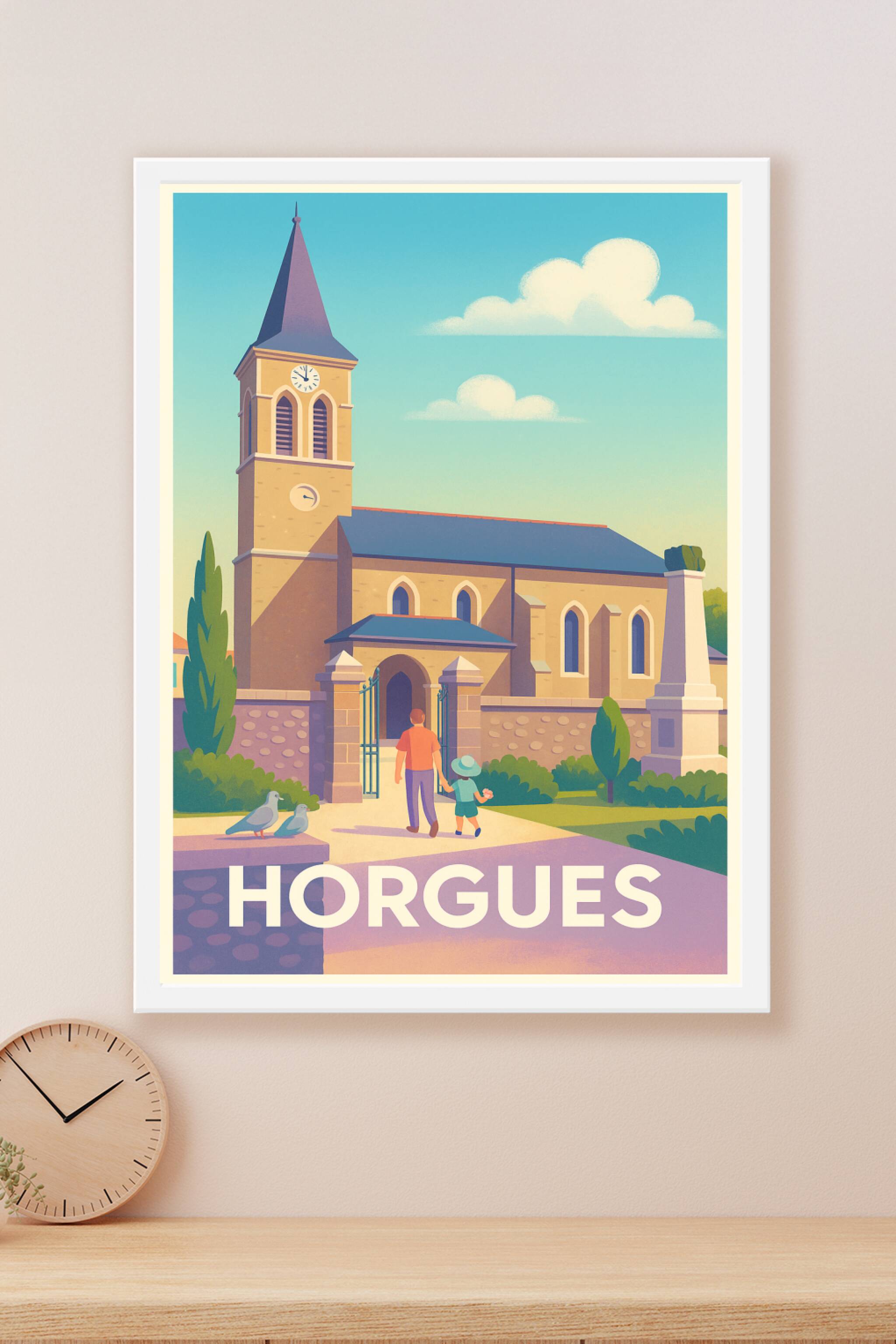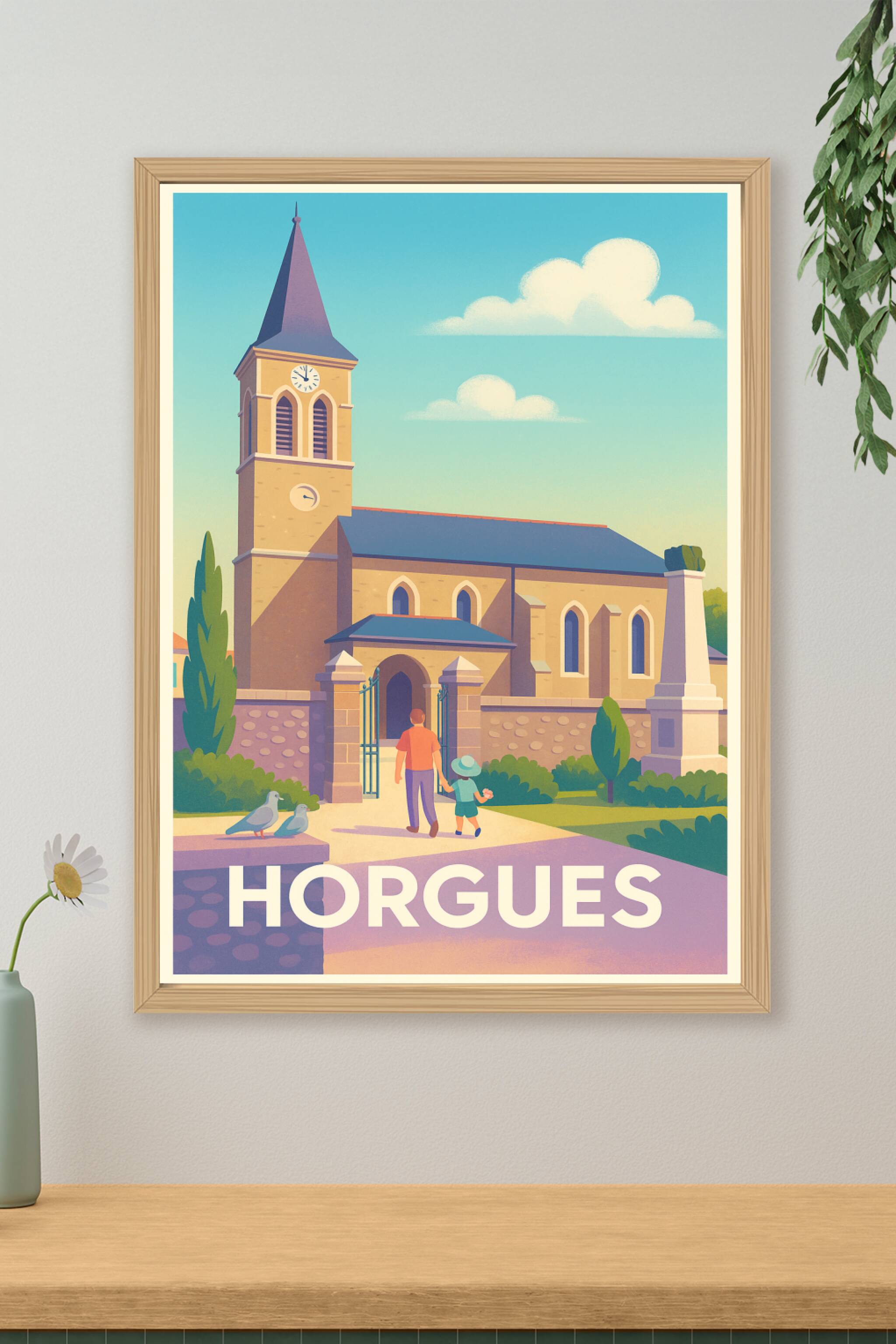 Découvrez la douceur de vivre de Horgues à travers cette affiche illustrée qui met en lumière l'église emblématique et son environnement paisible. ...