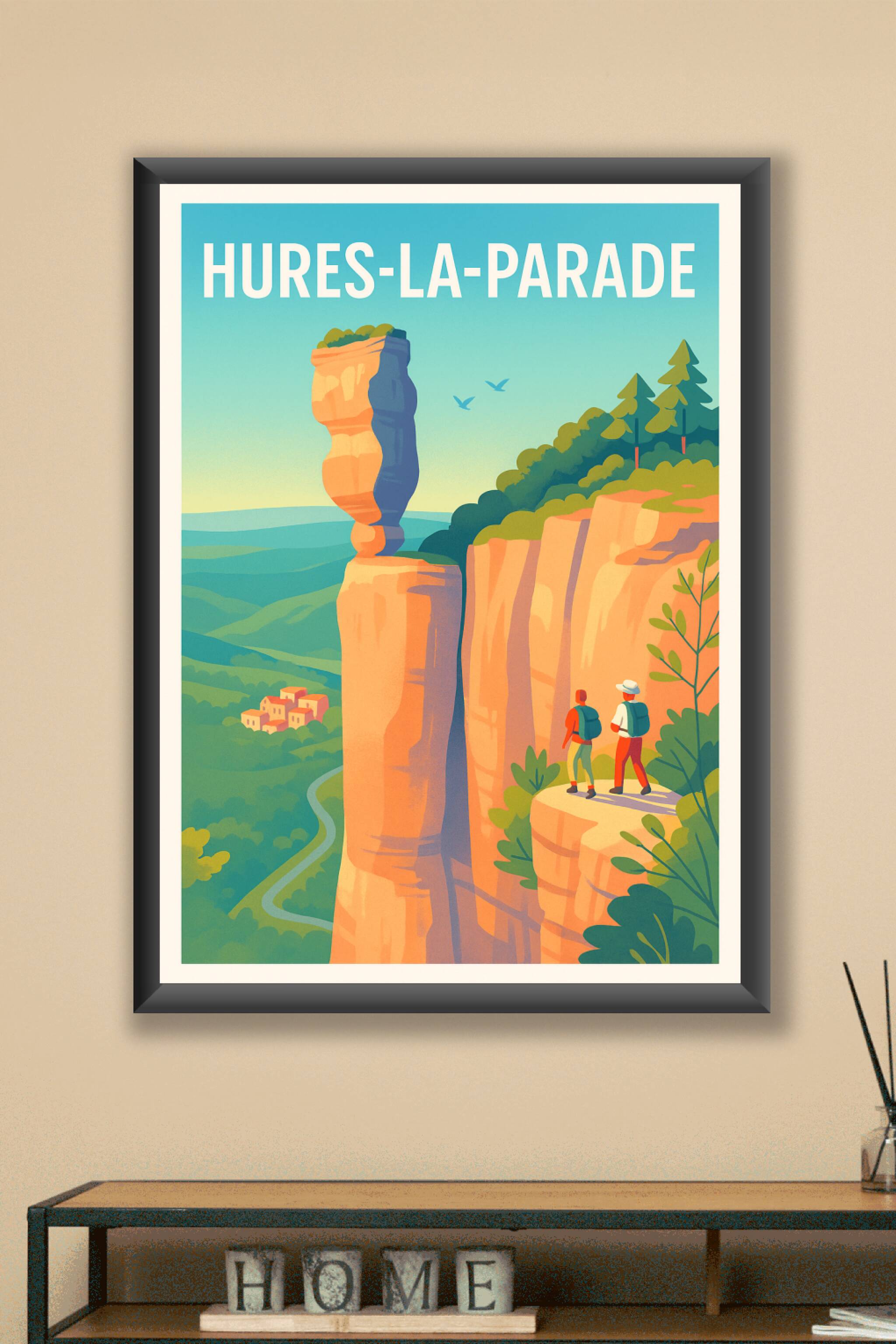Découvrez la majesté naturelle des falaises d'Hures-la-Parade à travers cette affiche stylisée et vibrante. Ce poster met en scène ce paysage uniqu...