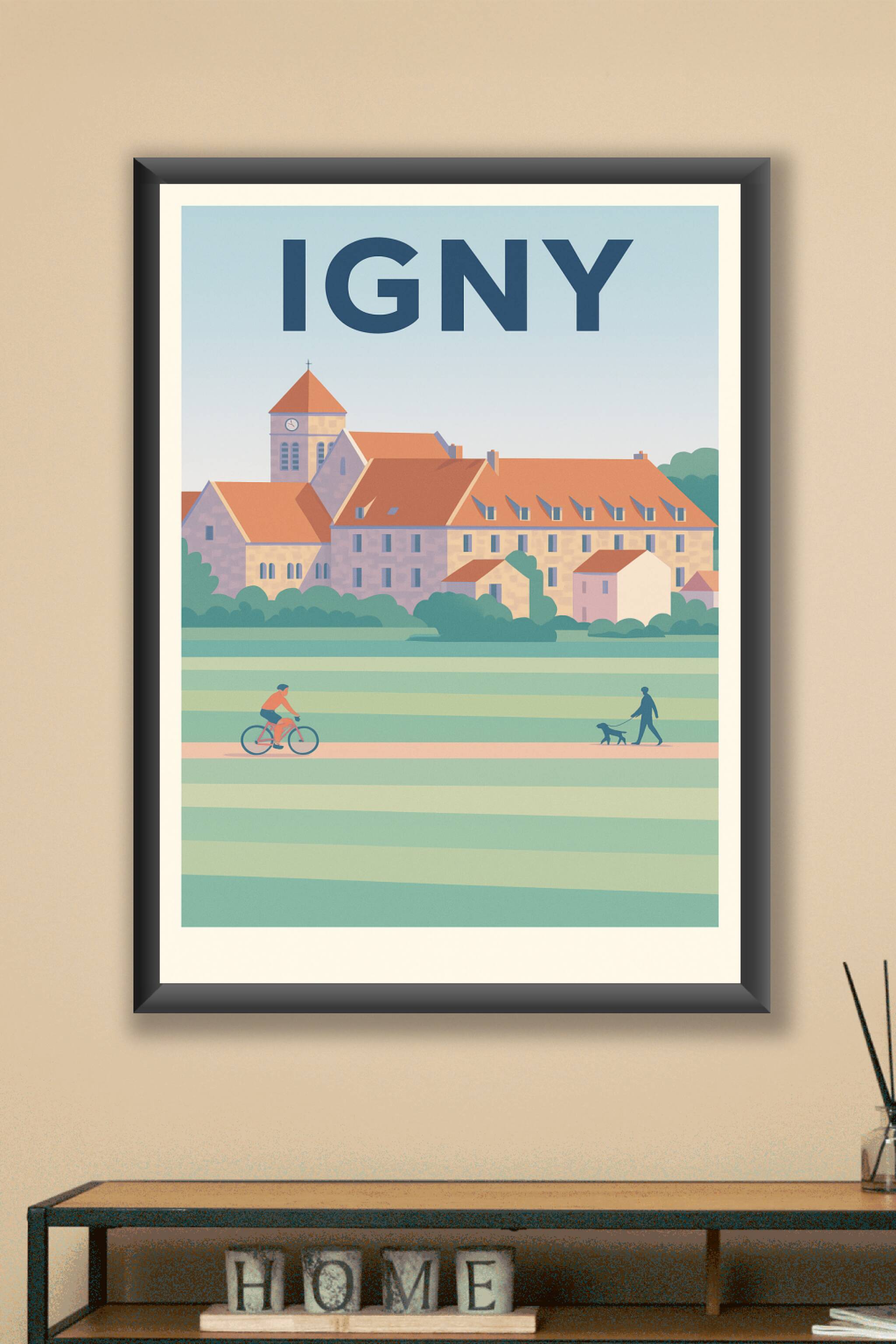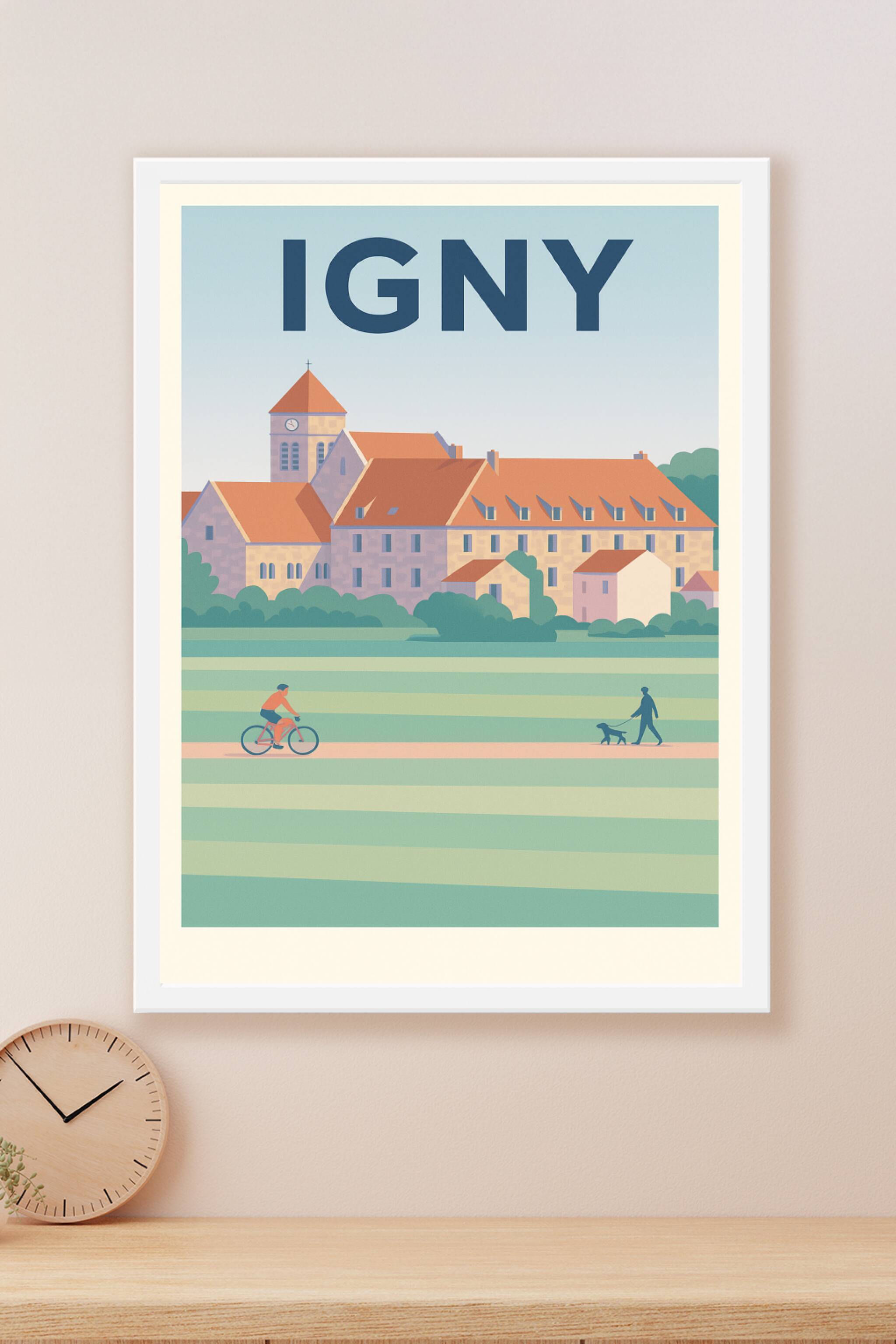 Découvrez le calme et la douceur de vivre à Igny avec cette affiche au style épuré et couleurs douces. Ce poster met en avant les belles architectu...