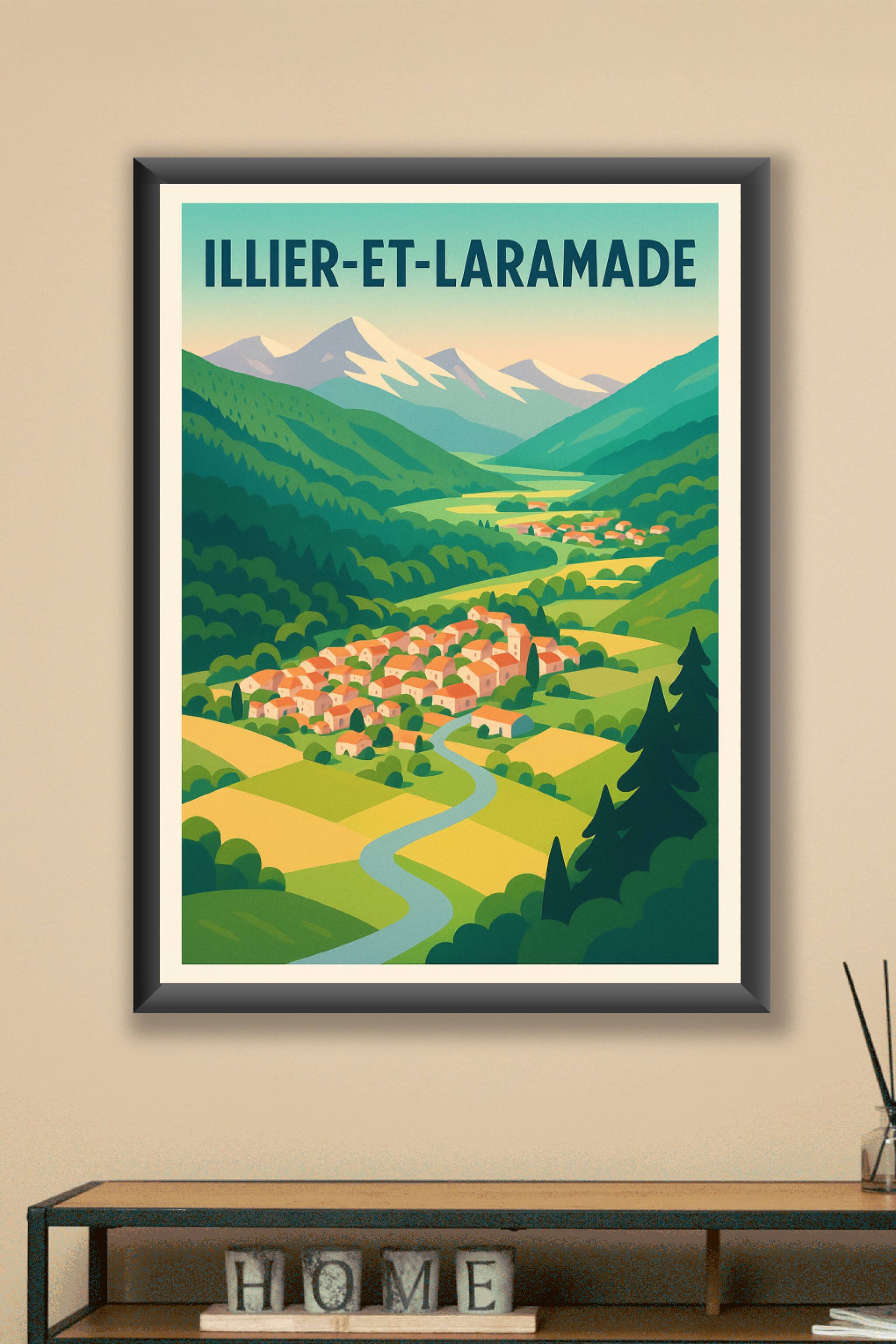 Découvrez la sérénité de la campagne française avec cette affiche illustrée représentant Illier-et-Laramade, un charmant village niché au cœur de vallées luxuriantes et montagnes apaisantes. Ce poster, aux couleurs douces et au style rétro, capture l'essence d'un lieu où nature et patrimoine s'entrelacent harmonieusement.Cette affiche est imprimée en tirage "Fine Art" sur papier 305g coton, garantissant une qualité d'impression exceptionnelle, avec des couleurs vives et une texture délicate. Disponible en plusieurs formats, de A1 à A4, avec ou sans cadre, ce poster s'adapte parfaitement à votre intérieur, pour une décoration élégante et authentique.Profitez d'une fabrication artisanale 100% française pour apporter une touche d'air pur et de beauté naturelle à votre maison ou offrir un cadeau raffiné aux amoureux des paysages de campagne.