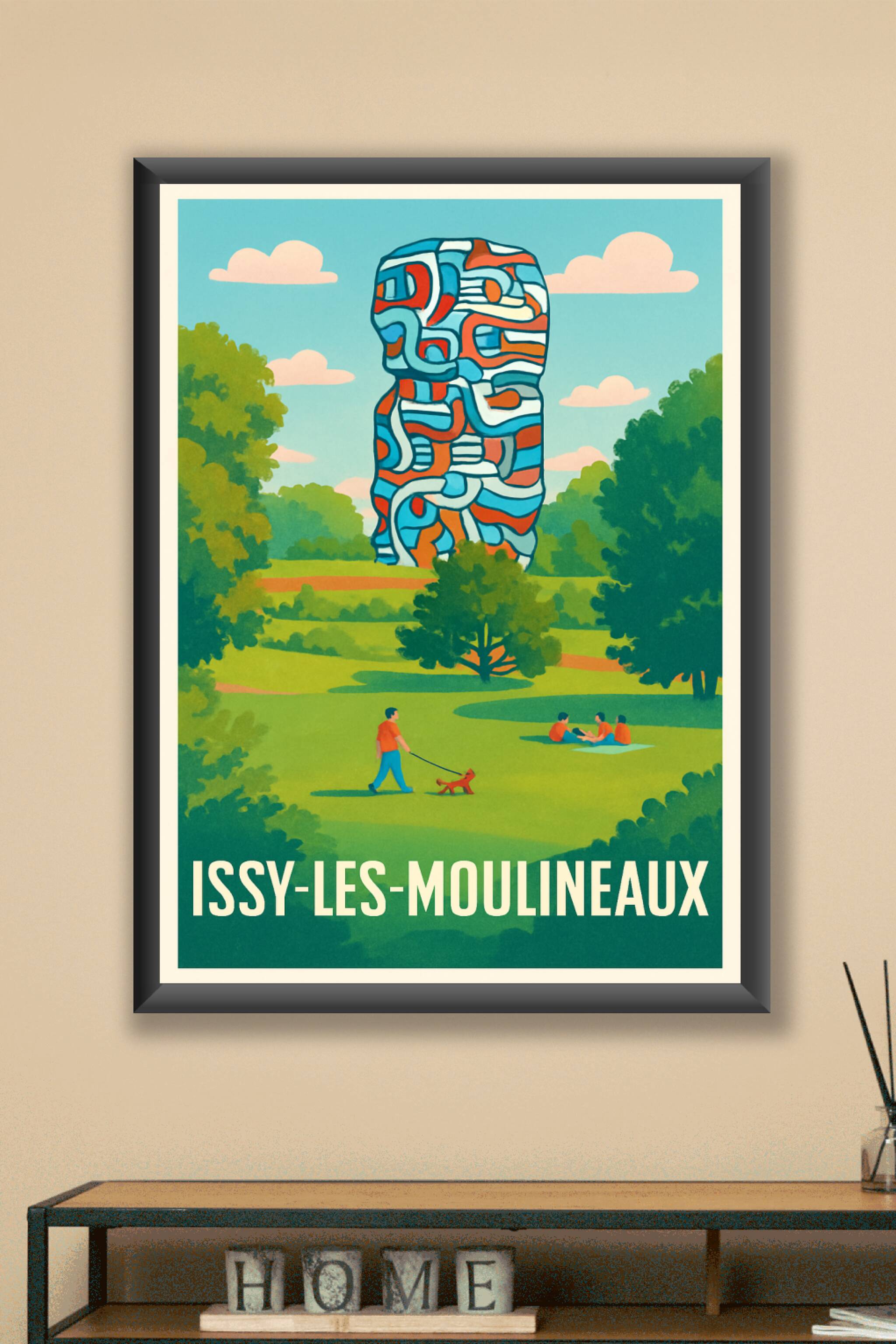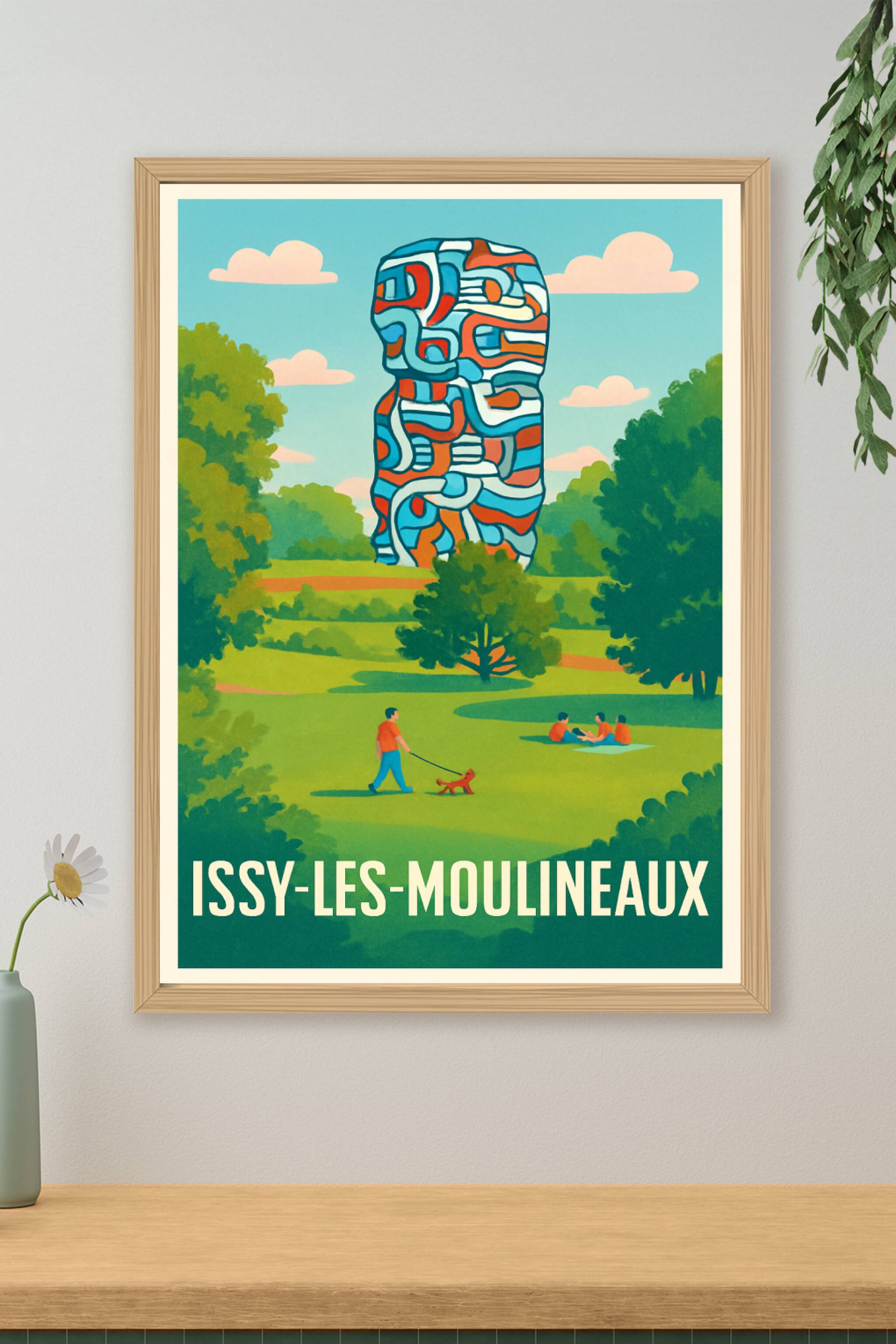 Découvrez la sérénité d'Issy-les-Moulineaux à travers cette affiche qui capture un parc verdoyant où se dresse une sculpture moderne aux lignes colorées et dynamiques. Ce poster illustré invite à la détente et à la contemplation, mêlant nature et créativité contemporaine.Cette affiche est imprimée en tirage "Fine Art" sur un papier haut de gamme 305g coton, garantissant des couleurs vibrantes et une grande durabilité. Disponible en formats A1 à A4, avec ou sans cadre, elle s'adapte parfaitement à toutes les ambiances déco, que ce soit dans un salon, un bureau ou une chambre.Apportez une touche artistique et rafraîchissante à votre intérieur avec ce poster d'exception, 100% fabriqué en France, idéal aussi comme cadeau pour les amateurs d'art et de nature urbaine.