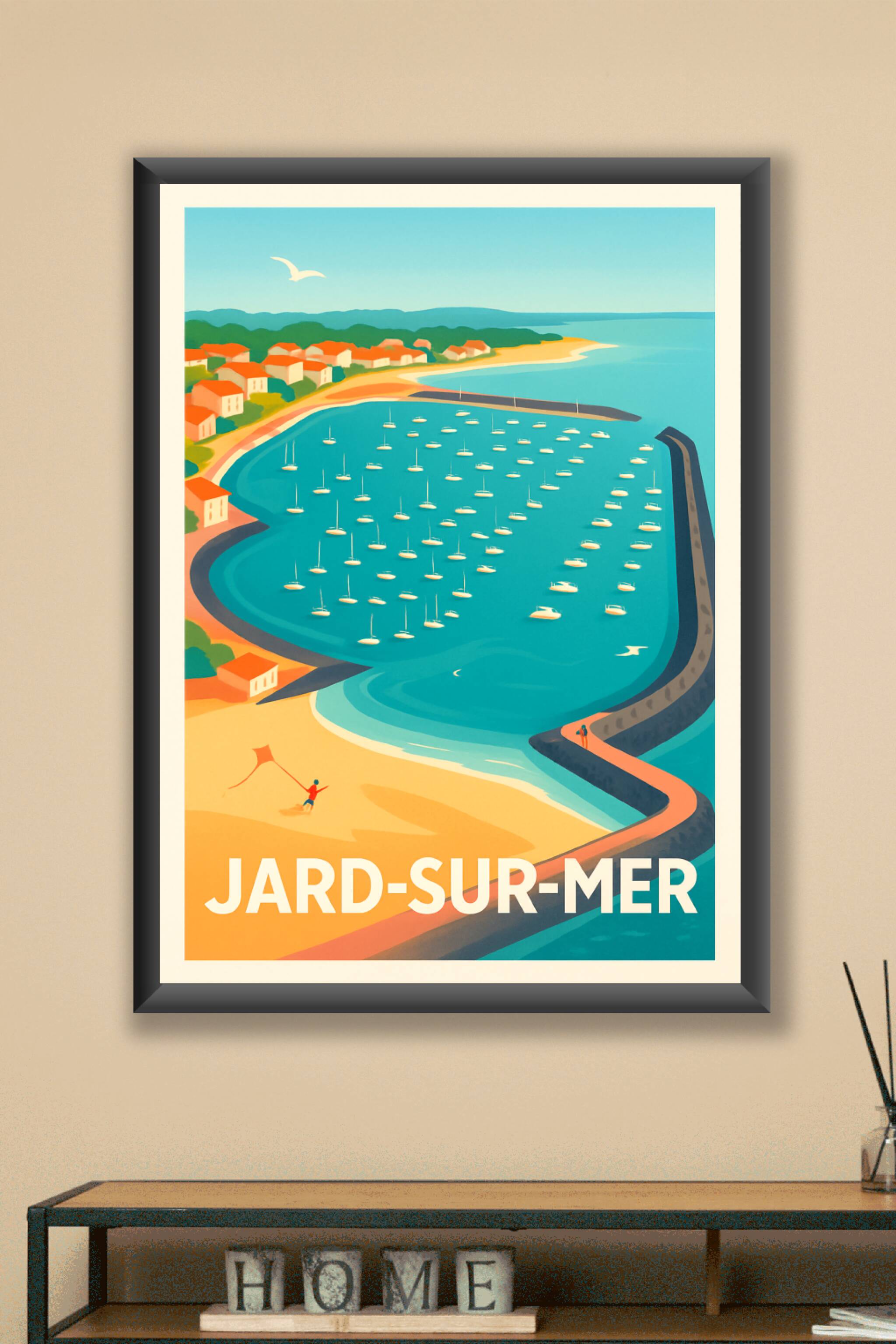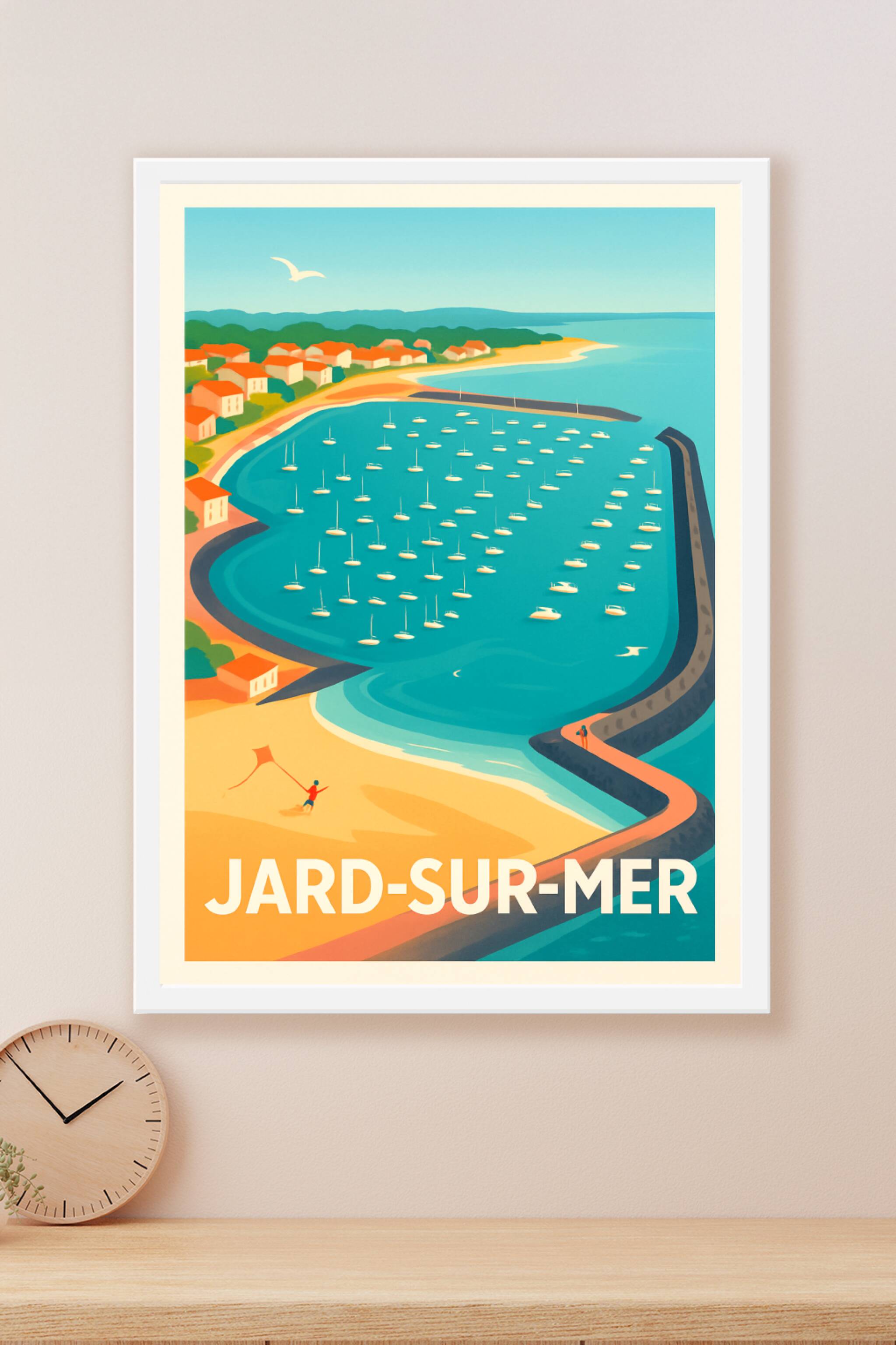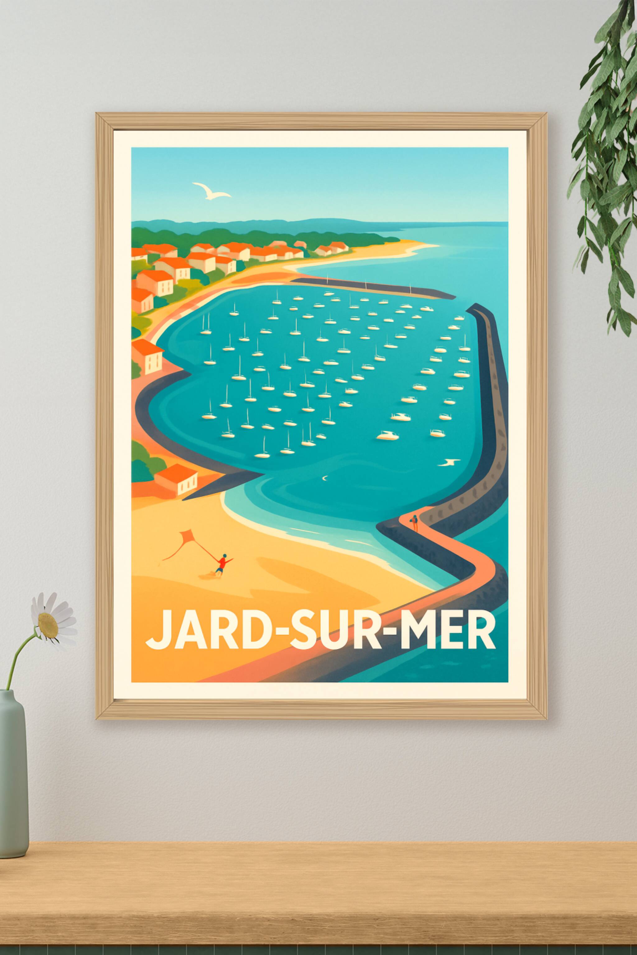 Découvrez la douceur de vivre et le charme maritime de Jard-sur-Mer avec cette affiche au style vintage, illustrant son port paisible et ses plages...