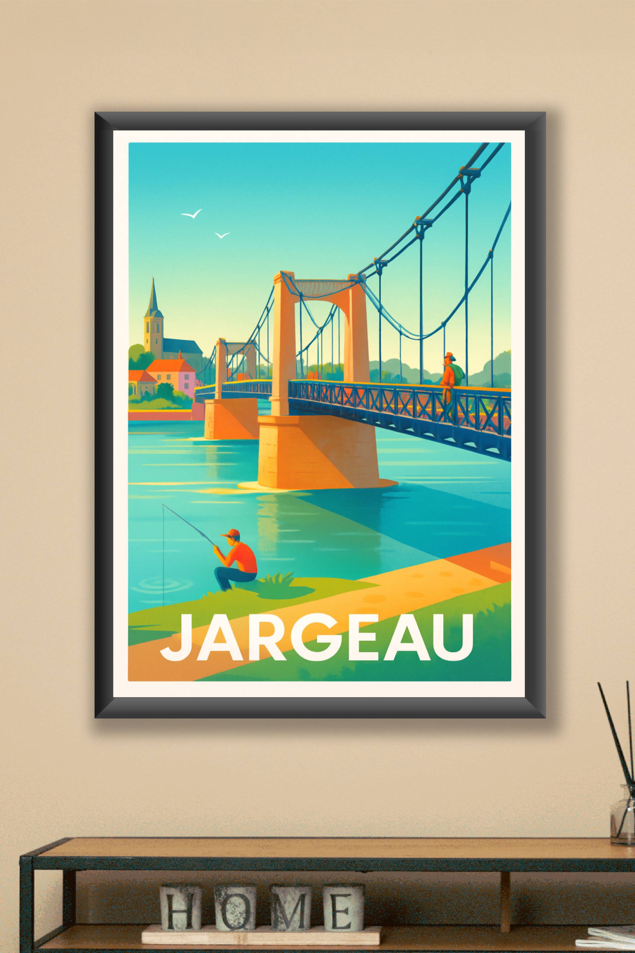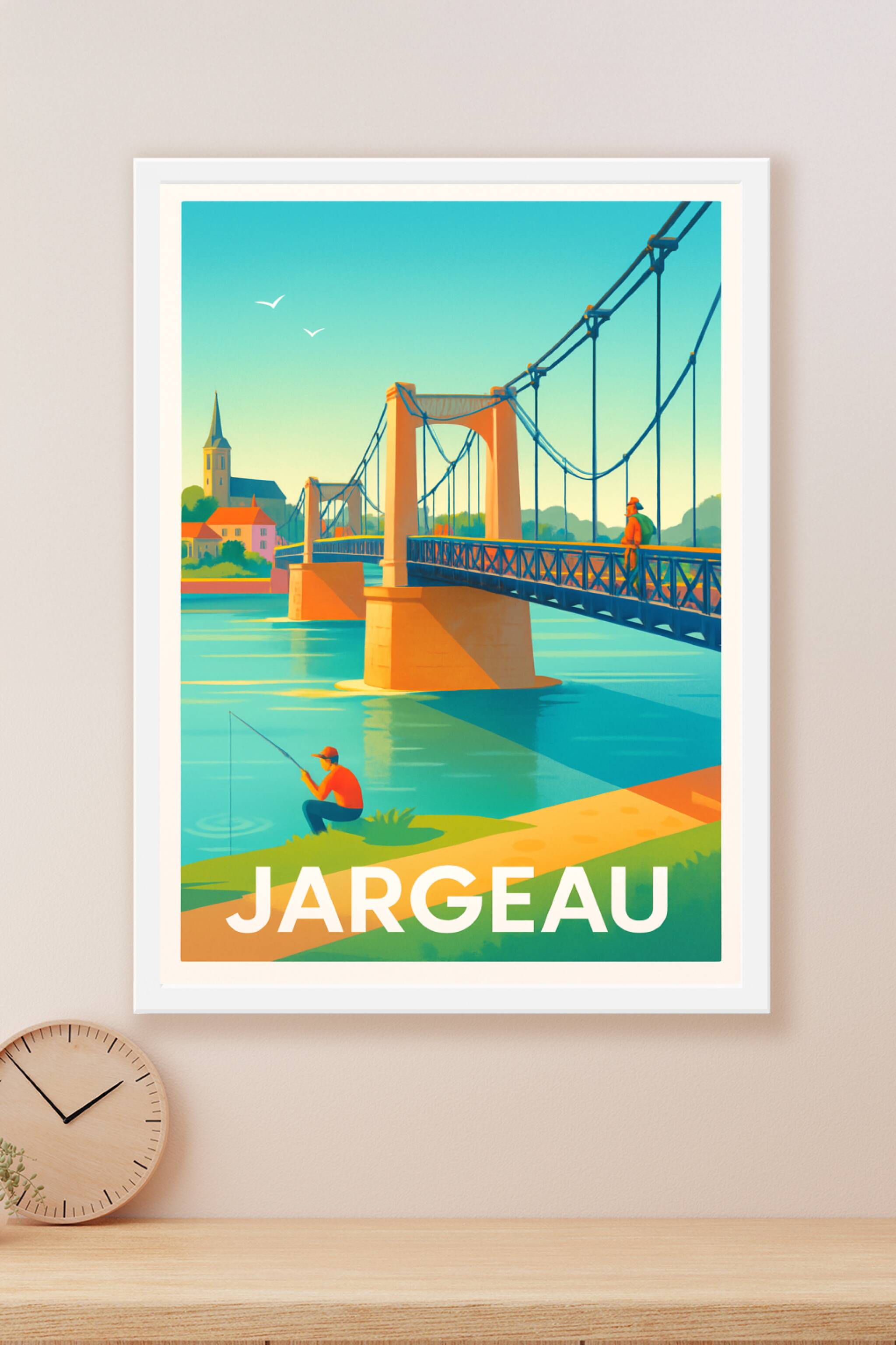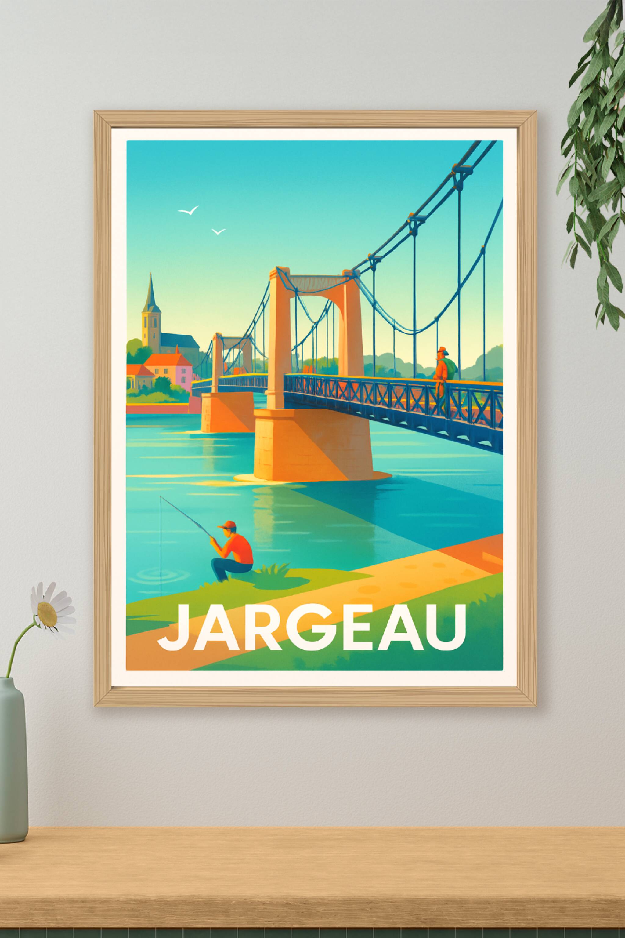 Découvrez l'atmosphère paisible de Jargeau à travers cette affiche élégante représentant son célèbre pont suspendu et les bords de Loire. Cette ill...